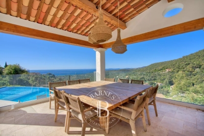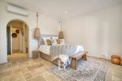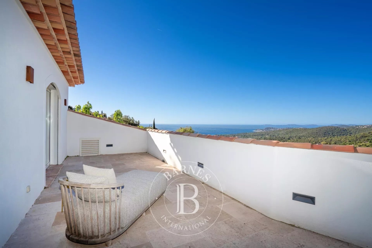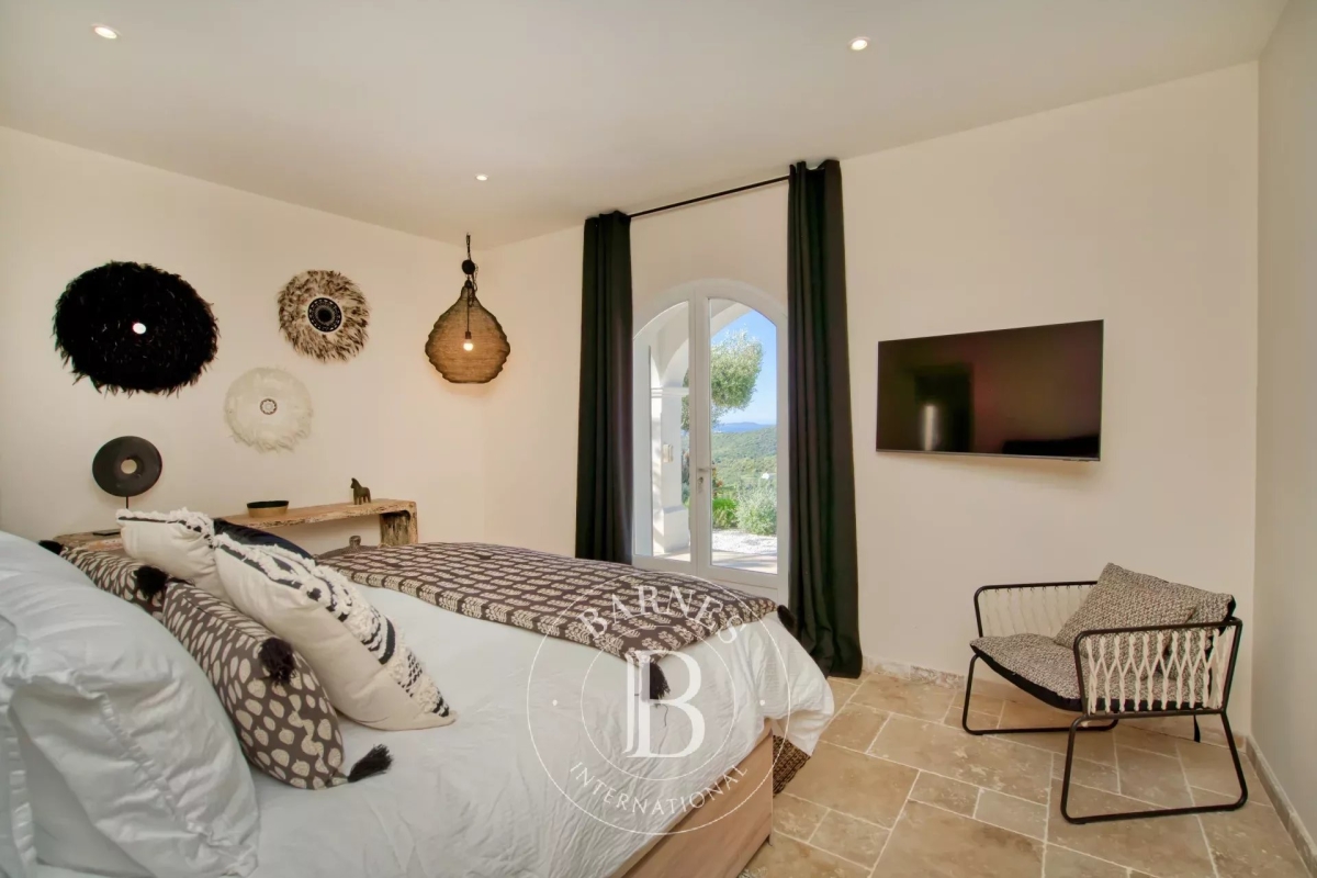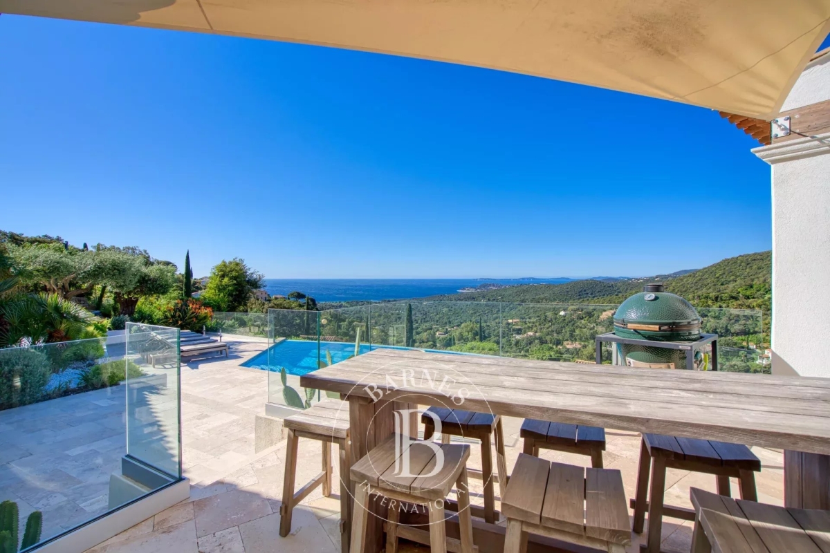 Située sur la commune de la Croix-Valmer, cette magnifique villa d'environ 300m² offre une proximité avec le centre-ville ainsi qu'une vue panoramique sur la mer. Elle se compose d'un beau salon lumineux et ouvert sur la piscine, d'une salle à manger, d'une cuisine entièrement équipée, de deux chambres en suite, d'une chambre de Maître ainsi que d'une chambre double avec sa salle de douche séparée. En extérieur, une chambre en suite indépendante, de belles terrasses aménagées, une cuisine d'été équipée ainsi qu'une piscine et un terrain de pétanque. Équipements : Climatisation, WIFI, système d'alarme et de vidéo-surveillance, places de parking. Services inclus : Ménage, linge de maison, linge de piscine et service de conciergerie BARNES personnalisé. Numéro de loueur meublé : « Les informations sur les risques auxquels ce bien est exposé sont disponibles sur le site Géorisques : www.georisques.gouv.fr » DPE en cours : Bien situé dans une zone soumise à l'obligation de débroussaillement. Jessy PERROT - Agent commercial - EI - RSAC 833 330 913 Contact: +33652040169.