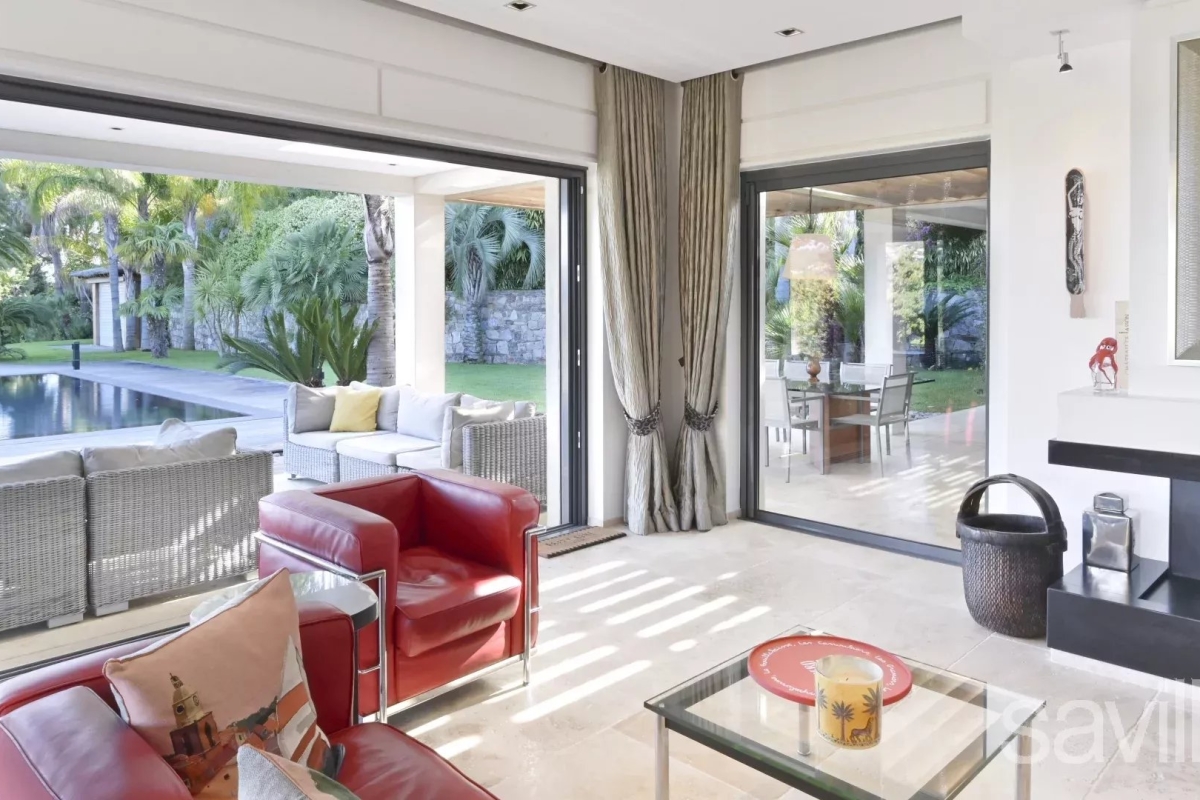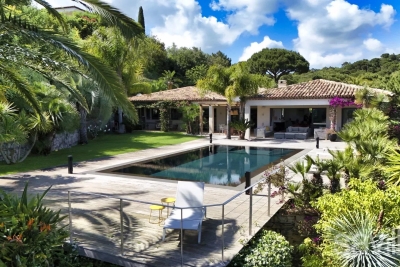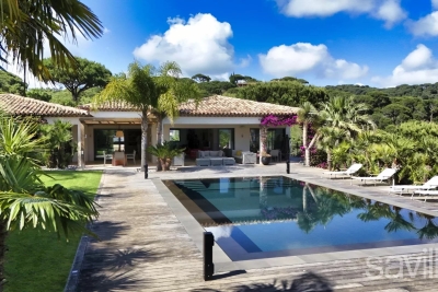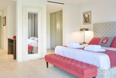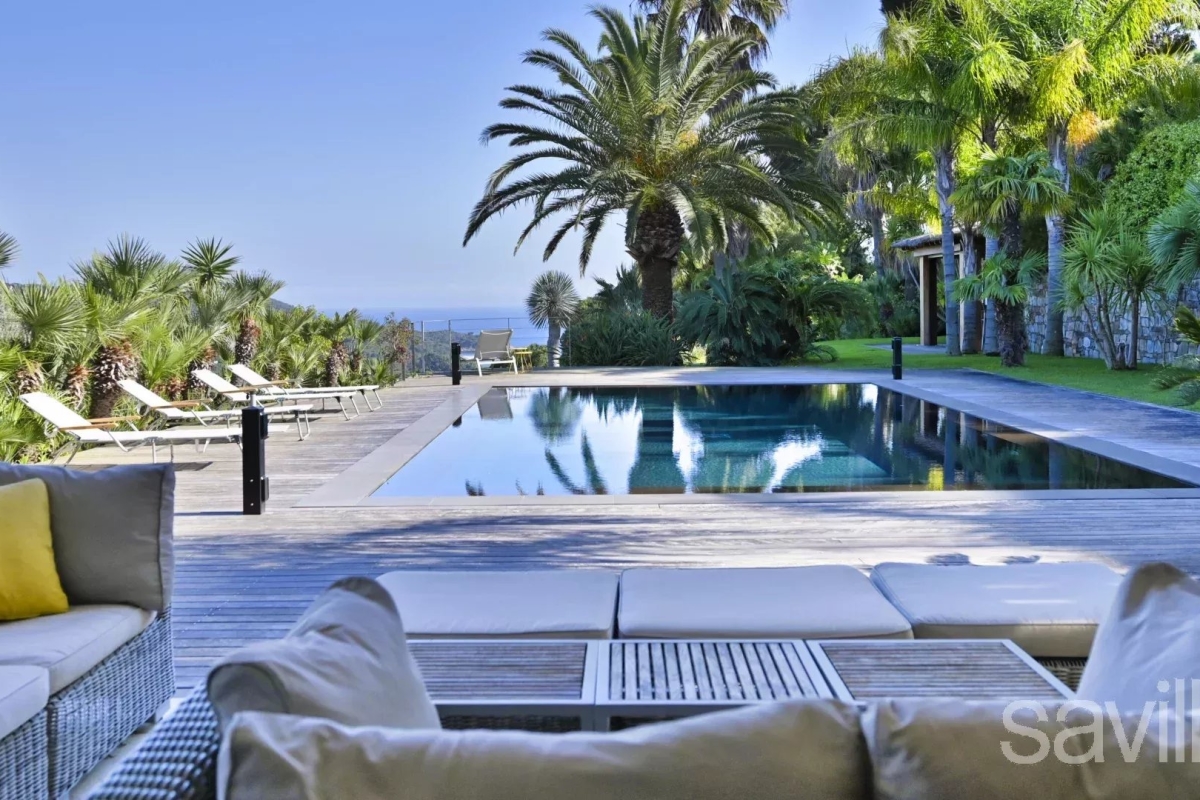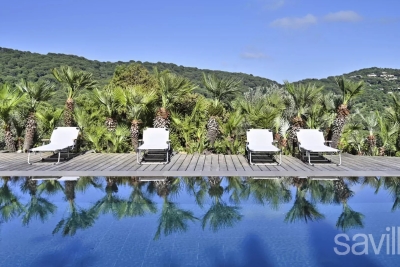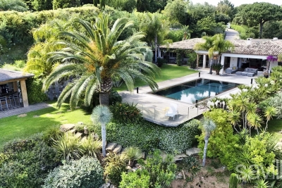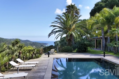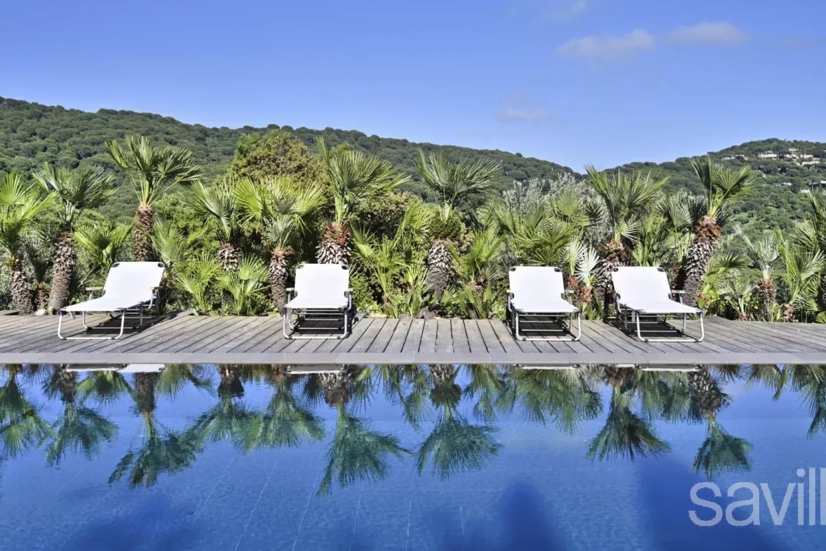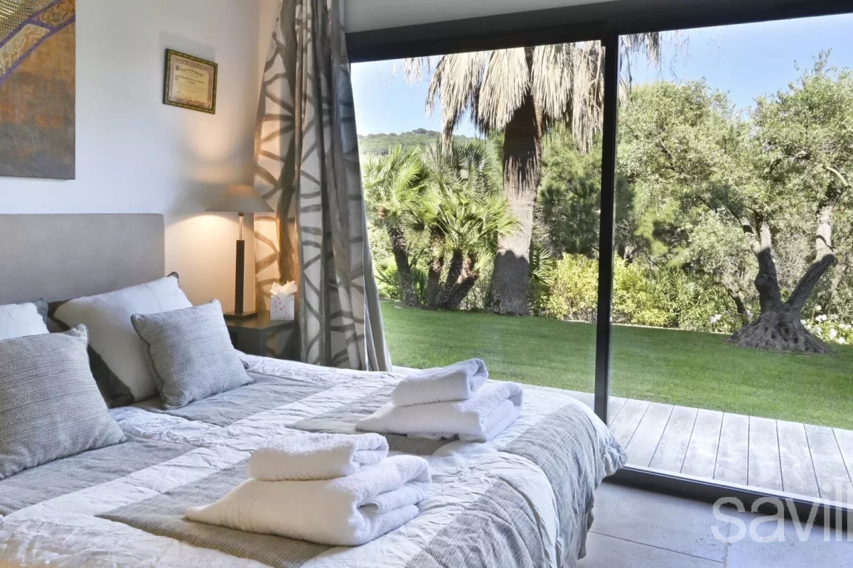 Propriété sur les hauteurs de Gigaro nichée au cœur d'un parc soigneusement paysagé de près de 7000 m2. Profitant d'un emplacement de premier choix et d'une superbe vue mer, cette villa sur deux niveaux pourra accueillir jusqu'à 10 convives. Au rez-de-chaussée: - Une entrée - Un grand séjour lumineux ouvert sur la nature sur de vastes terrasses ombragées - Une salle à manger - Une cuisine équipée - Une chambre principale avec dressing, salle de bains complète et toilettes indépendants - Une chambre en suite avec salle de douches et toilettes Au rez-de-jardin: - Trois chambres en suite avec chacune salle de douches et toilettes - Une buanderie - Une cave à vin - Un espace bar/salon de jeux - Un salon tv - Toilettes - Bureau / chambre d'appoint Terrain paysager avec piscine miroir au chlore, pool house, terrain de pétanque et table de ping-pong. Carport pouvant abriter plusieurs véhicules. Profitez d'un calme et d'un cadre exceptionnel autour de la piscine miroir et du pool house équipé d'un bar, d'une douche extérieure et de toilettes. Les prix varient en fonction de la période de location - seuls les tarifs minimums sont renseignés en annonces : nous vous invitons à nous consulter pour toute demande de tarification. Veuillez noter que des frais de location supplémentaires s'appliquent. Honoraires d'agence à la charge du locataire. Barème des honoraires de location disponible en ligne et sur demande. Veuillez noter que le plan n'indique pas l'emplacement précis du bien et que toutes les mesures sont approximatives, les informations sont fournies à titre indicatif uniquement. Contact: +33602735306.