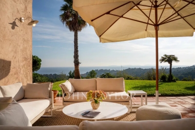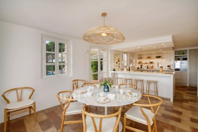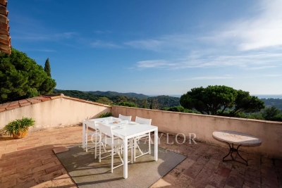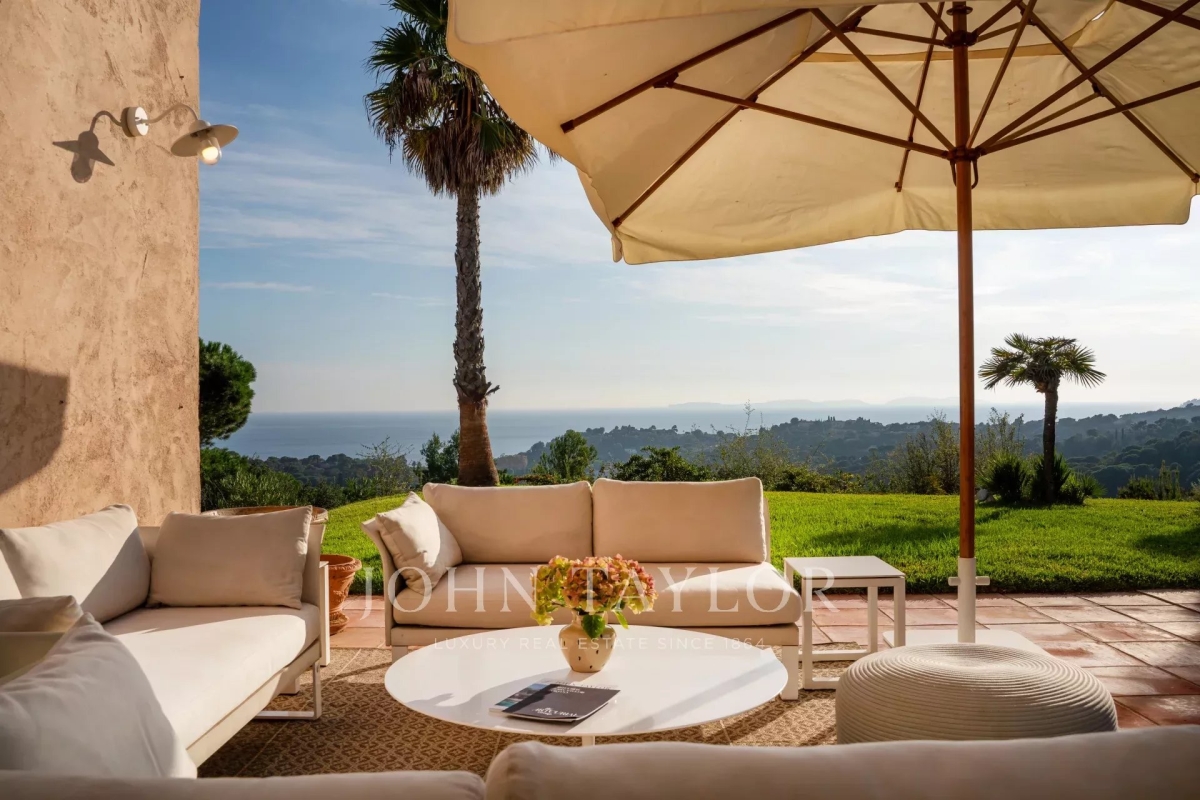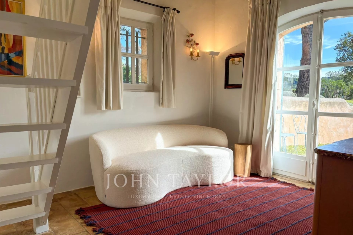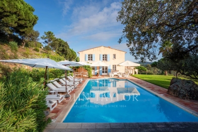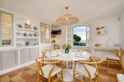 Découvrez une magnifique villa de 380 m² nichée face à la mer dans un écrin de verdure de 5 813 m², à quelques minutes de la plage de Gigaro, dans un domaine privé, idéale pour des séjours en famille ou entre amis. Située à La Croix-Valmer, cette propriété peut accueillir jusqu'à 14 personnes et offre un cadre de vie cosy avec une atmosphère paisible grâce à sa vue. Rez-de-chaussée : Le rez-de-chaussée comprend une grande pièce à vivre lumineuse avec un séjour avec cheminée ouvrant sur une terrasse couverte face à la mer avec un salon extérieur. Vous y trouverez également quatre chambres confortables, chacune disposant de sa propre salle de bain ou salle de douche, climatisation et ouvrant sur le jardin ou à une terrasse. La cuisine moderne et spacieuse, entièrement rénovée et parfaitement équipée, avec des appareils électroménagers de qualité. La buanderie adjacente totalement équipée. Premier étage : À l'étage, la chambre master bénéficie d'une grande terrasse avec une vue imprenable sur la mer, un lit king-size, une salle de bain attenante et un dressing. Une chambre enfant communicante est également disponible, ainsi qu'une autre chambre double avec salle de douche. Extérieurs : Les espaces extérieurs sont conçus pour offrir des moments de détente et de convivialité. Une piscine chauffée 6x12, avec transats et parasols. Un jardin aménagé avec un coin salon, une grande table, un patio avec barbecues, ainsi qu'un terrain de pétanque font partie des équipements. Le parking peut accueillir jusqu'à cinq voitures.