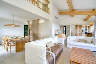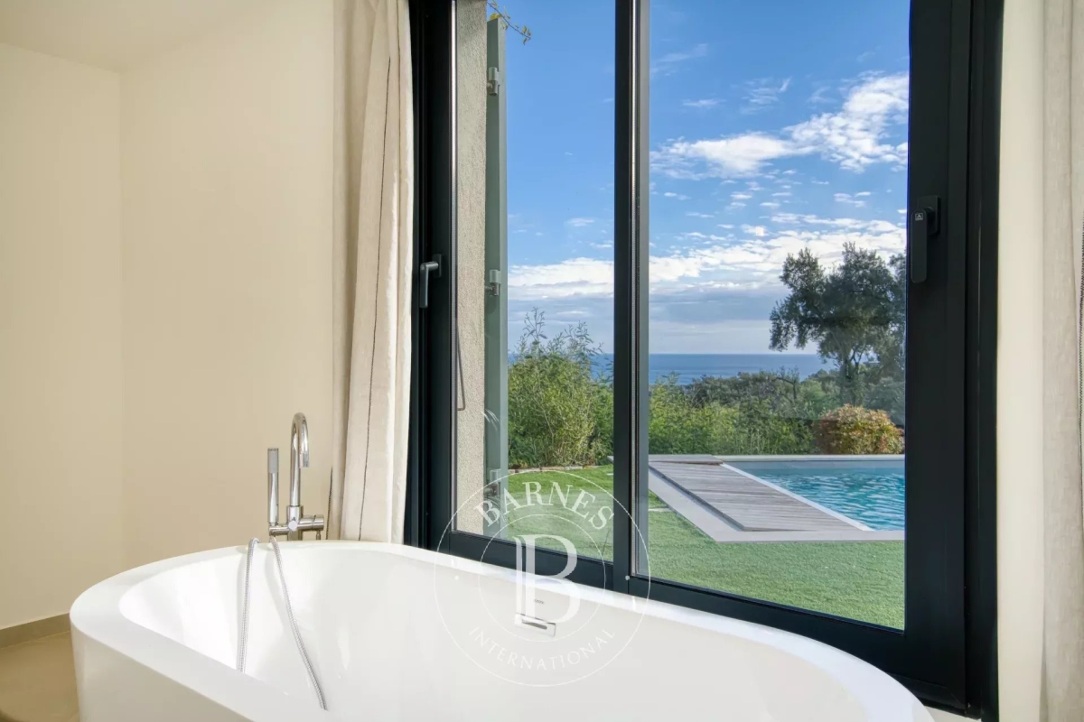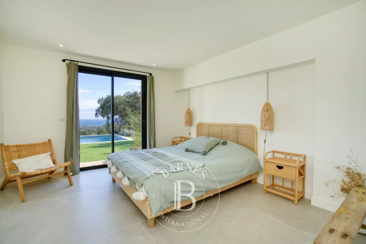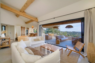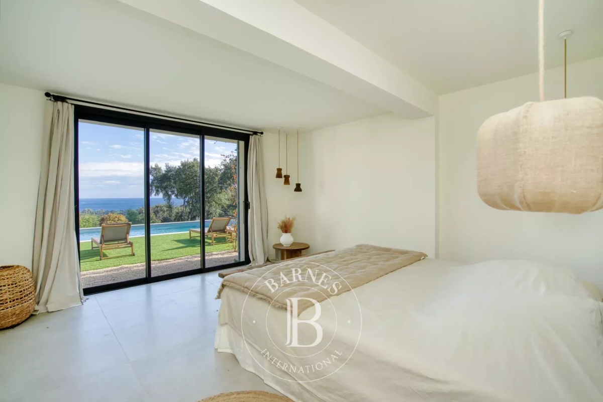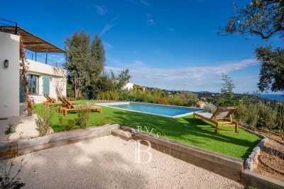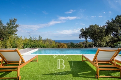 Cette villa récemment rénovée d'environ 300m², se situe sur les hauteurs de La Croix-Valmer et offre une vue sur la mer. Au rez-de-chaussée, la villa se compose d'une cuisine ouverte sur le salon et la salle à manger, de deux chambres en suite. Un espace bureau/bibliothèque ainsi qu'une chambre en suite avec une terrasse tropézienne complètent le premier niveau. Au rez-de-jardin, se trouvent une suite parentale, deux chambres en suite et un salon TV. Le jardin, joliment arboré, dispose de plusieurs terrasses, d'une piscine ainsi que d'un terrain de pétanque. Services inclus : ménage régulier, linge de maison, linge de piscine et service conciergerie BARNES personnalisé Numéro de loueur meublé : 830480017222T « Les informations sur les risques auxquels ce bien est exposé sont disponibles sur le site Géorisques : www.georisques.gouv.fr » DPE en cours Bien situé dans une zone soumise à l'obligation de débroussaillement. Contact: 0627996863.