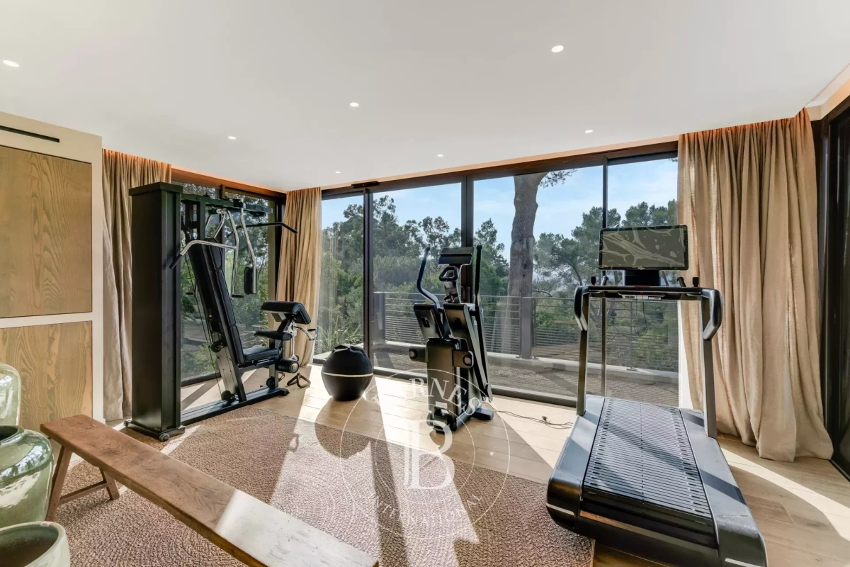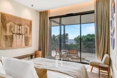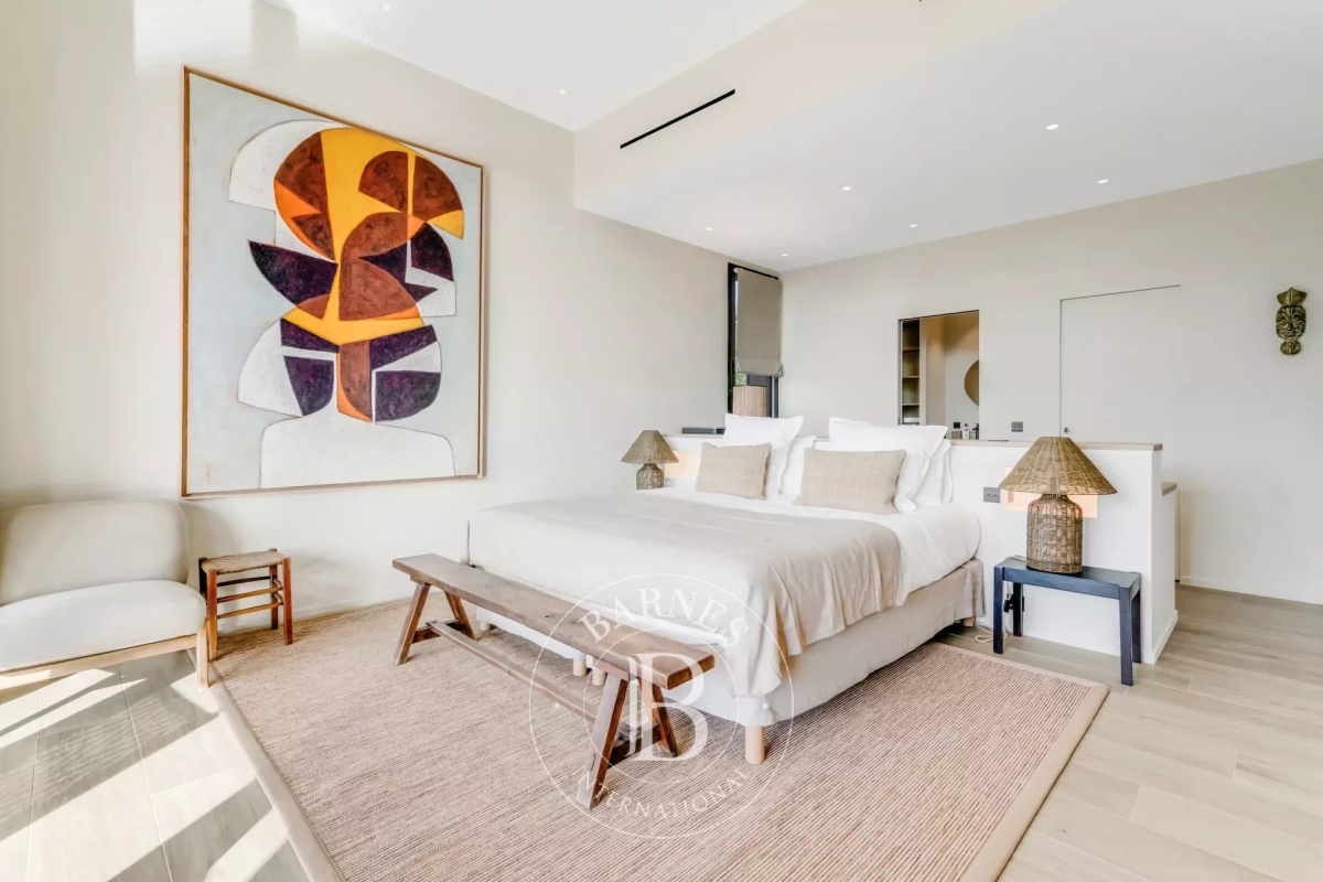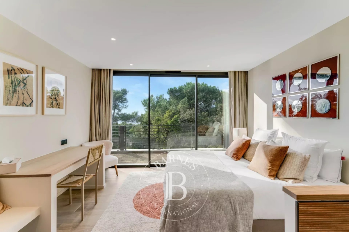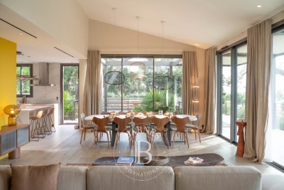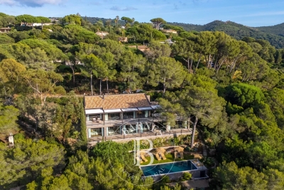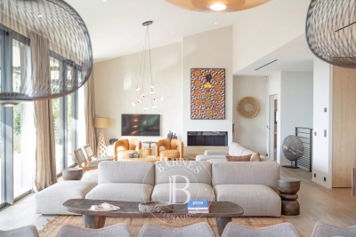 Cette villa neuve, située sur les hauteurs de Gigaro dans un environnement calme, offre un accès direct à la mer. Répartie sur deux niveaux, la villa dispose d'un grand espace de vie ouvert sur l'extérieur, d'une suite parentale, de quatre chambres en suite, d'un dortoir enfants, d'un deuxième salon TV, d'une salle de sport ainsi que d'une buanderie. L'extérieur, joliment arboré, offre de nombreux espaces de détente, d'une piscine, d'un terrain de pétanque ainsi que d'un chemin qui mène directement à la Plage de Gigaro, le tout avec une vue dégagée sur la mer et la pinède environnante. Équipements : Climatisation, WIFI, alarme, coffre-fort, places de parking. Services inclus : ménage régulier, linge de maison, linge de piscine et service conciergerie BARNES personnalisé. Numéro de loueur meublé : 8304800199376 « Les informations sur les risques auxquels ce bien est exposé sont disponibles sur le site Géorisques : www.georisques.gouv.fr » Bien situé dans une zone soumise à l'obligation de débroussaillement. Contact: 0627996863.