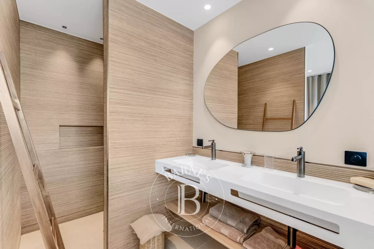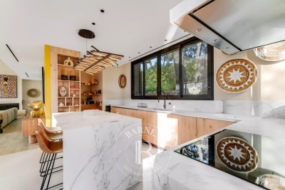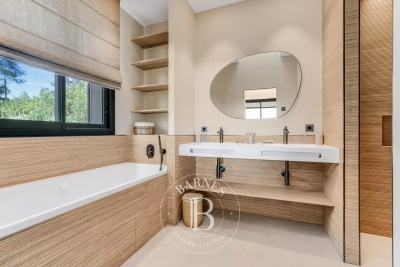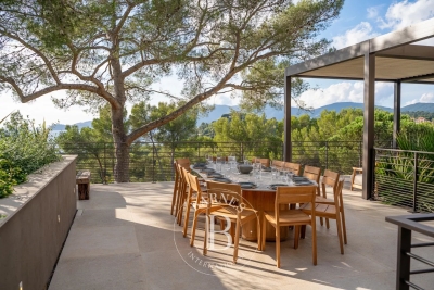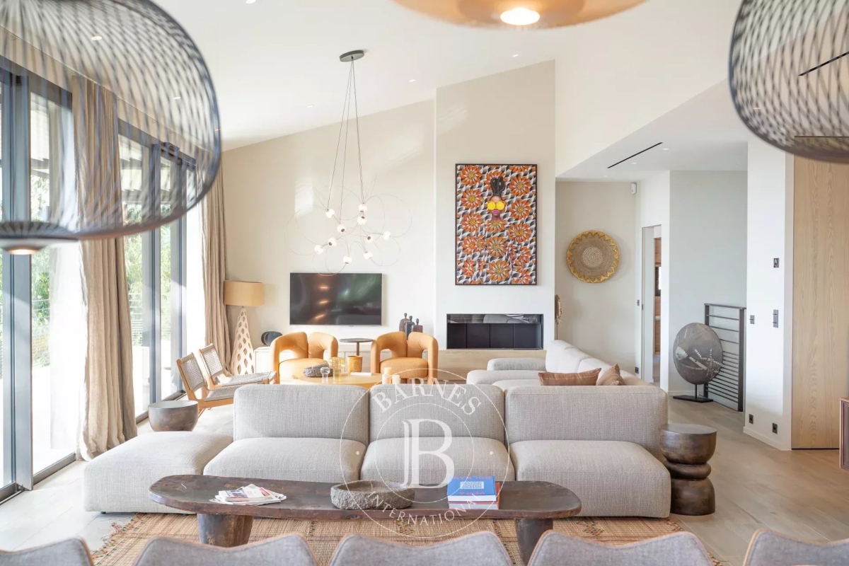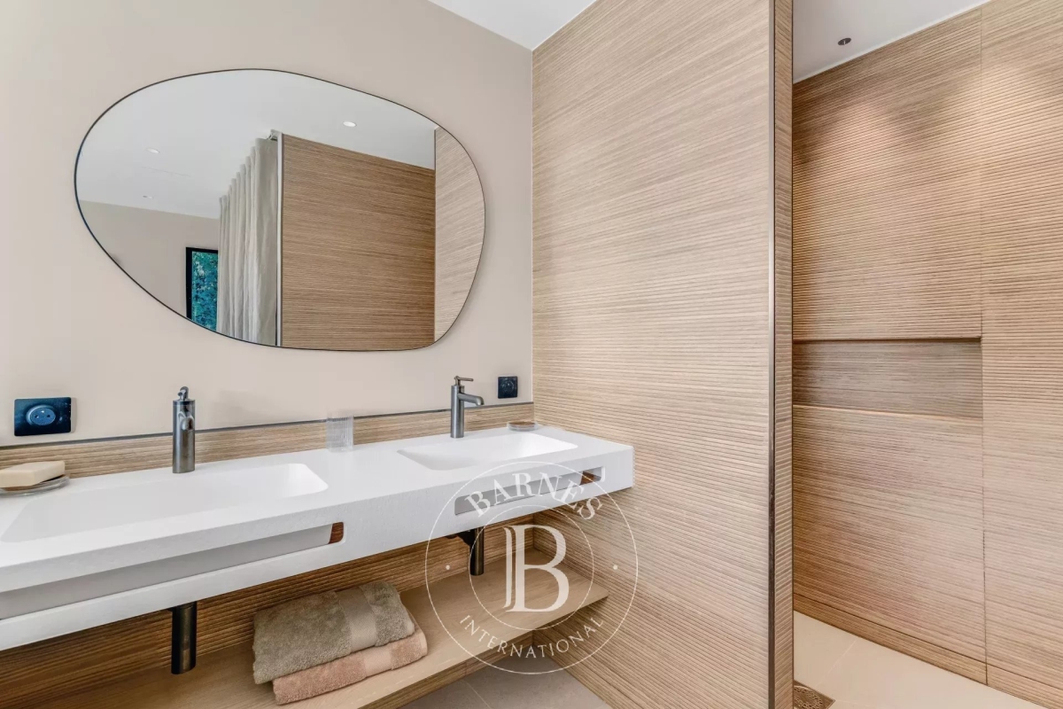 Cette villa neuve, située sur les hauteurs de Gigaro dans un environnement calme, offre un accès direct à la mer. Répartie sur deux niveaux, la villa dispose d'un grand espace de vie ouvert sur l'extérieur, d'une suite parentale, de quatre chambres en suite, d'un dortoir enfants, d'un deuxième salon TV, d'une salle de sport ainsi que d'une buanderie. L'extérieur, joliment arboré, offre de nombreux espaces de détente, d'une piscine, d'un terrain de pétanque ainsi que d'un chemin qui mène directement à la Plage de Gigaro, le tout avec une vue dégagée sur la mer et la pinède environnante. Équipements : Climatisation, WIFI, alarme, coffre-fort, places de parking. Services inclus : ménage régulier, linge de maison, linge de piscine et service conciergerie BARNES personnalisé. Numéro de loueur meublé : 8304800199376 « Les informations sur les risques auxquels ce bien est exposé sont disponibles sur le site Géorisques : www.georisques.gouv.fr » Bien situé dans une zone soumise à l'obligation de débroussaillement. Contact: 0627996863.