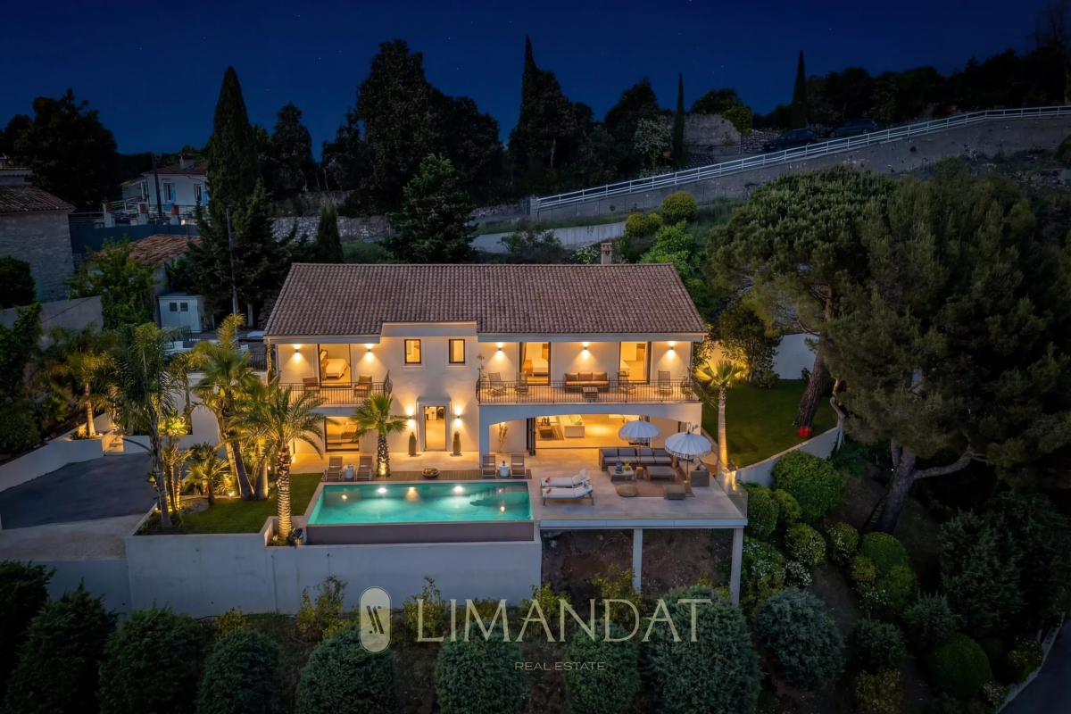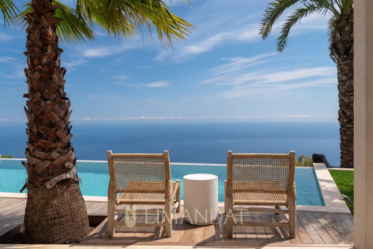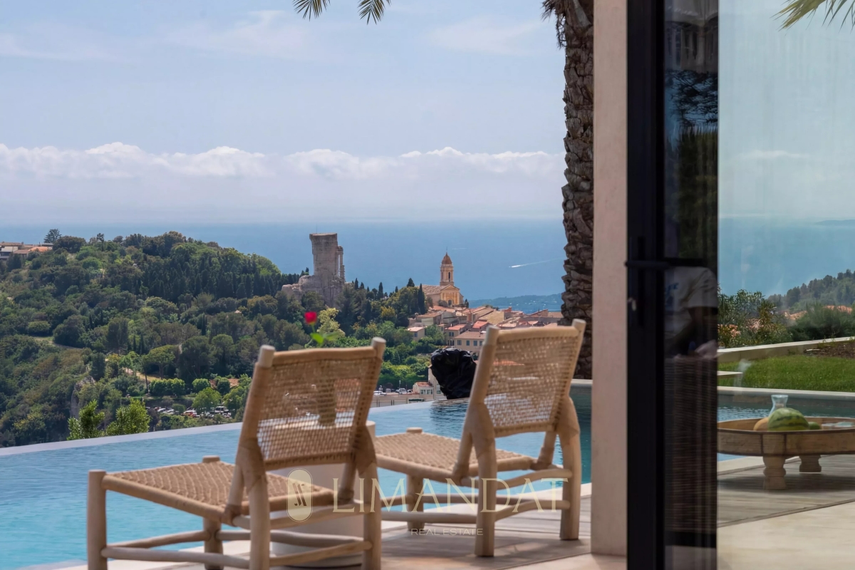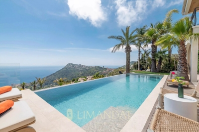 Nichée au cœur d'un domaine privé et sécurisé sur les hauteurs de La Turbie, la Villa Costa déploie 350 m² d'élégance néoprovençale, sublimés par une vue spectaculaire sur Monaco et la Méditerranée. Entièrement rénovée avec des matériaux de qualité, la propriété séduit par ses volumes généreux pouvant accueillir jusqu'à 14 personnes, son atmosphère chaleureuse et son art de vivre résolument méditerranéen. Elle offre un cadre confidentiel où calme, raffinement et panorama d'exception se conjuguent, à seulement quelques minutes de la Principauté. Niveau principal : -Très grand salon et salle à manger -Cuisine conviviale entièrement équipée avec îlot central dinatoire -1 chambre double avec salle de douche et WC -WC invités -Buanderie entièrement équipée Niveau supérieur : -5 chambres spacieuses, toutes avec salle de bain ou salle de douche et WC dont 4 chambres disposant de terrasses privatives aménagées Extérieurs : -Piscine à débordement chauffée -Terrasses exposées plein sud offrant une vue panoramique sur Monaco et la Méditerranée -Éclairages d'ambiance extérieurs pour des soirées estivales magiques -Jardin luxuriant gazonné, mêlant essences exotiques et provençales Prestations supplémentaires : -Domaine privé et sécurisé -Villa entièrement rénovée -Exposition plein sud -Climatisation intégrale -Terrain de pétanque -Espace bar et barbecue -Portail électrique -Plusieurs places de parking attenantes à la villa Situation & accès : -Village animé de La Turbie à 1,2 km (restaurants, commerces, commodités) -Accès autoroute à 3 minutes (Nice, Cannes, etc.) -Monaco à seulement 15 minutes en voiture La Villa Costa est idéale pour plusieurs couples, un groupe d'amis, une grande famille ou des séjours professionnels, dans un cadre exclusif offrant l'une des plus belles vues de la Riviera. Contact: +33617128879.