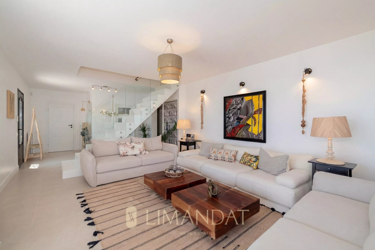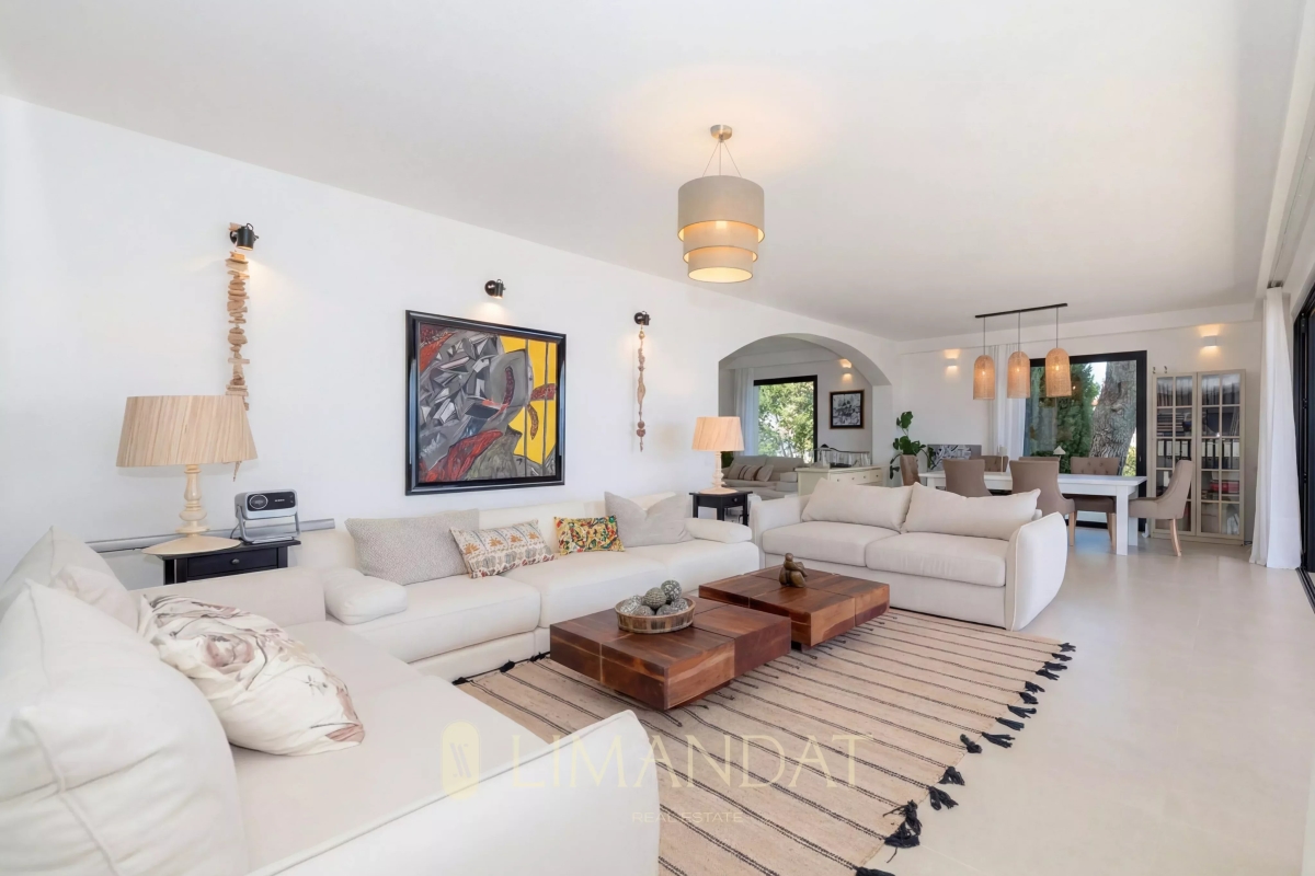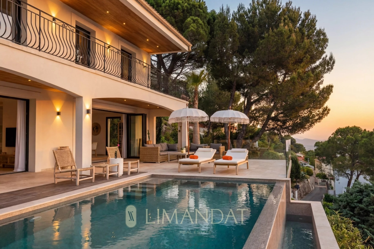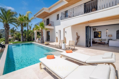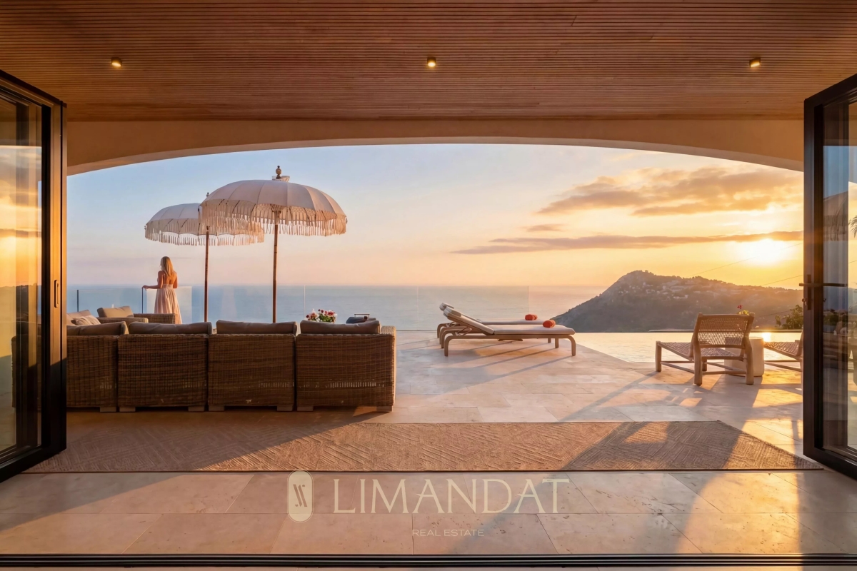 Nichée au cœur d'un domaine privé et sécurisé sur les hauteurs de La Turbie, la Villa Costa déploie 350 m² d'élégance néoprovençale, sublimés par une vue spectaculaire sur Monaco et la Méditerranée. Entièrement rénovée avec des matériaux de qualité, la propriété séduit par ses volumes généreux pouvant accueillir jusqu'à 14 personnes, son atmosphère chaleureuse et son art de vivre résolument méditerranéen. Elle offre un cadre confidentiel où calme, raffinement et panorama d'exception se conjuguent, à seulement quelques minutes de la Principauté. Niveau principal : -Très grand salon et salle à manger -Cuisine conviviale entièrement équipée avec îlot central dinatoire -1 chambre double avec salle de douche et WC -WC invités -Buanderie entièrement équipée Niveau supérieur : -5 chambres spacieuses, toutes avec salle de bain ou salle de douche et WC dont 4 chambres disposant de terrasses privatives aménagées Extérieurs : -Piscine à débordement chauffée -Terrasses exposées plein sud offrant une vue panoramique sur Monaco et la Méditerranée -Éclairages d'ambiance extérieurs pour des soirées estivales magiques -Jardin luxuriant gazonné, mêlant essences exotiques et provençales Prestations supplémentaires : -Domaine privé et sécurisé -Villa entièrement rénovée -Exposition plein sud -Climatisation intégrale -Terrain de pétanque -Espace bar et barbecue -Portail électrique -Plusieurs places de parking attenantes à la villa Situation & accès : -Village animé de La Turbie à 1,2 km (restaurants, commerces, commodités) -Accès autoroute à 3 minutes (Nice, Cannes, etc.) -Monaco à seulement 15 minutes en voiture La Villa Costa est idéale pour plusieurs couples, un groupe d'amis, une grande famille ou des séjours professionnels, dans un cadre exclusif offrant l'une des plus belles vues de la Riviera. Contact: +33617128879.