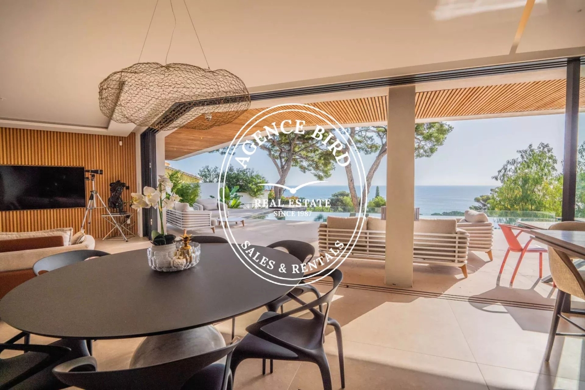 Aux Issambres, découvrez l'élégance et la sérénité dans cette propriété d'exception avec une vue mer imprenable, située à seulement 350 mètres des plages. Nichée sur un terrain de 1 500 m², cette villa de 260 m² allie raffinement et confort pour des séjours inoubliables. Le rez-de-jardin offre un espace de vie spacieux et baigné de lumière, comprenant un salon convivial ouvert sur une élégante salle à manger. La cuisine, entièrement équipée d'appareils modernes, vous invite à préparer de délicieux repas pour vos proches. Une première chambre avec salle de bains et douche privatives offre un accès direct à la piscine, créant une oasis de détente à portée de main. À létage, quatre chambres aménagées avec goût, chacune dotée de sa propre salle de bain ou salle de douche, garantissent confort et intimité. Une terrasse privative à cet étage vous invite à savourer des moments de détente face à la mer. À l'extérieur, un espace de relaxation exceptionnel vous attend : une piscine scintillante de 12x4 m (chauffée sur demande), des terrasses aménagées pour la détente ou des repas en plein air, ainsi qu'un barbecue idéal pour vos soirées estivales. Un boulodrome est également à disposition pour des moments de convivialité. Les équipements ne manquent pas pour garantir un séjour sans souci : Wi-Fi fibre pour rester connecté, climatisation dans toute la villa, portail électrique pour votre sécurité, et une borne de recharge pour véhicules électriques. Vous trouverez aussi un garage pour plus de confort. Cette villa incarne le luxe dans un cadre paisible et privilégié, où vous pourrez profiter de la vue mer tout en étant à quelques pas des plages. Entrée/sortie haute saison : du samedi au samedi (7 nuits min) A régler sur place : Dépôt de garantie et Taxe de séjour N° d'enregistrement : 83107 002224 2D