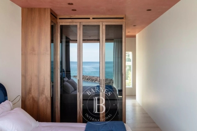 Mandelieu-la-Napoule : Situation exceptionnelle pour cette villa contemporaine pieds dans l'eau et entièrement neuve, à quelques pas du château historique de La Napoule, offrant une vue imprenable sur la mer avec un panorama sur la baie de Cannes, Théoule et les Îles de Lérins. Elle se compose de 460 m² avec un hall d'entrée de 32 m² accessible par l'escalier ou l'ascenseur, offrant une magnifique vue sur la mer, un espace de réception de 100 m² avec cuisine entièrement équipée et cave à vin intégrée, un séjour cathédrale avec cheminée, et une salle à manger donnant sur une spacieuse terrasse vue mer. À l'étage : quatre magnifique suites avec dressing. Un grand sous-sol de 240 m² comprenant un garage de 140 m² pouvant accueillir entre 4 et 5 voitures, ainsi que deux bornes de recharge électriques et un local technique. Terrain plat avec piscine chauffée au sel et jacuzzi viennent compléter ce bien. Un bien rare et unique aux pieds des plus belles plages de Mandelieu-la-Napoule et à quelques minutes de Cannes. Contact: +0760633003.