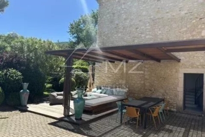 Lovée dans un superbe coin de verdure, au calme absolu, mais sans être isolée, cette demeure d'une exceptionnelle qualité séduit par la beauté de son bâti comme de son jardin paysagé. Plus d'un hectare de terrain soigneusement arboré et complanté d'essences méditerranéennes, propose un superbe champ de lavande, un potager et intègre un beau couloir de nage sur une large parcelle plate et engazonnée. Un court de tennis neuf vient parfaire l'ensemble. Les intérieurs soignés se répartissent sur trois niveaux avec de spacieux volumes, des pièces de vie ouvertes, confortables et lumineuses. Cinq chambres et trois salles de bains. Un authentique coin de paradis pour les amoureux du Luberon... Cette propriété se loue du dimanche au dimanche.