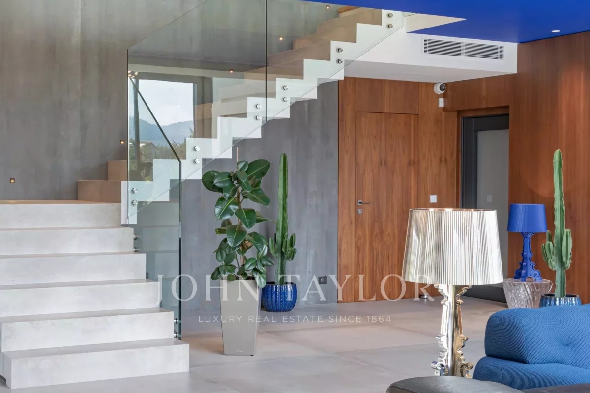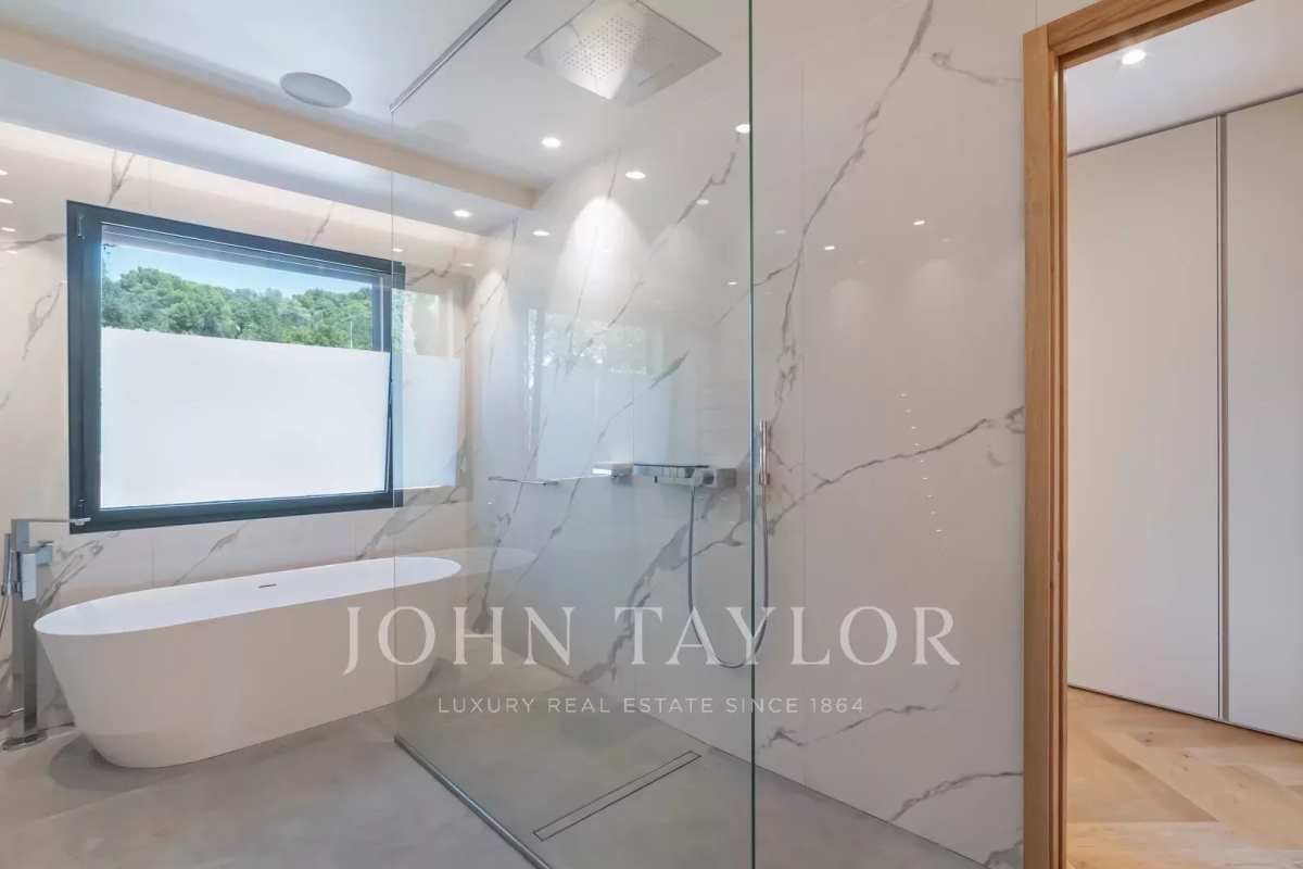 Découvrez cette somptueuse villa contemporaine idéalement située à proximité du charmant village de Mougins. Avec une surface habitable d'environ 340 m², elle offre un cadre raffiné et spacieux, parfait pour des vacances inoubliables sous le soleil de la Côte d'Azur. Dès l'entrée, vous serez séduit par son atmosphère élégante et sophistiquée. Le vaste salon baigné de lumière naturelle grâce à de grandes baies vitrées s'ouvre harmonieusement sur l'extérieur. Son design épuré, son mobilier contemporain et ses œuvres d'art soigneusement sélectionnées créent une ambiance à la fois chic et accueillante. Les cinq chambres, conçues comme de véritables havres de paix, offrent un confort absolu. La somptueuse suite parentale se distingue par sa salle de bains privative avec baignoire et son dressing spacieux. À l'extérieur, laissez-vous charmer par un véritable écrin de détente. La vaste terrasse est idéale pour profiter du climat méditerranéen, tandis que la piscine à débordement scintille sous le soleil. Les jardins paysagers ajoutent une touche de sérénité, invitant à la relaxation en toute intimité. Plongez dans l'excellence du luxe et du confort avec cette villa d'exception à Mougins. Avec son design sophistiqué, ses prestations haut de gamme et une gardienne sur place, elle vous promet un séjour unique et mémorable. Réservez dès maintenant et créez des souvenirs inoubliables. Les informations sur les risques auxquels ce bien est exposé sont disponibles sur le site Géorisques : www.georisques.gouv.fr Contact: 0609238497.