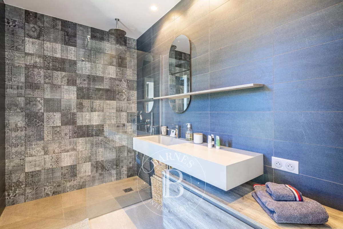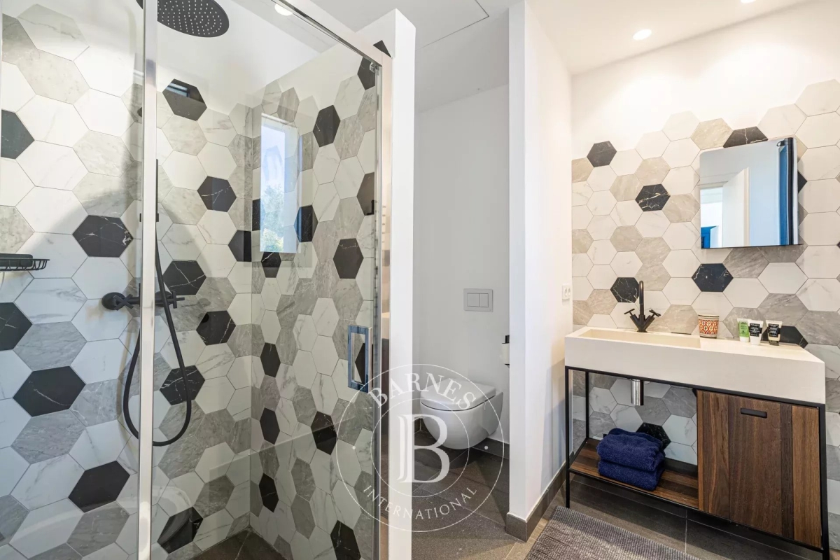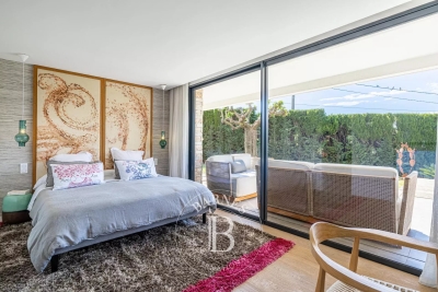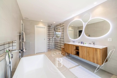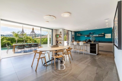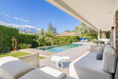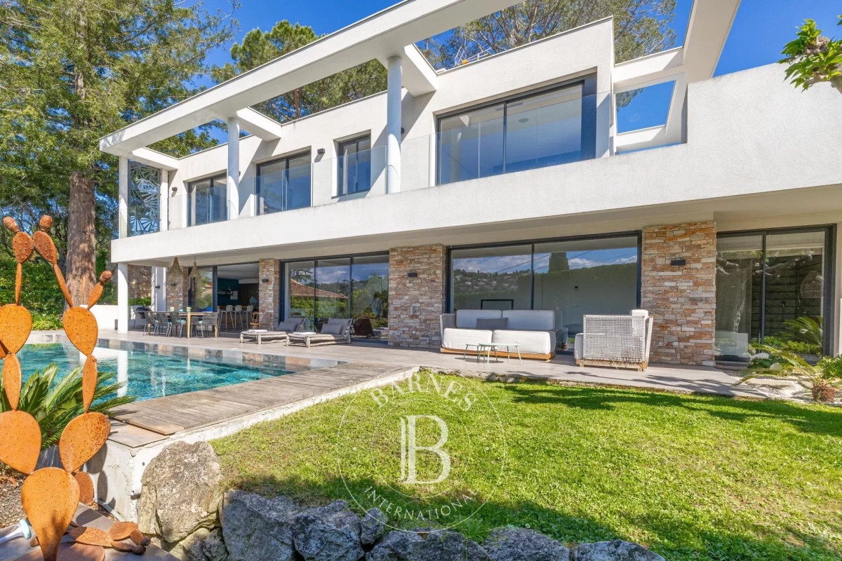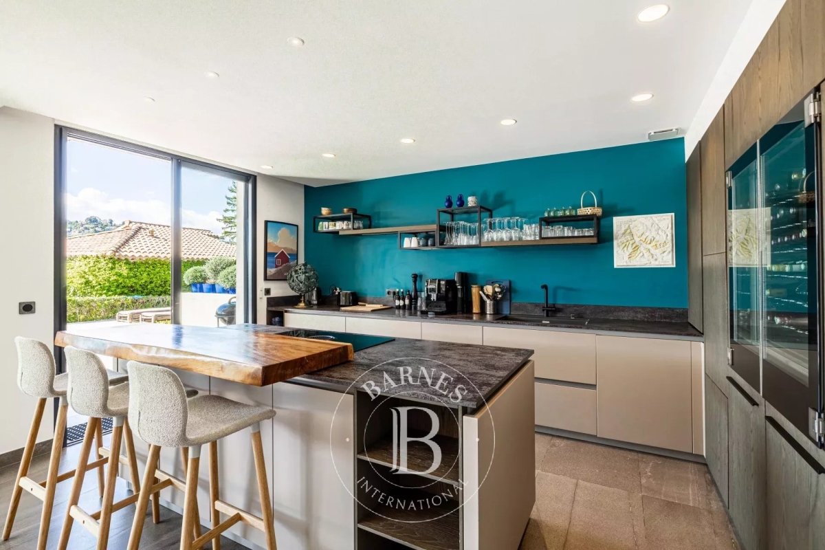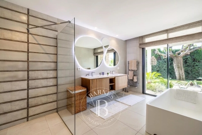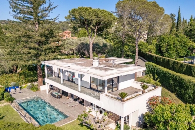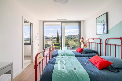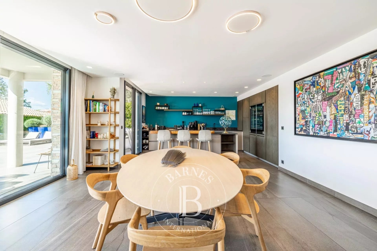 La villa contemporaine, récemment construite sur un terrain plat, offre une vue dégagée sur le célèbre village de Mougins. Elle propose 4 chambres, dont une master en suite avec dressing en rez de jardin, puis à l'étage une grande chambre double en suite, une chambre avec 2 lits simples ainsi qu'une chambre avec un lit de 140 cm, chacune disposant de sa propre salle de douche. En rez de jardin, une cuisine américaine équipée, ouvre sur un vaste salon salle à manger très lumineux, donnant accès direct sur la piscine au sel orientée plein ouest. La villa est décorée avec chic et sobriété. A l'extérieur, la villa est entourée d'un jardin luxuriant, d'un terrain de pétanque, et d'une agréable terrasse pour prendre vos repas. Le garage peut abriter 2 voitures. Villa idéale pour des vacances en famille ou pour des couples d'amis avec enfants. Claire CALLAWAY - Agent commercial - EI - RSAC 514608546