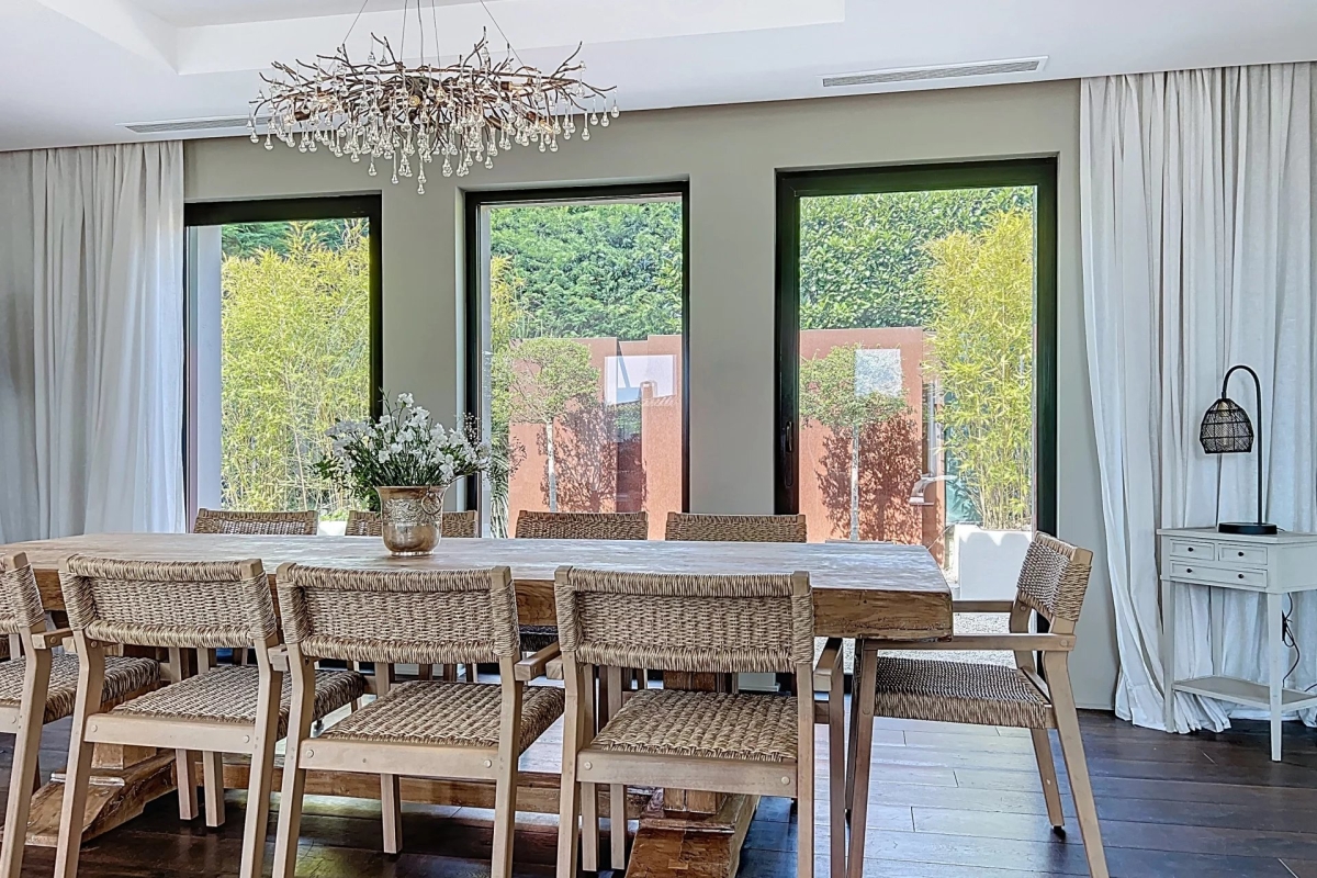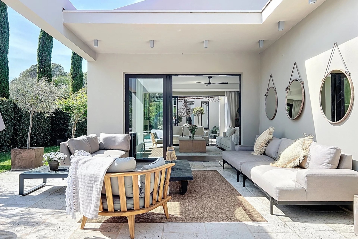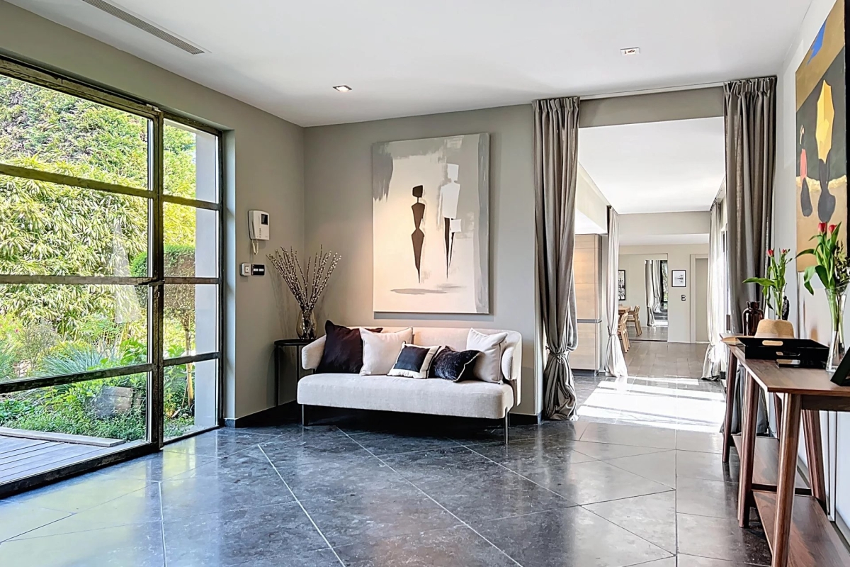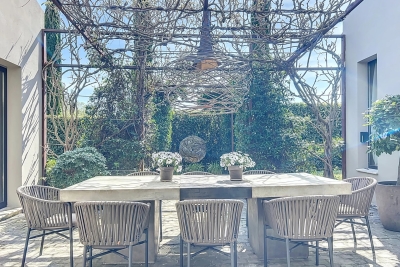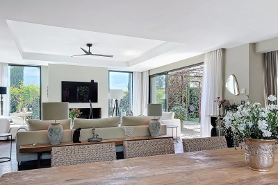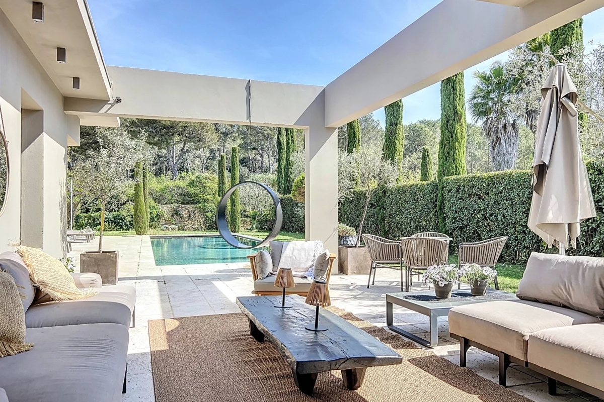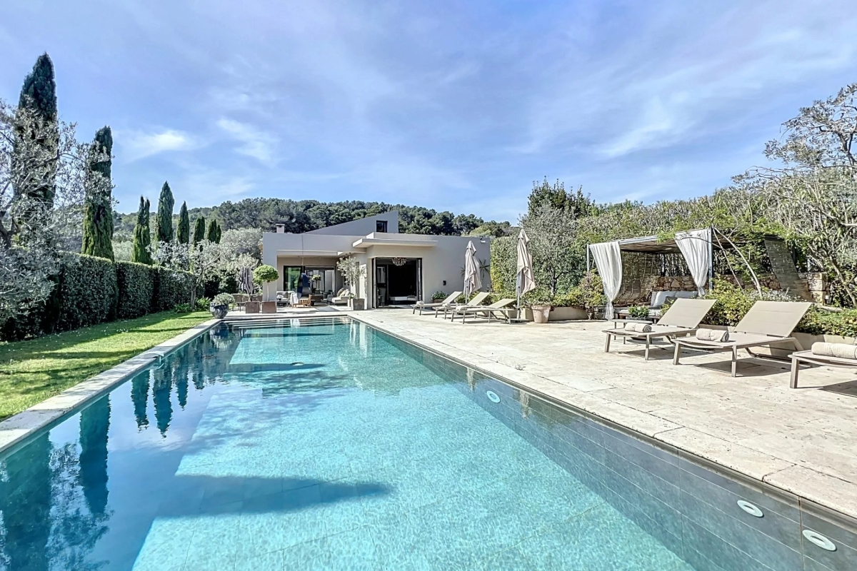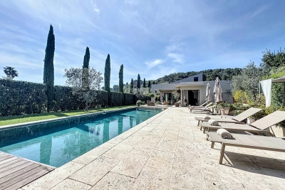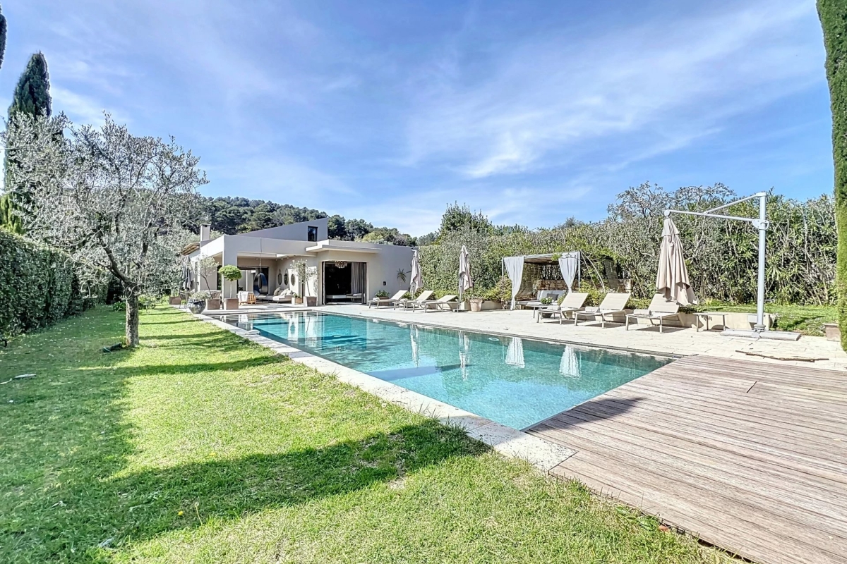 Implantée au cœur d'une nature verdoyante, cette villa contemporaine de 280 m² est bâtie sur une parcelle de 1500 m² arborée avec piscine, au sein d'un quartier résidentiel de Mougins. Cette agréable villa pleine de charme est composée d'un grand séjour lumineux avec son côté salon avec cheminée et son côté salle à manger, avec de grandes baies vitrées qui s'ouvrent sur la terrasse et la piscine, d'une cuisine séparée bénéficiant d'un magnifique patio avec sa salle à manger extérieure. D'une belle suite parentale directement sur le jardin, deux chambres en suite supplémentaires et une buanderie s'ajoutent à ce niveau. L'étage est dédié à une quatrième chambre et sa salle de bains. Un garage, et un sous-sol aménagé de 60 m² complètent ce lieu de vie d'exception. Contact: +33609067234.