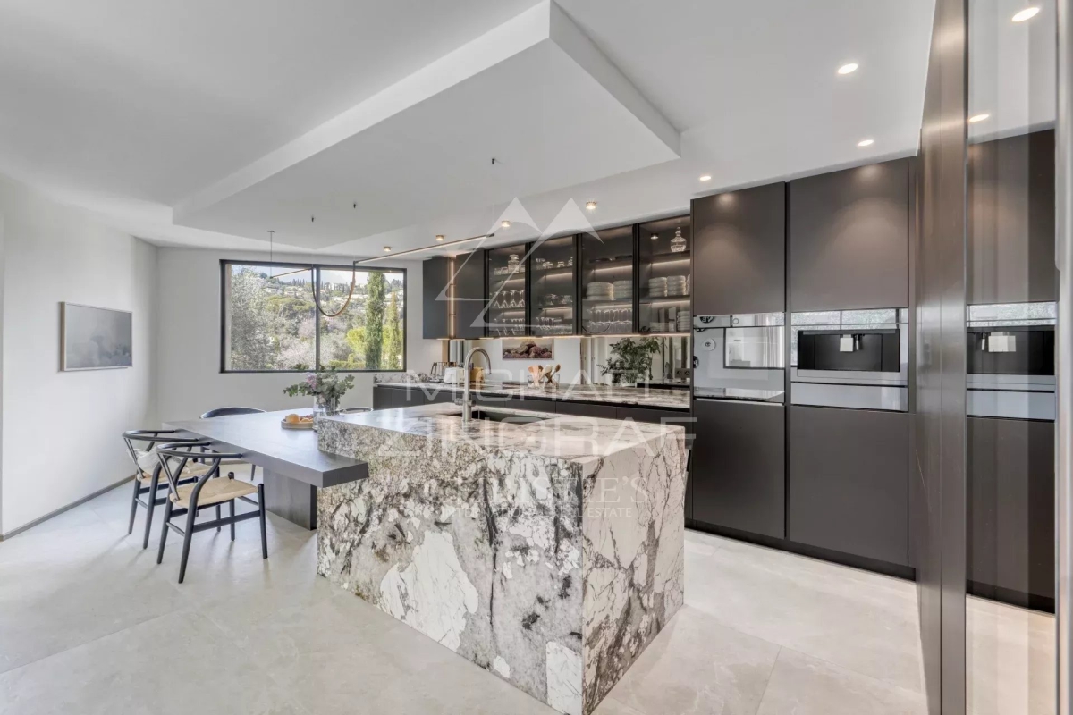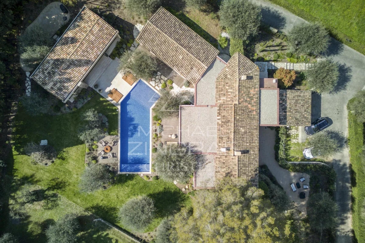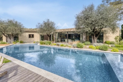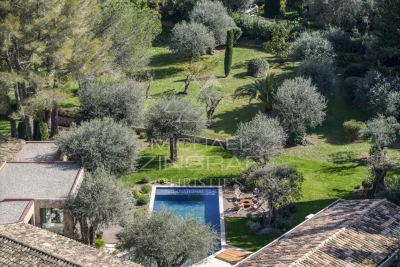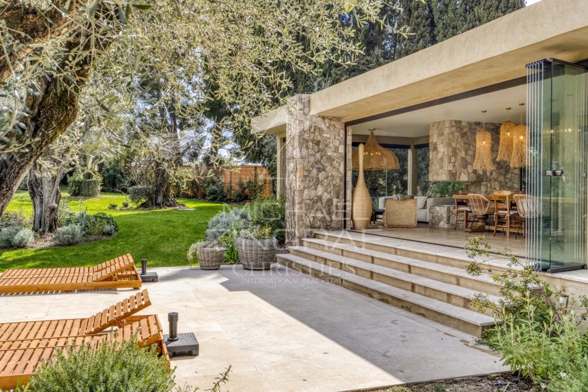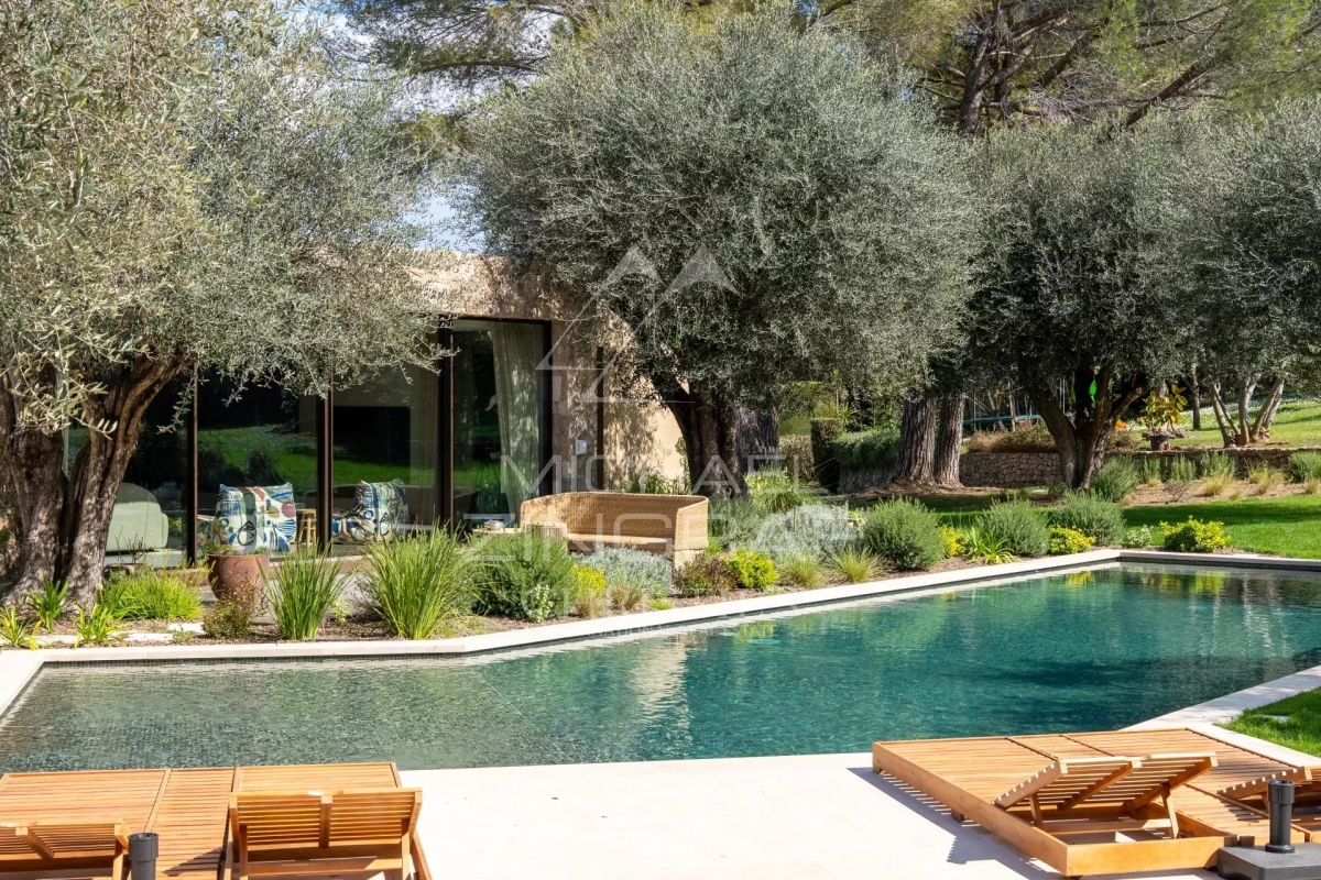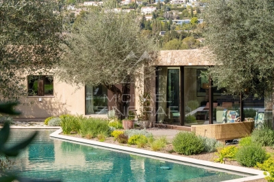 Située à Mougins, dans un environnement verdoyant et résidentiel, à proximité de Cannes, cette villa entièrement rénovée offre un cadre idéal pour des séjours au calme. La propriété propose de beaux volumes et une organisation fonctionnelle. Le séjour lumineux s'ouvre sur les espaces extérieurs et la piscine, prolongé par un pool house aménagé, propice aux moments de détente. La villa dispose de cinq chambres en suite, permettant d'accueillir famille et invités dans un confort optimal. Un studio de service complète l'ensemble, comprenant une kitchenette et une salle de douche. Implantée au sein d'un domaine privé, la propriété bénéficie d'un environnement préservé et sécurisé. Les espaces extérieurs, soigneusement aménagés, invitent à profiter pleinement du cadre naturel. Une villa adaptée à la location saisonnière, alliant confort, intimité et proximité des axes principaux de la Côte d'Azur.