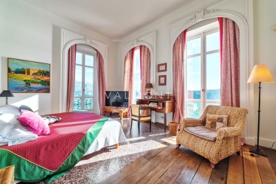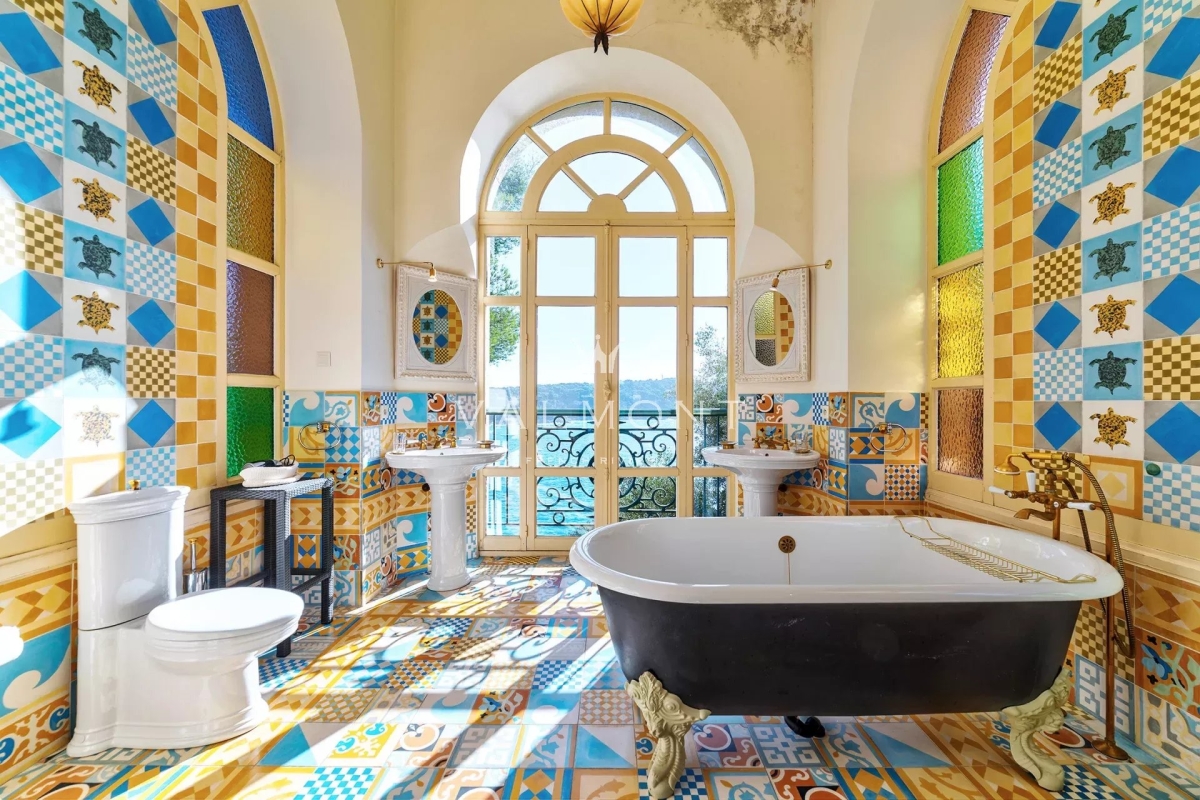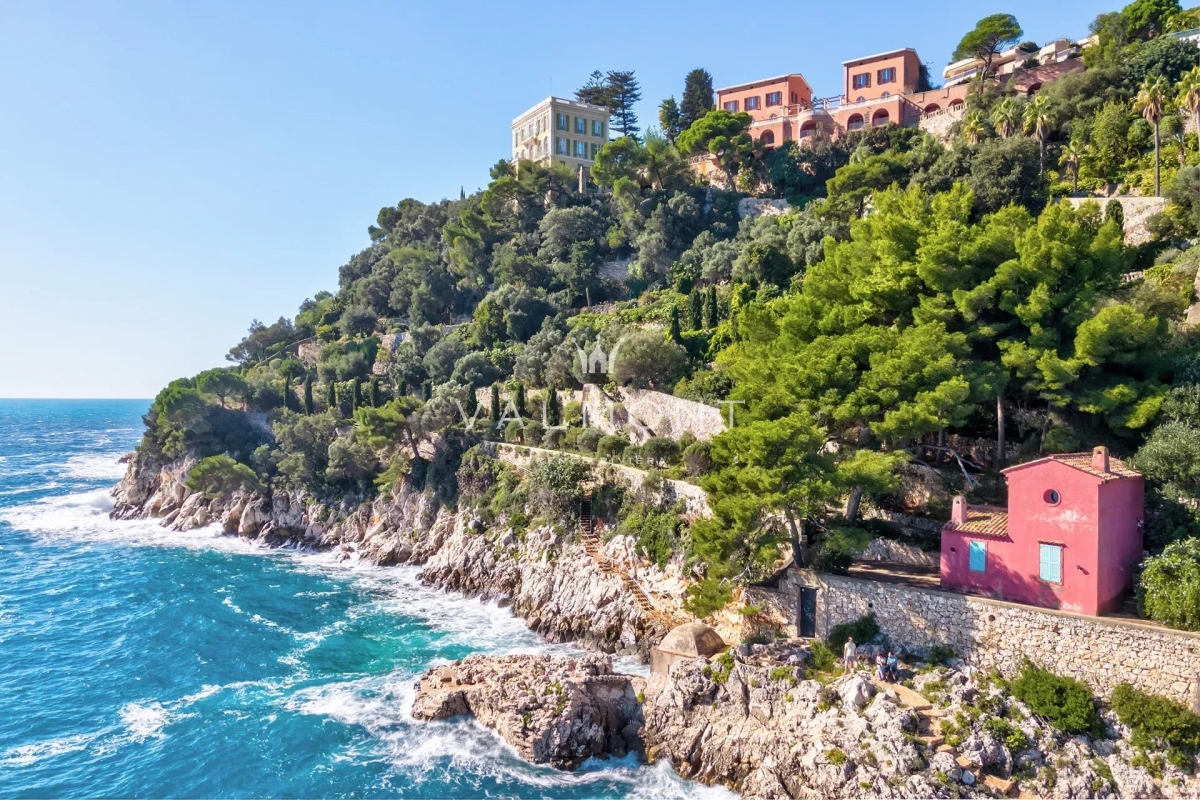 CAP DE NICE: Dominant la majestueuse baie de Villefranche-sur-Mer et Saint-Jean-Cap-Ferrat, cette propriété d'exception en bord de mer incarne l'élégance du style baroque niçois. Nichée dans un parc de 2,6 hectares, elle offre une symbiose parfaite entre architecture et nature. Le domaine se compose de quatre bâtisses distinctes : une demeure principale, une villa, un atelier d'artiste et une pittoresque maison de pêcheur. Ses 14 chambres, ses salons spacieux, sa salle de sport, ainsi que sa piscine unique, agrémentée de verrières et parfaitement intégrée à son environnement naturel, face à la mer, avec un aperçu enchanteur sur le phare de Saint-Jean-Cap-Ferrat, créent une atmosphère de pure sérénité. Chaque espace, soigneusement décoré de carreaux peints à la main, invite au voyage tout en conservant une esthétique harmonieuse. Le parc, magnifiquement aménagé, s'étend jusqu'à la mer et est accessible par un funiculaire privé. La propriété propose des prestations haut de gamme : système d'alarme, Wi-Fi, parking, coffre-fort, ainsi que des services exclusifs incluant le ménage, des jardiniers et un gardien.