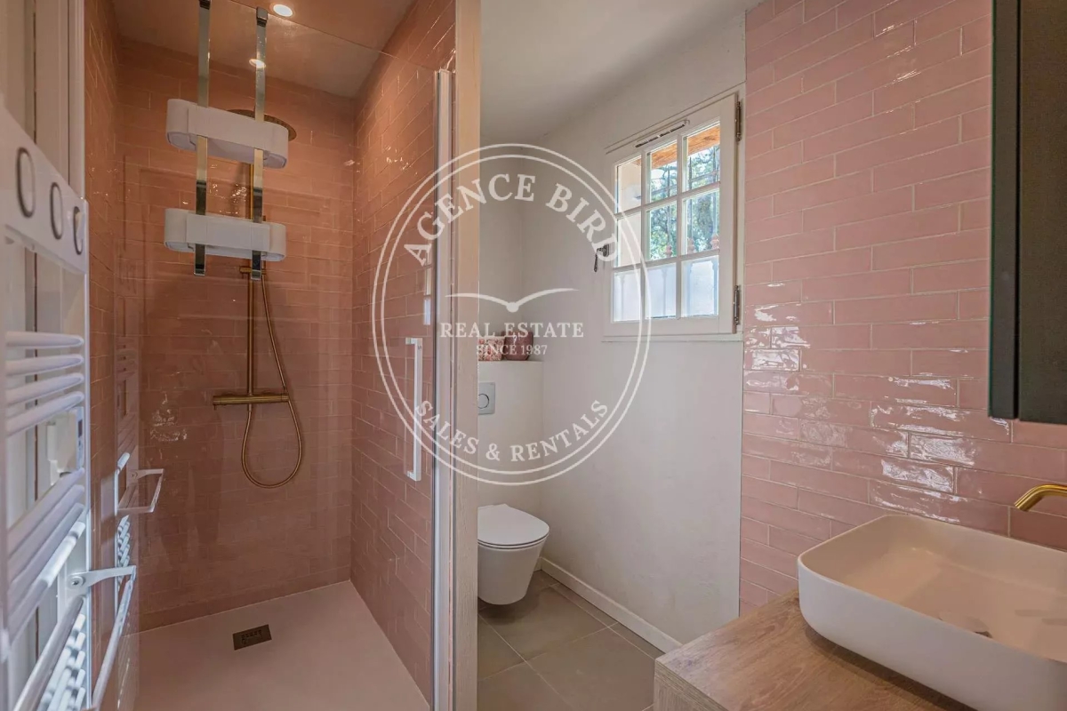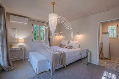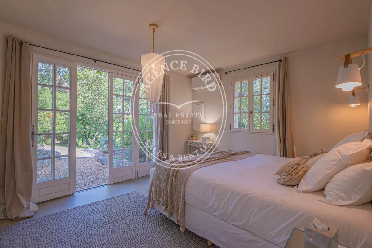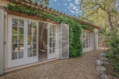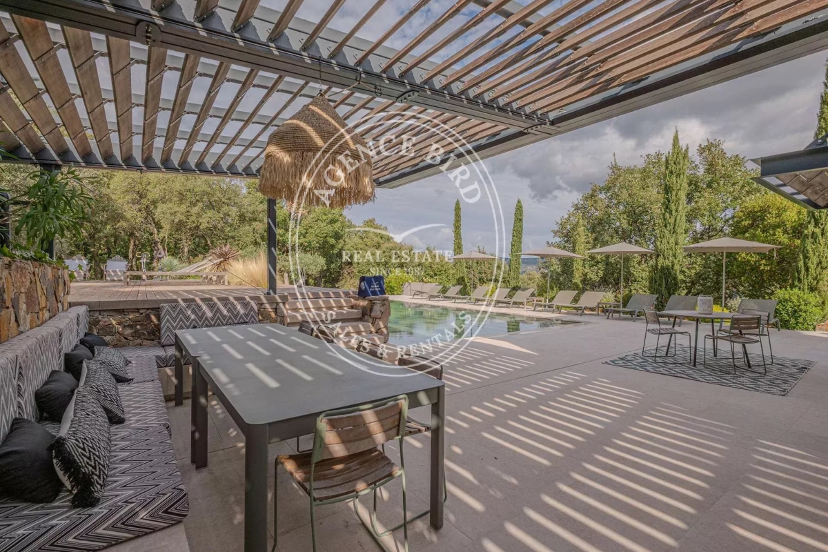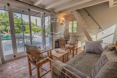 Très belle villa atypique située au Plan de La Tour sur la route de Grimaud, dans un endroit unique et boisé avec un jardin de plus de 12000 m². Elle se compose de trois Villas indépendantes entièrement climatisées. Vous serez charmé dès l'entrée, une première petite villa indépendante avec ses deux chambres double (180x200cm) à la décoration chaleureuse et douce dont une avec deux lits simples et leur salle de douche attenante. Vous y trouverez un coin cuisine. Un peu plus haut sur le chemin, une seconde villa de style bastide et sa belle terrasse d'été. A l'intérieur vous serez charmé par l'ambiance cosy du salon et son coin cheminée et télévision. Une grande cuisine entièrement équipée (double réfrigérateurs, plaque de cuisson, lave-vaisselle, machine à café Nespresso, grille pains, bouilloire) qui vous propose un lieu de détente, de partage de souvenirs d'été. Trois chambres doubles et 2 salles d'eaux aux couleurs exotiques. En direction de la piscine, vous y trouverez une troisième Villa indépendante avec sa chambre double en mezzanine (180x190cm) un coin salon détente à la décoration chaleureuse. Le coin piscine chauffée de style balinais est un havre de paix dans un coin calme et boisé avec une vue panoramique sur les collines. Vous pourrez y faire du sport, du Pilate ou du yoga avec une belle vue dégagée. Une cuisine d'été (plancha, réfrigérateur) un salon d'été à l'ombre des chênes propice à la détente et aux soirées de partage. Vous y trouverez une buanderie séparée avec son coin lave-linge et sèche linge. A l'extérieur, profitez du coin boulodrome au calme. Des coins de repos et de détente pour la lecture et la sieste. À régler sur place : dépôt de garantie et taxe de séjour N° D'ENREGISTEMENT : 83094 000316 YR