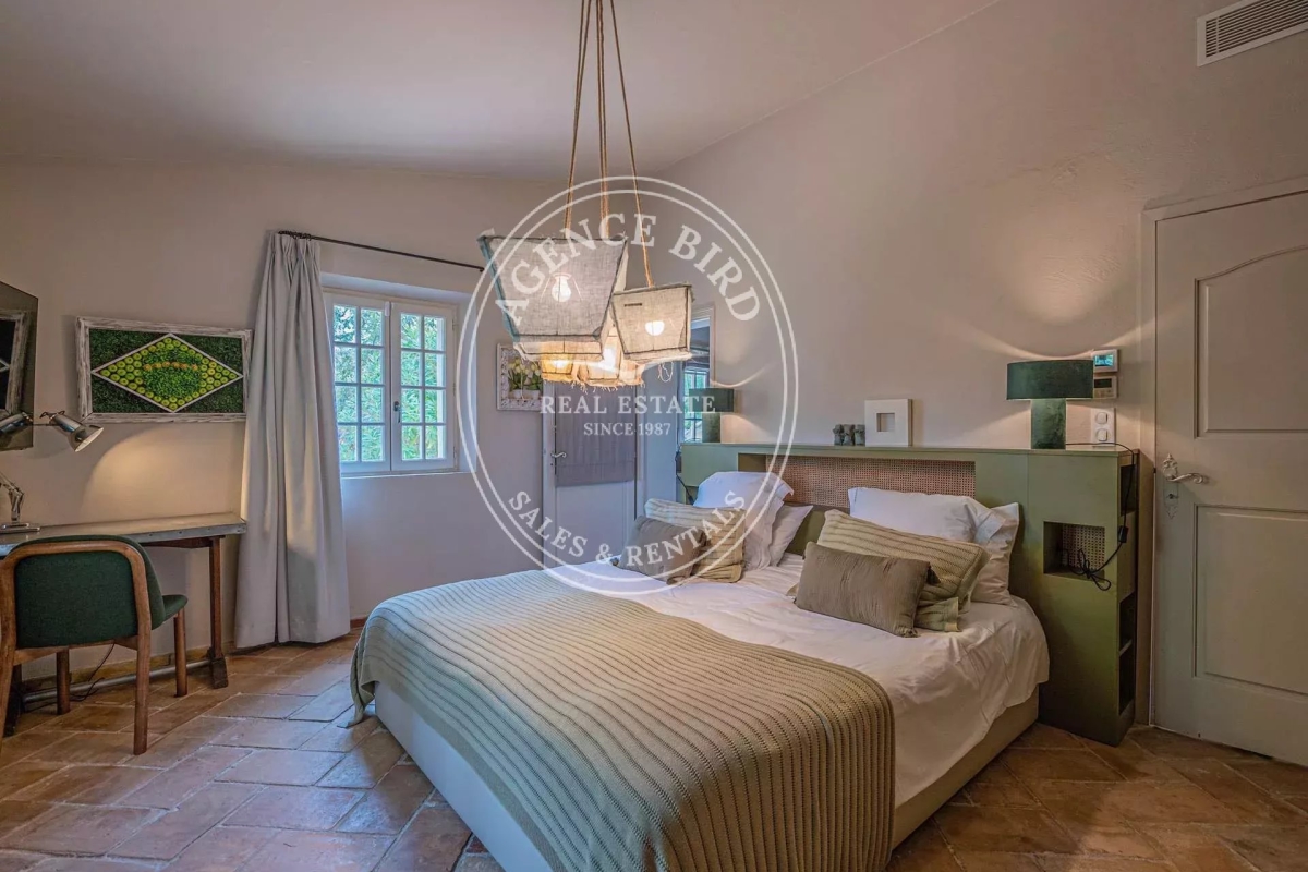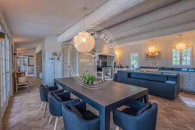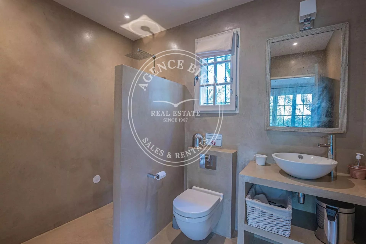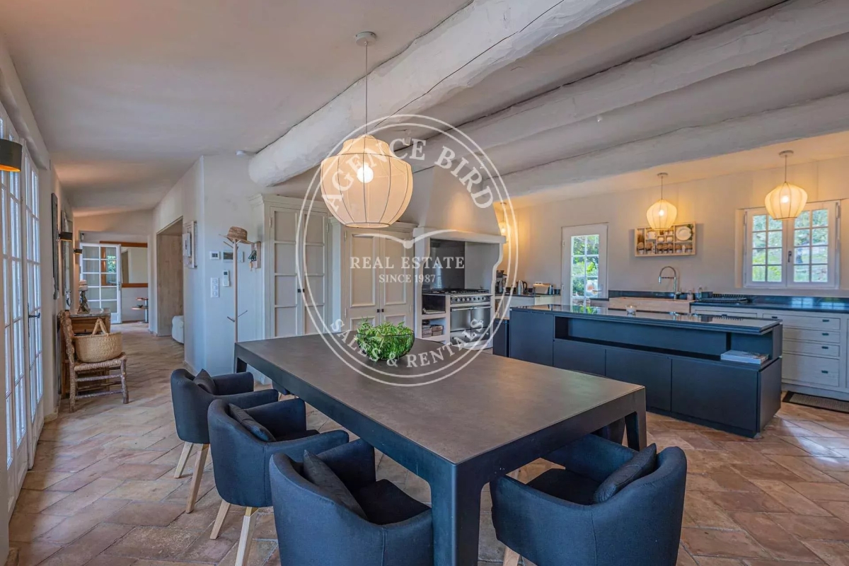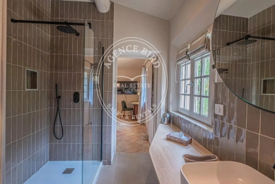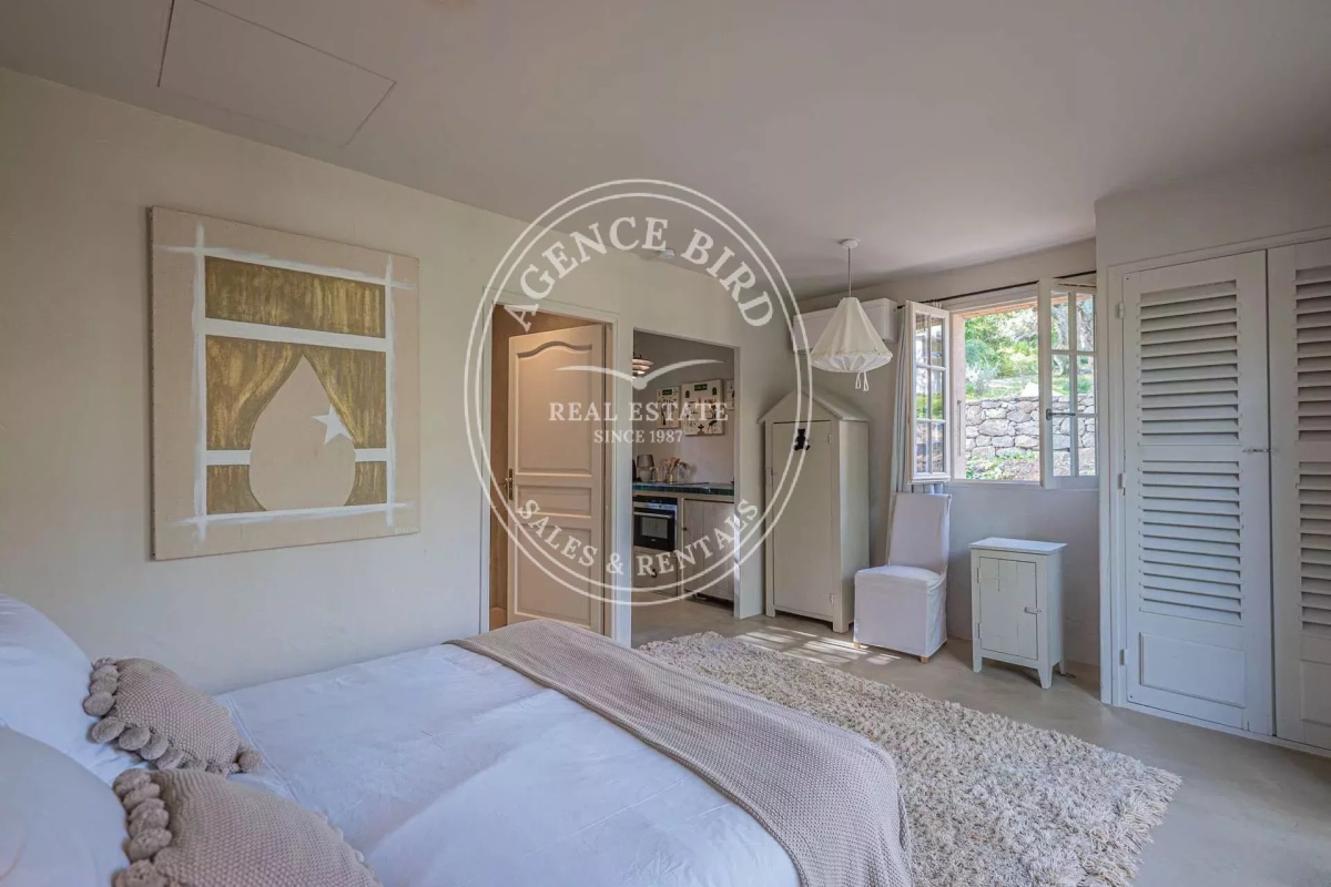 Très belle villa atypique située au Plan de La Tour sur la route de Grimaud, dans un endroit unique et boisé avec un jardin de plus de 12000 m². Elle se compose de trois Villas indépendantes entièrement climatisées. Vous serez charmé dès l'entrée, une première petite villa indépendante avec ses deux chambres double (180x200cm) à la décoration chaleureuse et douce dont une avec deux lits simples et leur salle de douche attenante. Vous y trouverez un coin cuisine. Un peu plus haut sur le chemin, une seconde villa de style bastide et sa belle terrasse d'été. A l'intérieur vous serez charmé par l'ambiance cosy du salon et son coin cheminée et télévision. Une grande cuisine entièrement équipée (double réfrigérateurs, plaque de cuisson, lave-vaisselle, machine à café Nespresso, grille pains, bouilloire) qui vous propose un lieu de détente, de partage de souvenirs d'été. Trois chambres doubles et 2 salles d'eaux aux couleurs exotiques. En direction de la piscine, vous y trouverez une troisième Villa indépendante avec sa chambre double en mezzanine (180x190cm) un coin salon détente à la décoration chaleureuse. Le coin piscine chauffée de style balinais est un havre de paix dans un coin calme et boisé avec une vue panoramique sur les collines. Vous pourrez y faire du sport, du Pilate ou du yoga avec une belle vue dégagée. Une cuisine d'été (plancha, réfrigérateur) un salon d'été à l'ombre des chênes propice à la détente et aux soirées de partage. Vous y trouverez une buanderie séparée avec son coin lave-linge et sèche linge. A l'extérieur, profitez du coin boulodrome au calme. Des coins de repos et de détente pour la lecture et la sieste. À régler sur place : dépôt de garantie et taxe de séjour N° D'ENREGISTEMENT : 83094 000316 YR