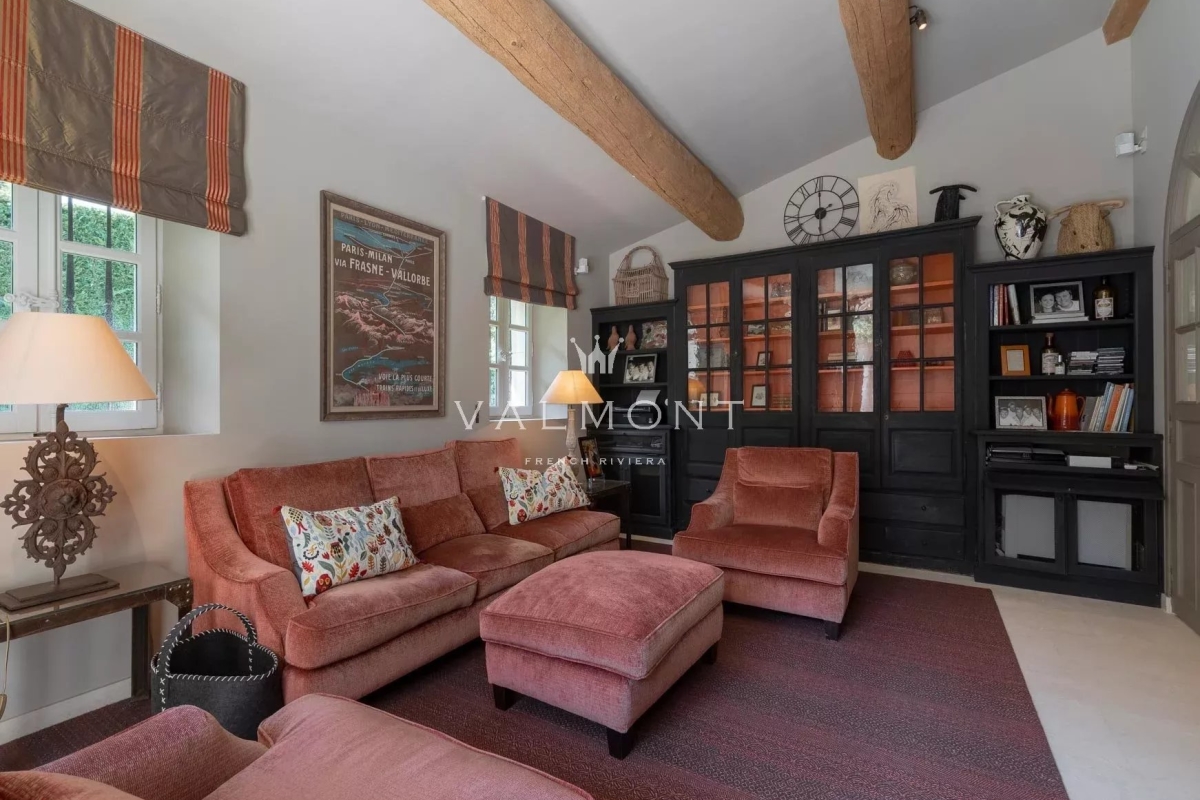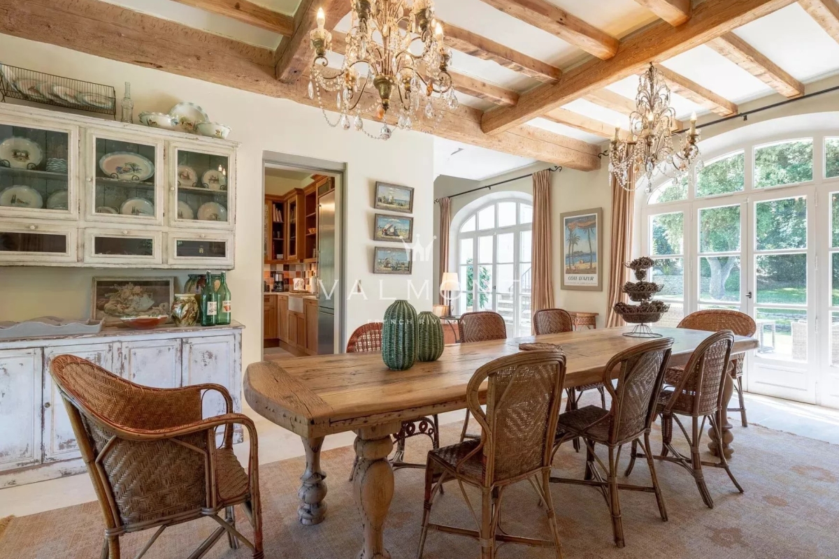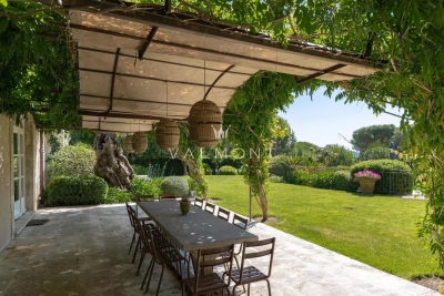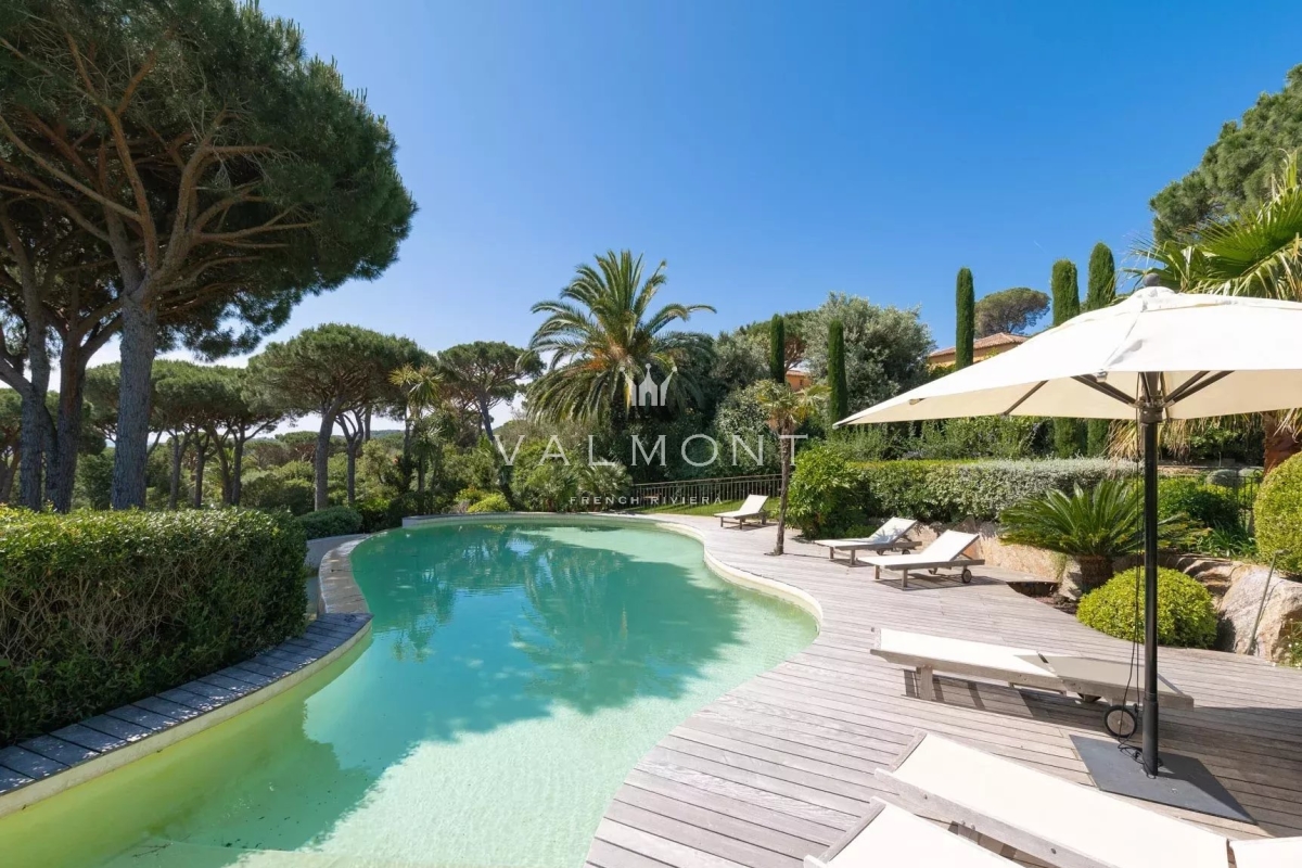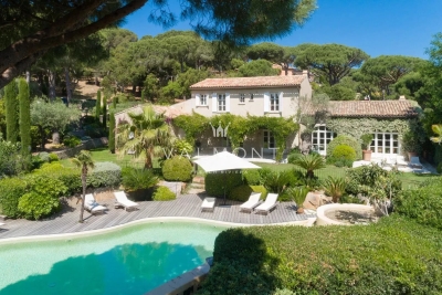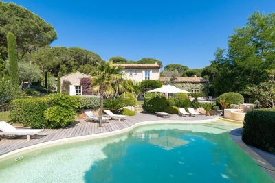 RAMATUELLE: Magnifique propriété néo-provençale, située au sein d'un complexe hôtelier cinq étoiles, à seulement quelques minutes de voitures de la fameuse plage de Pampelonne. Reposant sur un terrain verdoyant d'un hectare, la villa a tous les atouts pour séduire les clients les plus exigeants. Les 400 m² habitables sont repartis entre les deux étages et la villa est composée comme suit : REZ DE JARDIN : Entrée menant au salon, salle de télévision séparée, salle à manger, salon avec la cheminée et la cuisine équipée donnant sur la terrasse, la piscine et le jardin. NIVEAU SUPÉRIEUR : 4 chambres avec leurs salles de bains bénéficiantes d'une belle vue sur la mer, bureau, toilettes d'invités. Studio indépendant avec sa chambre et sa salle de bains. Splendide jardin paysagé. Piscine à débordement entourée d'une belle plage en teck. Plusieurs places de parking. Système de sécurité sophistiquée. Possibilité de bénéficier des prestations de l'hôtel avoisinant. Wifi, portail électrique. Les informations sur les risques auxquels ce bien est exposé sont disponibles sur le site Géorisques : www.georisques.gouv.fr