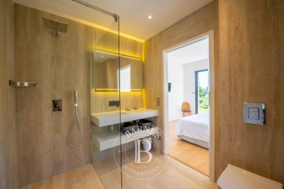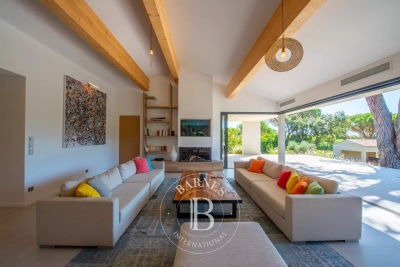 Située dans la campagne de Ramatuelle, cette villa contemporaine d'environ 250m² est au cœur des pins parasols et des vignes. Elle se compose d'un grand salon, d'une salle à manger, d'une cuisine américaine ouverte sur la terrasse, d'une chambre de Maître avec sa salle de bains et son dressing, de deux chambres doubles en suite ainsi que de deux chambres indépendantes avec chacune leur salle de douche. En extérieur, un jardin joliment arboré, de belles terrasses, un salon d'été, un pool house ainsi qu'un terrain de pétanque. Équipements : Climatisation, WIFI, alarme, places de parking. Services inclus : Ménage, linge de maison, linge de piscine et service de conciergerie BARNES personnalisé. « Les informations sur les risques auxquels ce bien est exposé sont disponibles sur le site Géorisques : www.georisques.gouv.fr » DPE en cours Bien situé dans une zone soumise à l'obligation de débroussaillement. Jessy PERROT - Agent commercial - EI - RSAC 833 330 913 Contact: +33652040169.