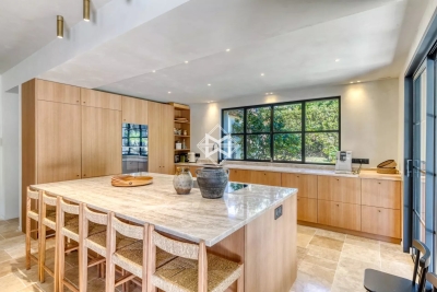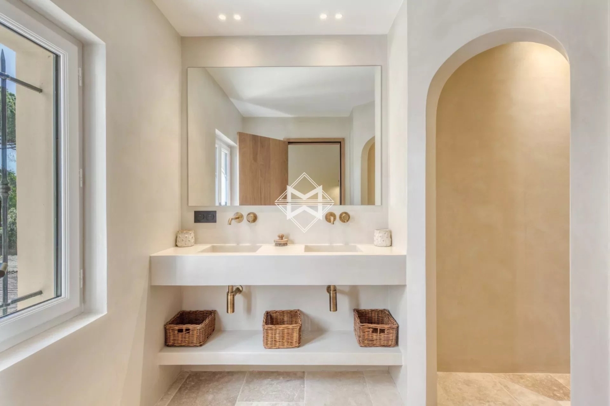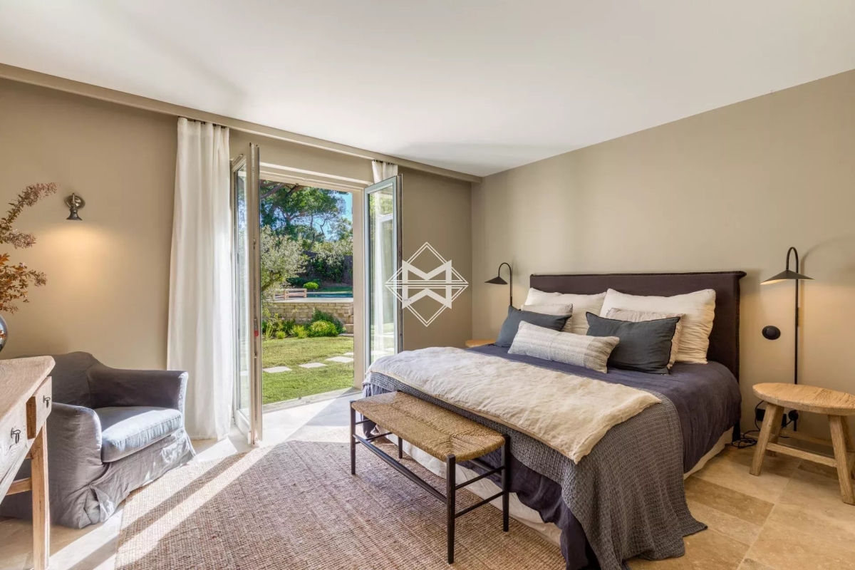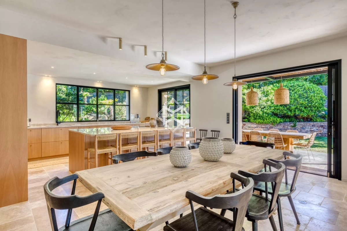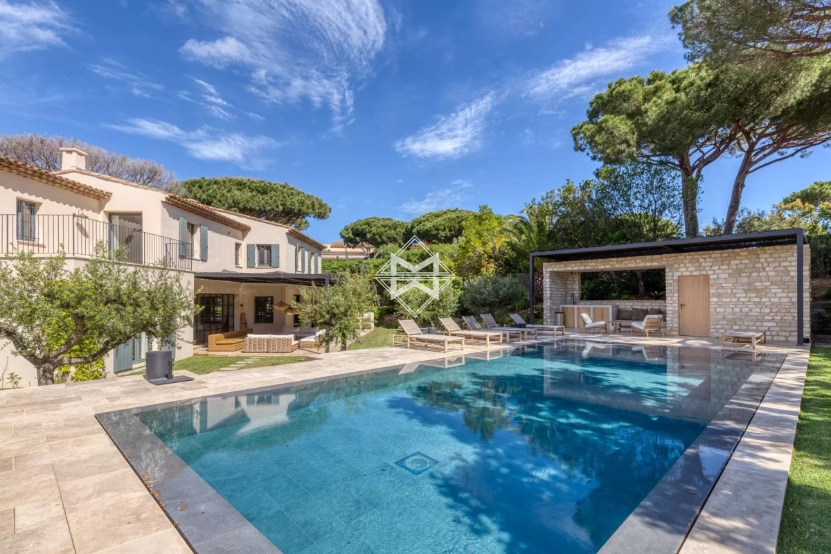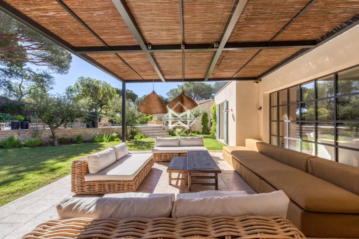 Située au cœur de la Pinède de Ramatuelle, cette magnifique villa contemporaine d'environs 500m2 offre un cadre de vie exceptionnel à quelques pas de la célèbre plage de Pampelonne. Dès l'entrée, vous serez séduit par la vaste pièce à vivre qui s'ouvre généreusement sur les extérieurs grâce à de larges baies vitrées. La cuisine équipée, intégrée à cet espace, invite à la préparation de délicieux repas tout en profitant de la vue sur le jardin. Avec ses 7 chambres en suite, elle accueille confortablement famille et amis dans un environnement à la fois élégant et serein. La grande piscine constitue le point central de la propriété. Entourée d'une vaste terrasse en bois, elle invite à la baignade rafraîchissante et aux moments de farniente au soleil. Le pool house adjacent offre un espace supplémentaire pour se détendre à l'ombre ou organiser des repas en plein air en toute tranquillité. Les multiples terrasses et balcons offrent des espaces de détente où il fait bon se relaxer à toute heure de la journée. En somme, cette villa contemporaine allie harmonieusement luxe, confort et nature, offrant à ses occupants une expérience de vie privilégiée à proximité immédiate de l'une des plus belles plages de la Méditerranée.