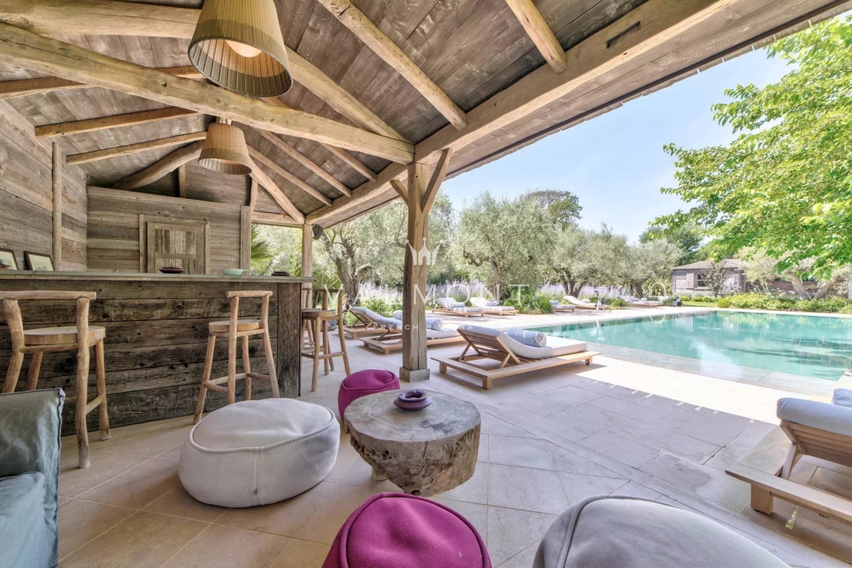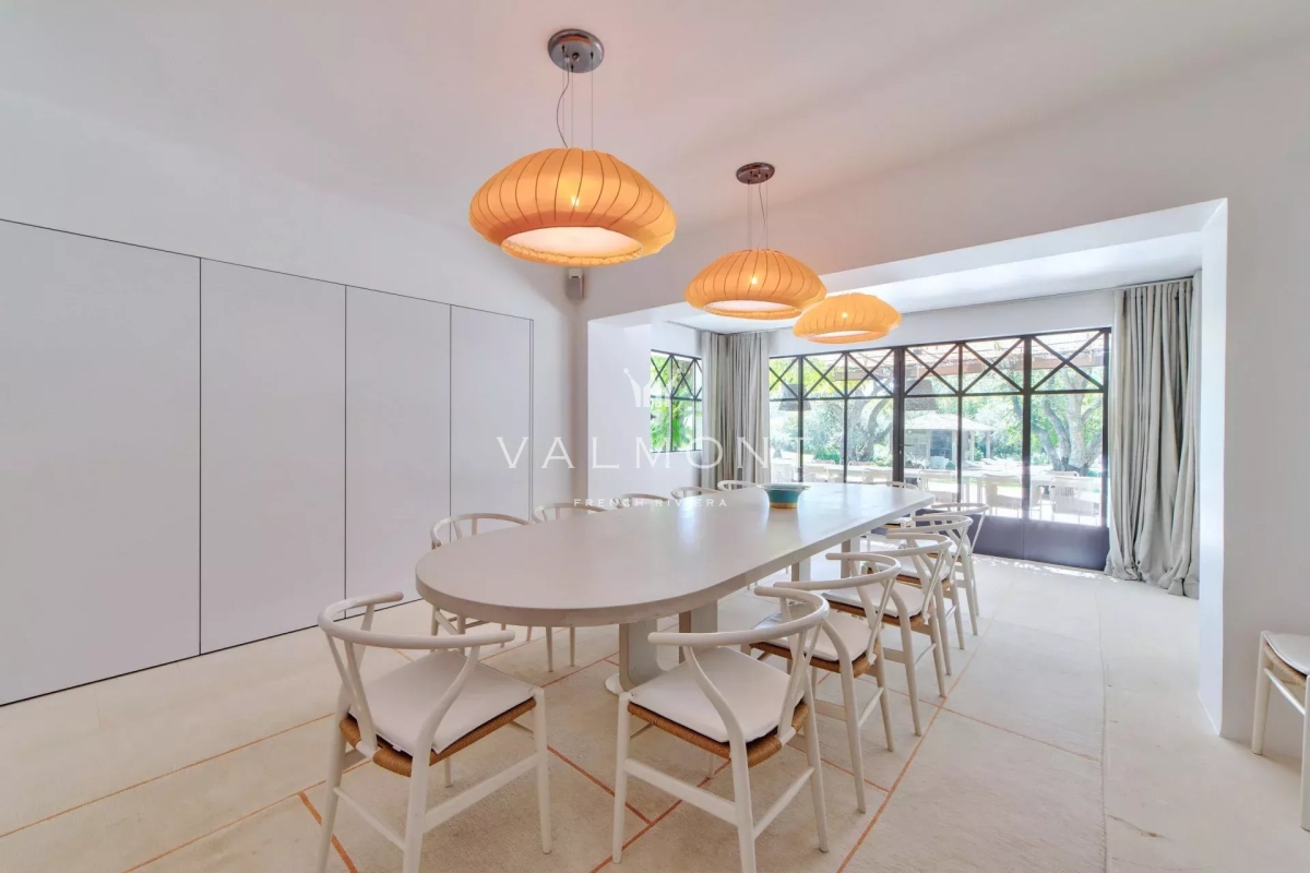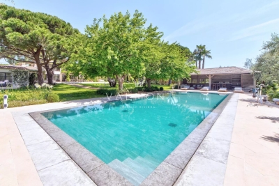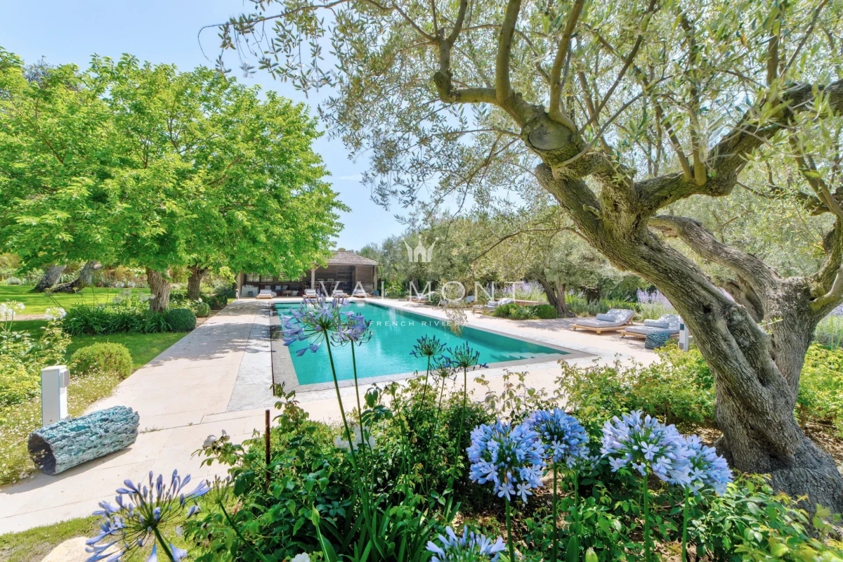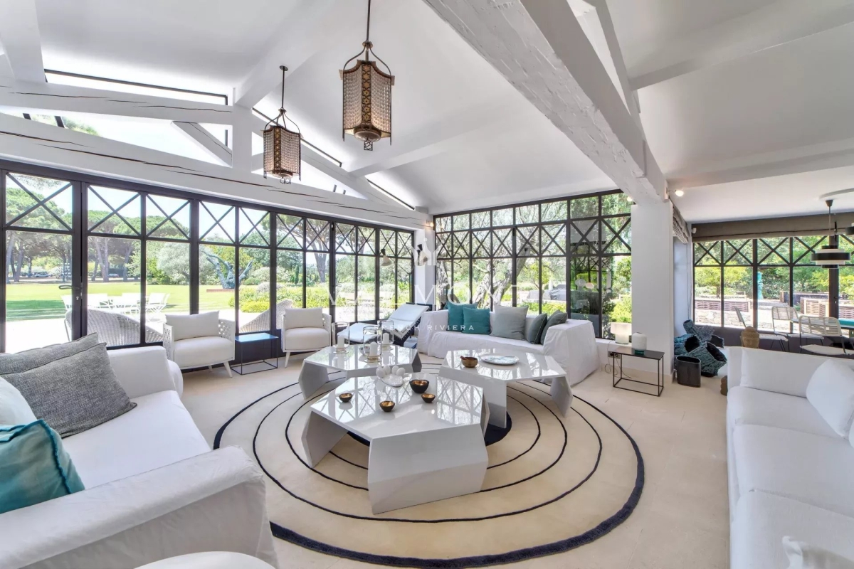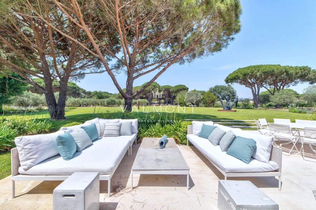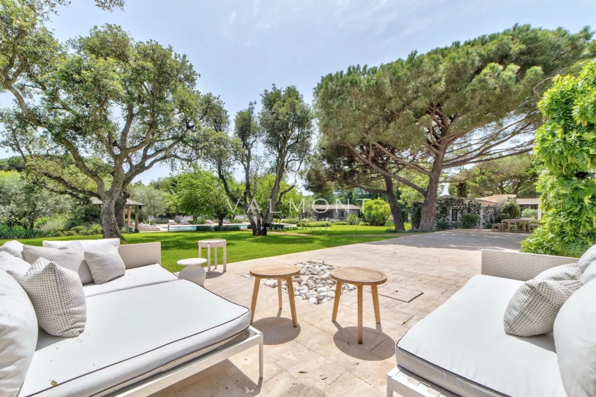 RAMATUELLE: Magnifique propriété édifiée sur un terrain plat arboré de 5 hectares, dans un secteur idyllique et très prisé de la presqu'île, à 100 mètres des plages de Pampelonne. D'une surface habitable de 900 m2 environ, cette somptueuse villa est composée de 10 chambres doubles avec chacune leur salle de bain, un dortoir de 6 lits pour enfants, plusieurs salons intérieurs, une grande salle à manger, une cuisine équipée de façon professionnelle, une salle de cinéma dernière technologie ainsi qu'une salle de sport et terrasse yoga. La villa profite également d'une très grande piscine miroir chauffée de 17mx6m et de nombreux espaces de relaxation, salons de jardin, pool house, billard extérieur. Dans le parc, la propriété dispose d'un héliport, 1 Ha de vignes produisant vin rosé, rouge et blanc, 250 oliviers pour une production maison d'huile d'olive Bio, un magnifique potager de 3 000 m2, un poulailler ainsi que d'un petit élevage de chèvres. 4 logements pour le personnel complète cette charmante propriété. Les informations sur les risques auxquels ce bien est exposé sont disponibles sur le site Géorisques : www.georisques.gouv.fr