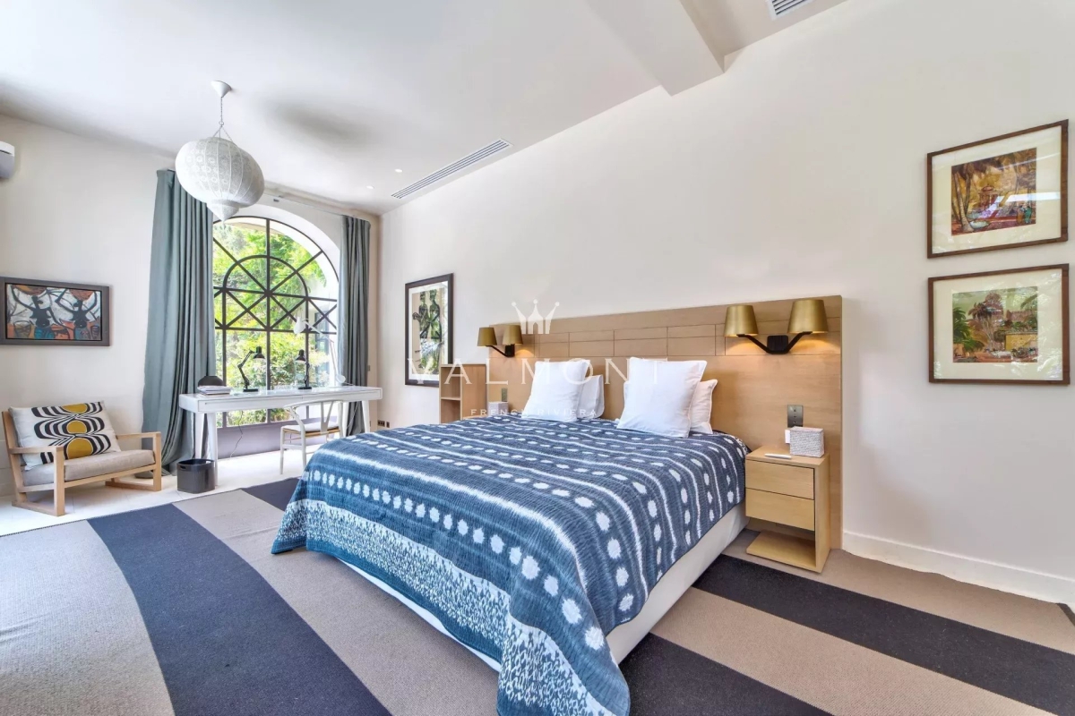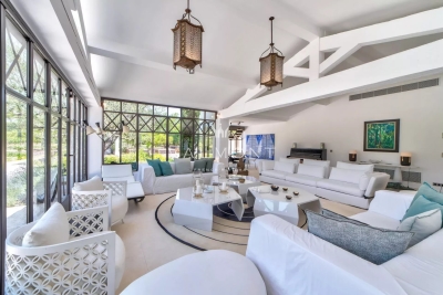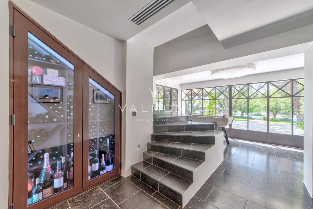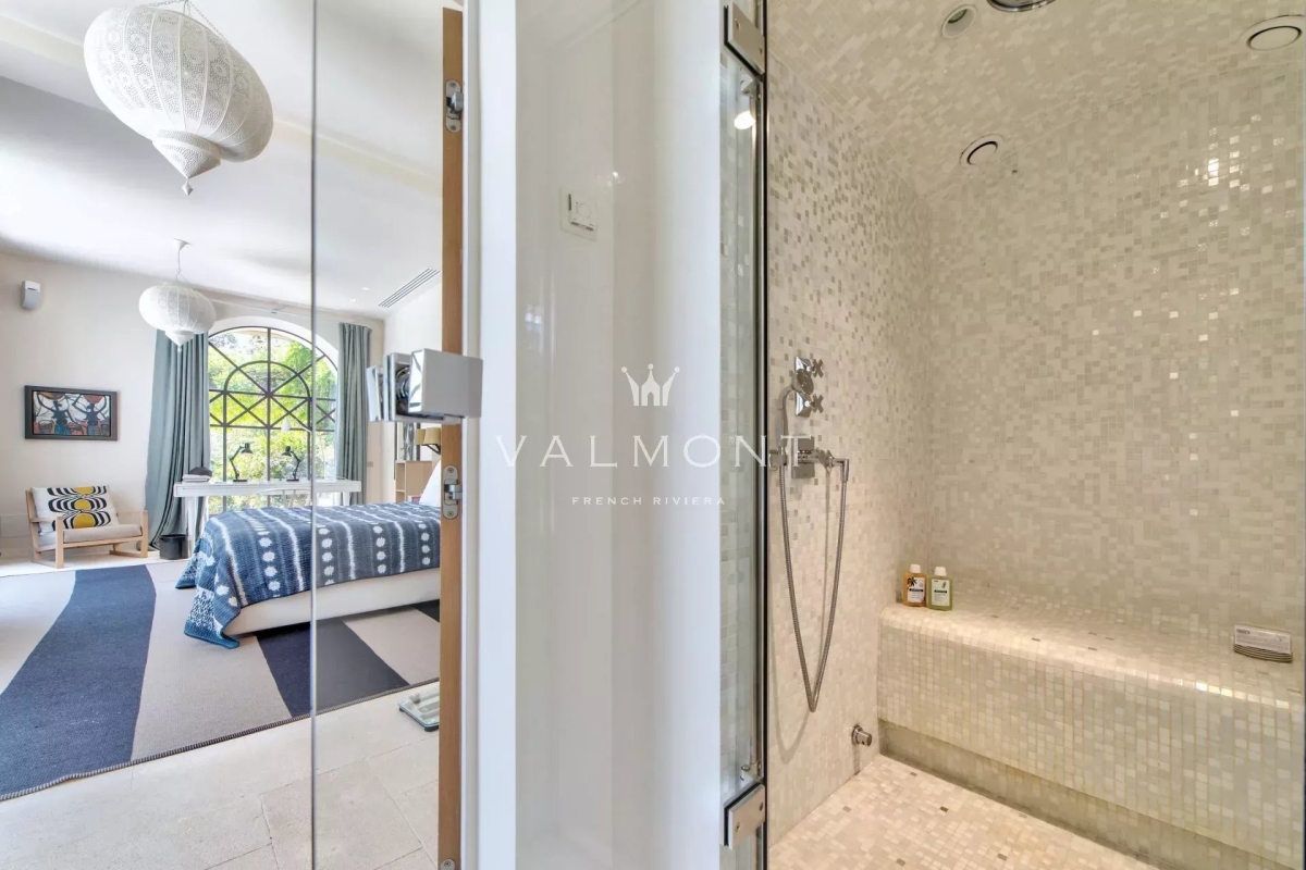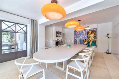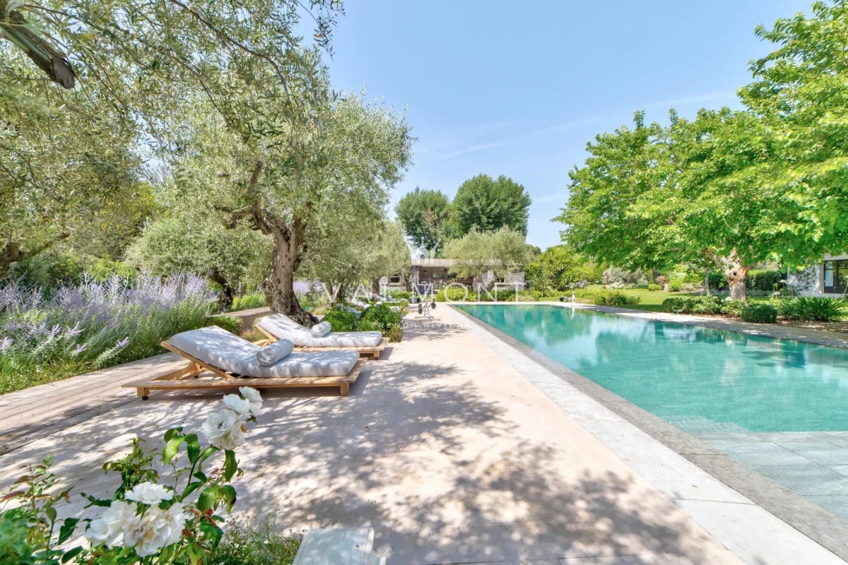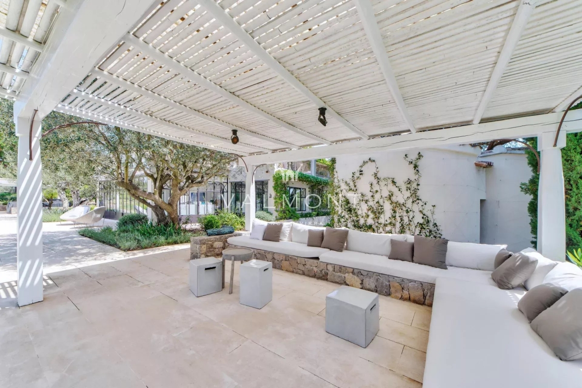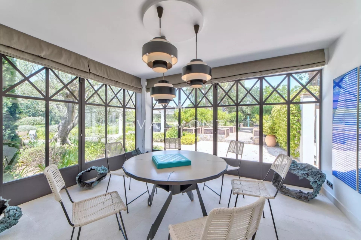 RAMATUELLE: Magnifique propriété édifiée sur un terrain plat arboré de 5 hectares, dans un secteur idyllique et très prisé de la presqu'île, à 100 mètres des plages de Pampelonne. D'une surface habitable de 900 m2 environ, cette somptueuse villa est composée de 10 chambres doubles avec chacune leur salle de bain, un dortoir de 6 lits pour enfants, plusieurs salons intérieurs, une grande salle à manger, une cuisine équipée de façon professionnelle, une salle de cinéma dernière technologie ainsi qu'une salle de sport et terrasse yoga. La villa profite également d'une très grande piscine miroir chauffée de 17mx6m et de nombreux espaces de relaxation, salons de jardin, pool house, billard extérieur. Dans le parc, la propriété dispose d'un héliport, 1 Ha de vignes produisant vin rosé, rouge et blanc, 250 oliviers pour une production maison d'huile d'olive Bio, un magnifique potager de 3 000 m2, un poulailler ainsi que d'un petit élevage de chèvres. 4 logements pour le personnel complète cette charmante propriété. Les informations sur les risques auxquels ce bien est exposé sont disponibles sur le site Géorisques : www.georisques.gouv.fr
