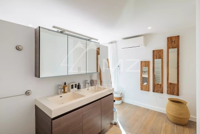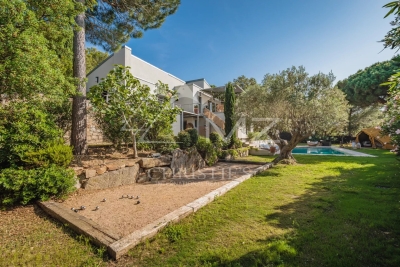 Cette très jolie villa récemment rénovée, située à cinq minutes à pied des plages de Pampelonne et du célèbre Club 55 offre un salon, une cuisine, une salle à manger, 4 chambres avec chacune leurs salles de bains, une grande piscine sur un jardin arboré. N° agrément : 83101 000625 0E
