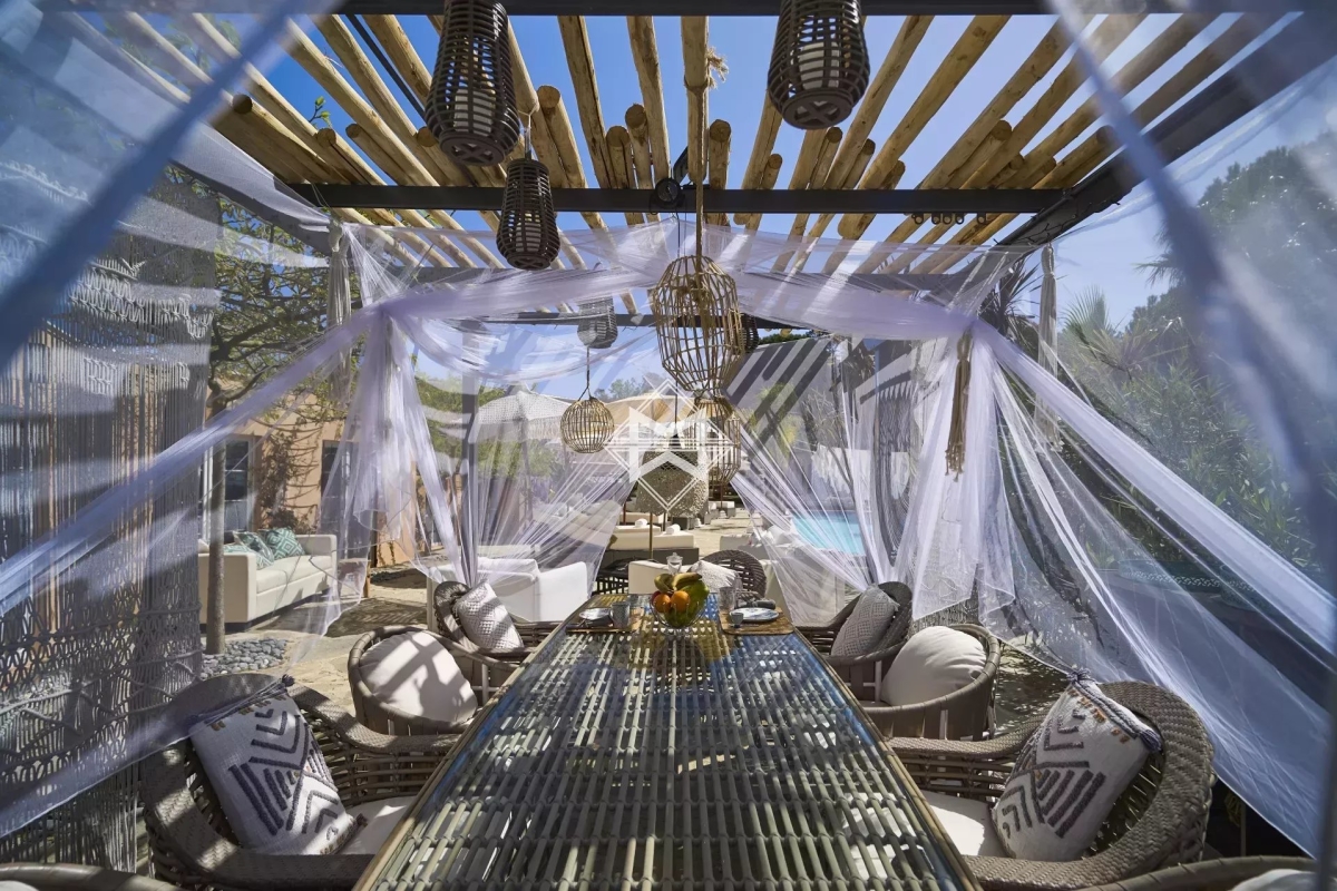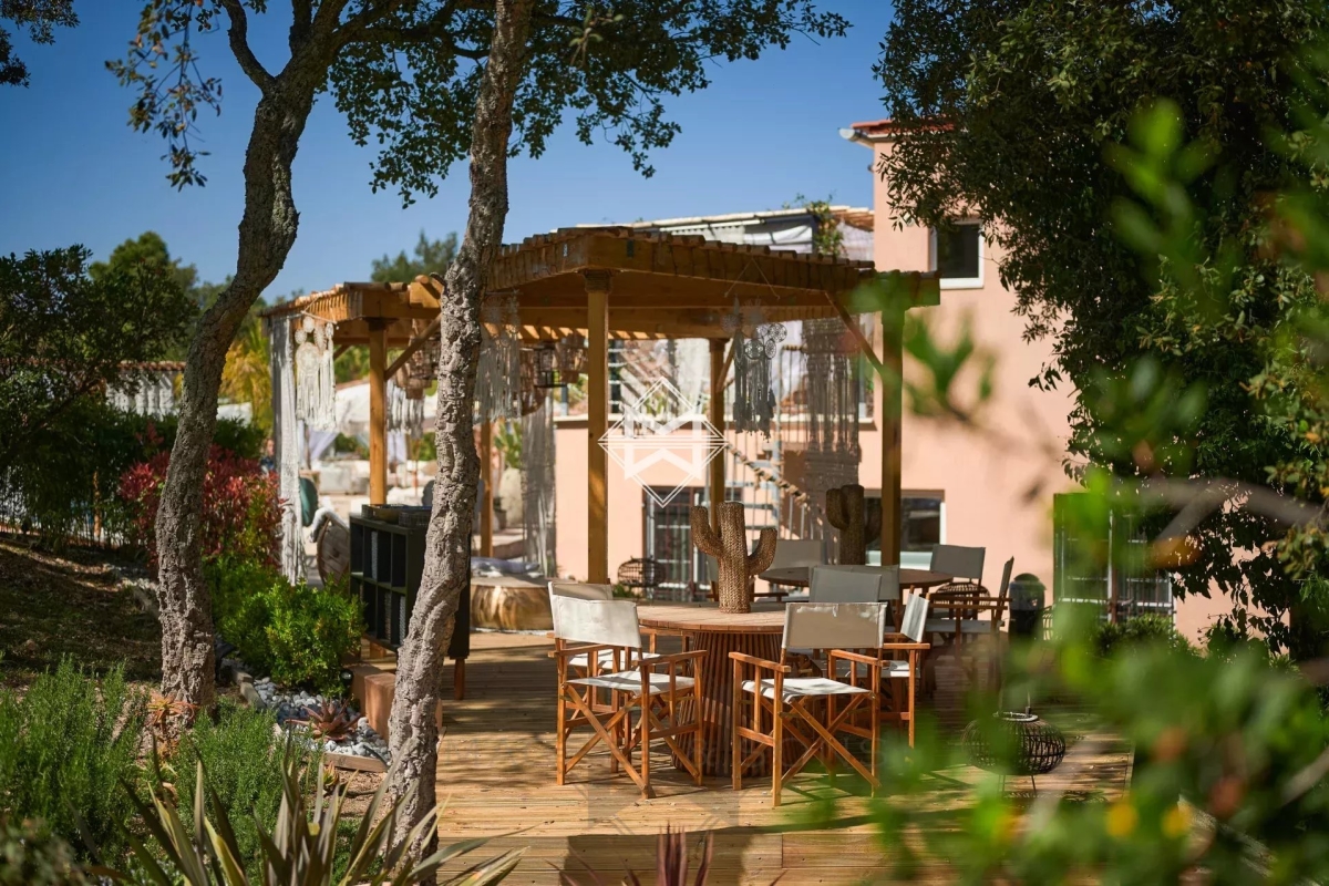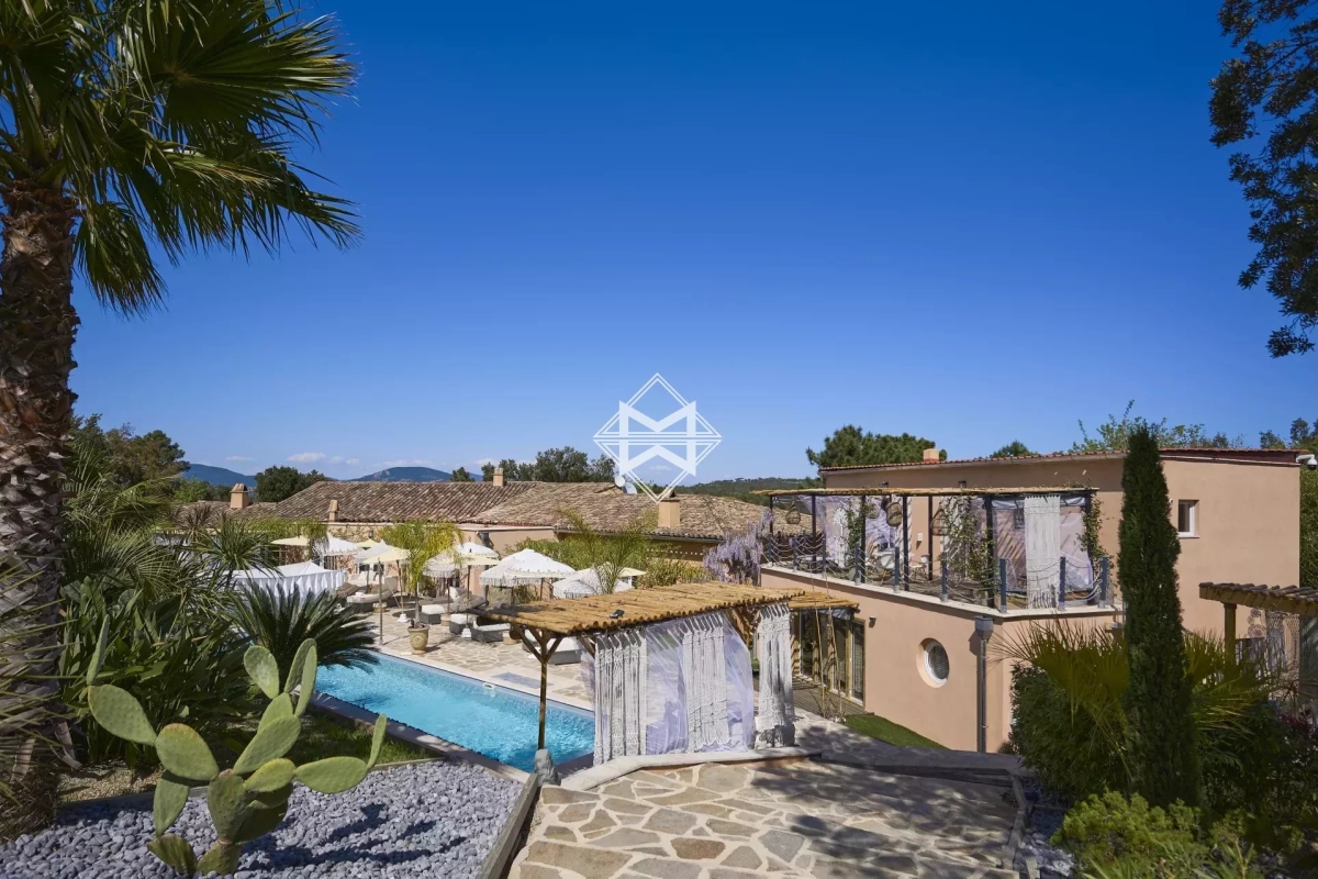 Magnifiquement édifiée sur un sublime terrain paysager de 23545 m2, une propriété d'exception qui saura sans aucun doute combler toutes vos attentes. Cette villa dispose d'un vaste salon décoré avec soin, d'un coin aux ambiances orientales, d'une cuisine totalement équipée ouvrant sur une terrasse parfaitement aménagée afin de profiter de l'espace extérieur et de la piscine. Elle dispose également de 4 suites, toutes accompagnées de leur salle de bain ou douche, ainsi que de 2 dépendances pour le personnel. Une autre villa accolée à cette dernière vient amener 3 suites supplémentaires ainsi qu'un véritable espace de vie avec une cuisine ouverte sur la piscine. Equipements : nombreux emplacements parking et abris voitures, piscine, wifi, salle disco, salle de massage, salle de sport, espace détente et sa piscine naturelle. 83065 000092 QR