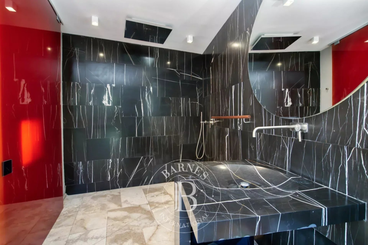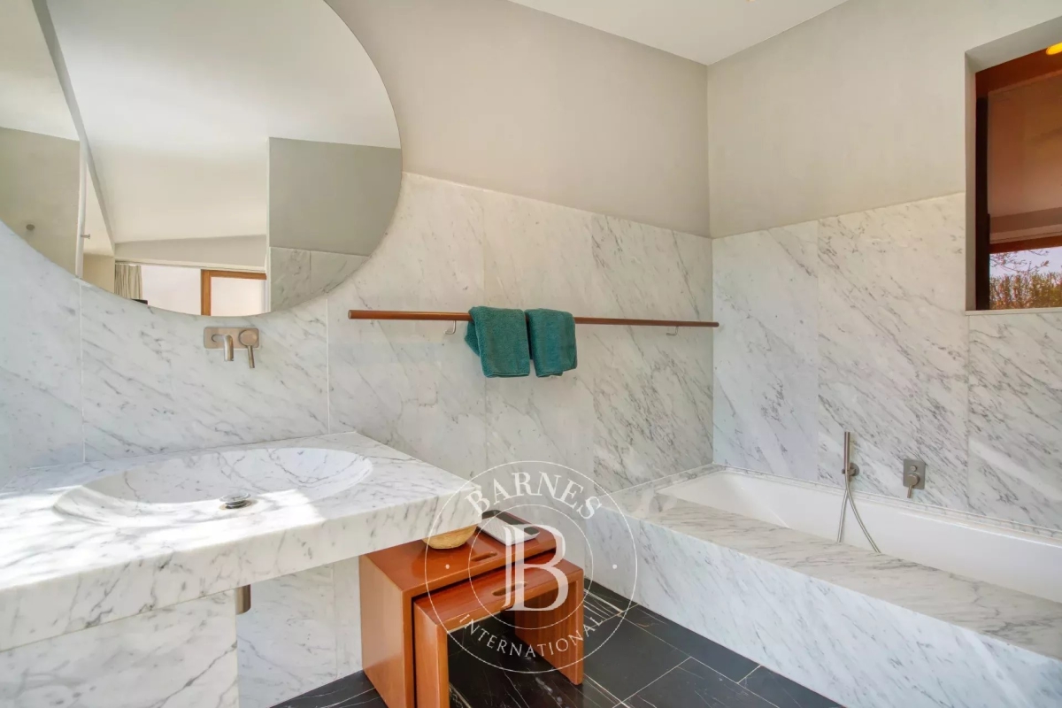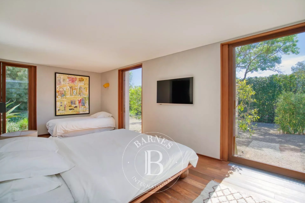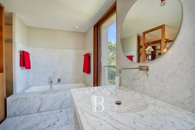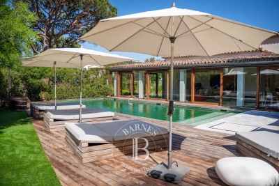 Située dans le quartier de Tahiti, cette villa d'environ 390m² offre une proximité directe avec la plage de Pampelonne. Elle se compose d'une belle pièce de vie et d'une cuisine équipée ouverte sur de belles terrasses et sur la piscine ainsi que quatre chambres en suite et une chambre de Maître. En extérieur, un jardin joliment arboré, de beaux espaces détente ainsi qu'une belle piscine émeraude. Équipements : Climatisation, WIFI, places de parking. Services inclus : Ménage, linge de maison, linge de piscine et service de conciergerie BARNES personnalisé. Numéro de loueur meublé : 83101 000114 FI « Les informations sur les risques auxquels ce bien est exposé sont disponibles sur le site Géorisques : www.georisques.gouv.fr » DPE en cours Bien situé dans une zone soumise à l'obligation de débroussaillement. Jessy PERROT - Agent commercial - EI - RSAC 833 330 913 Contact: +33652040169.