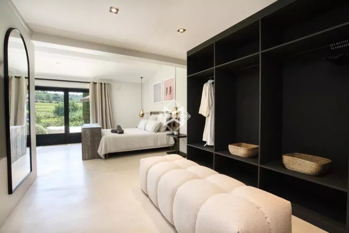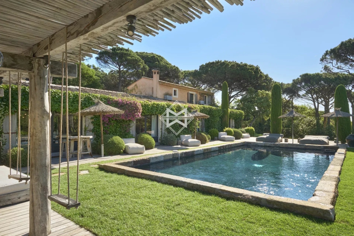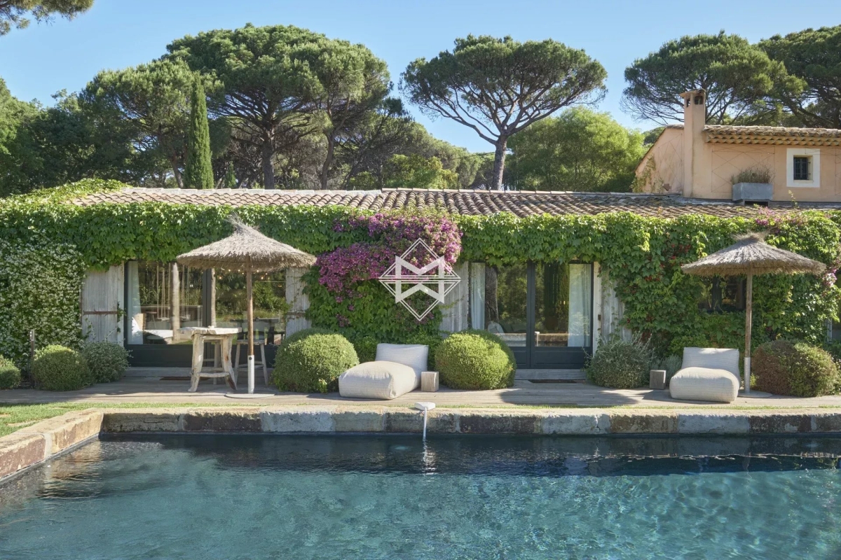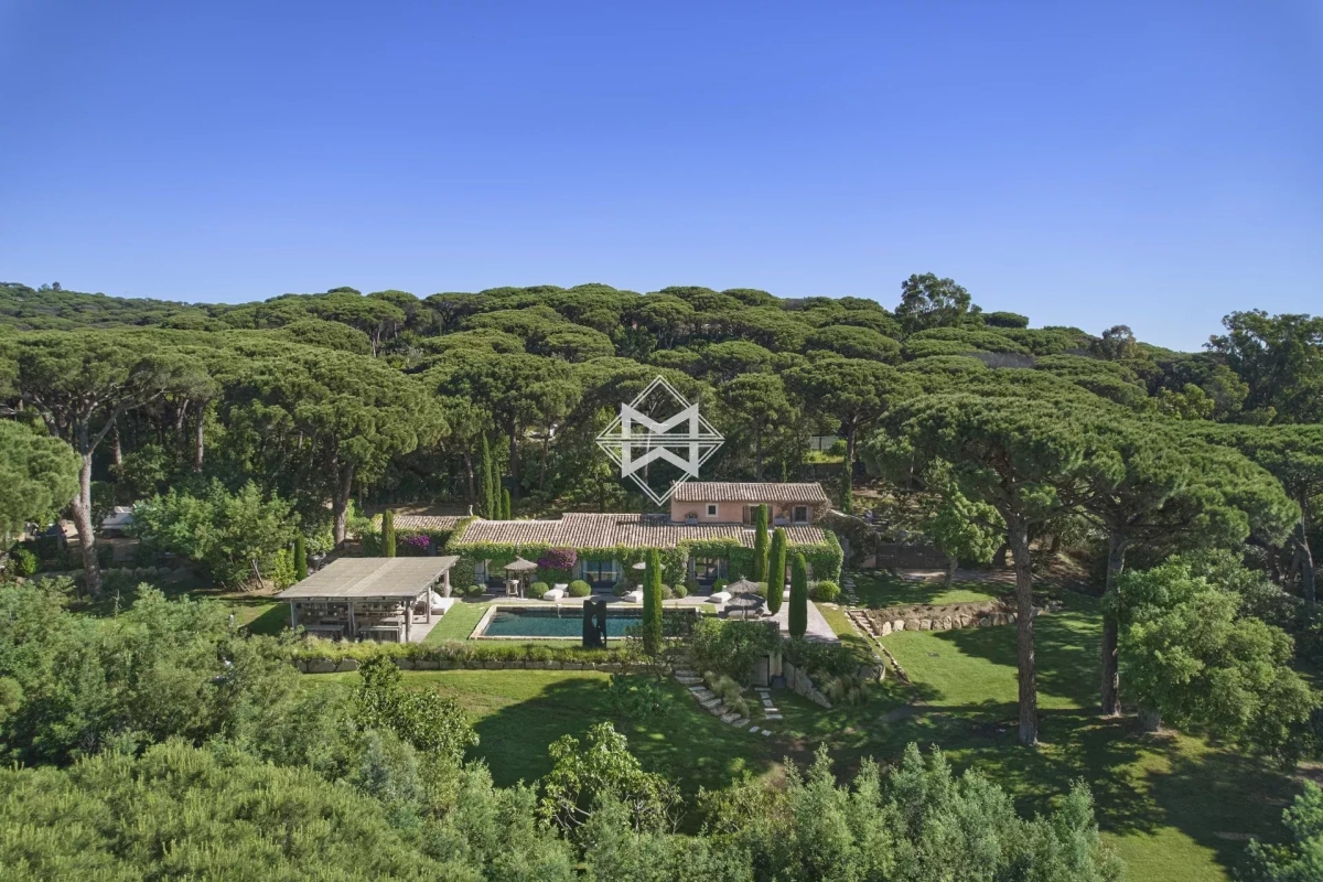 Située à quelques kilomètres seulement des festivités des Plages de Pampelonne et du centre ville de Saint Tropez, une charmante villa provençale d'environs 350 m2 implantée sur un terrain d'environs 5 200m2 au coeur d'une pinède offrant un calme absolu. La villa comprend un spacieux salon/séjour doté d'une cuisine entièrement équipée. Chacun de ces espaces s'ouvre sur les magnifiques aménagements extérieurs, offrant ainsi une continuité harmonieuse entre l'intérieur et l'extérieur. Elle offre également 6 chambres en suite, réparties entre la villa principale (5) et une charmante petite maison totalement indépendante, offrant ainsi une chambre en suite supplémentaire. Cette propriété représente un véritable refuge de sérénité, bénéficiant d'une position privilégiée face aux vignobles de Ramatuelle. Elle est agrémentée d'une piscine en pierre, d'un terrain de pétanque, d'une salle de sport en plein air, et de nombreux espaces aménagés pour se détendre en toute quiétude. 83101 000584 7V