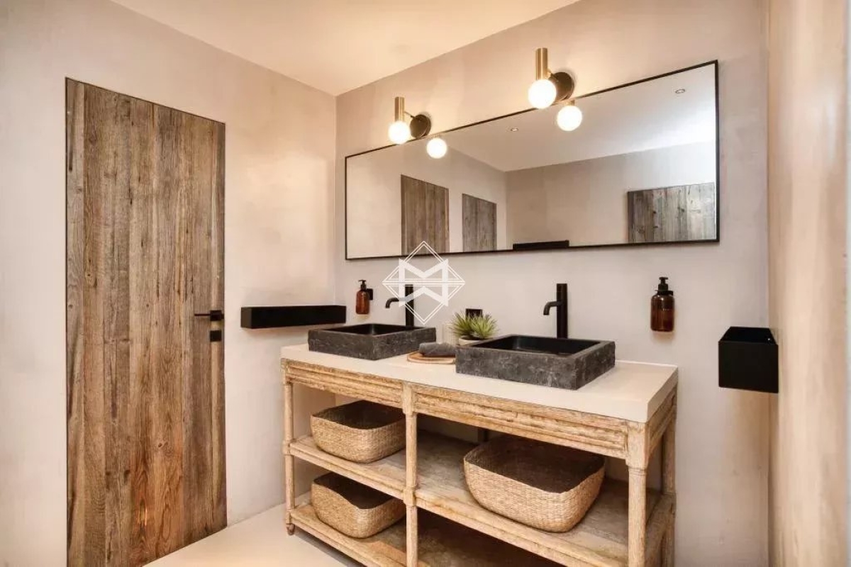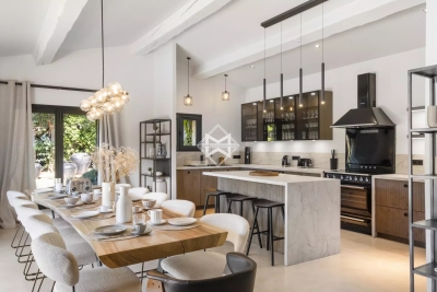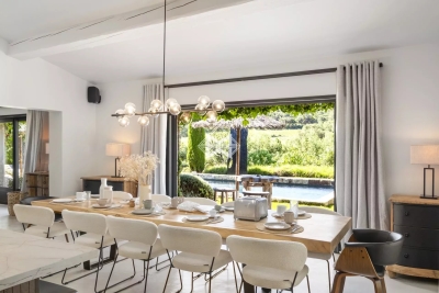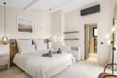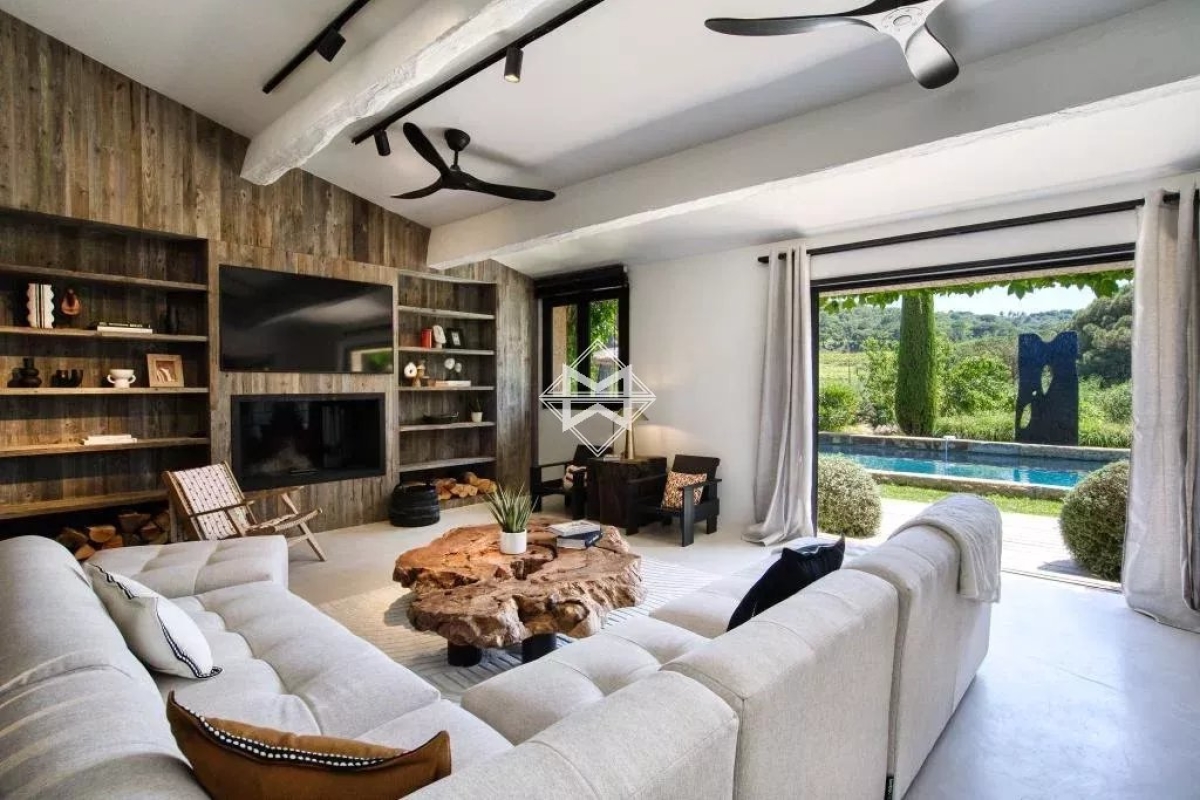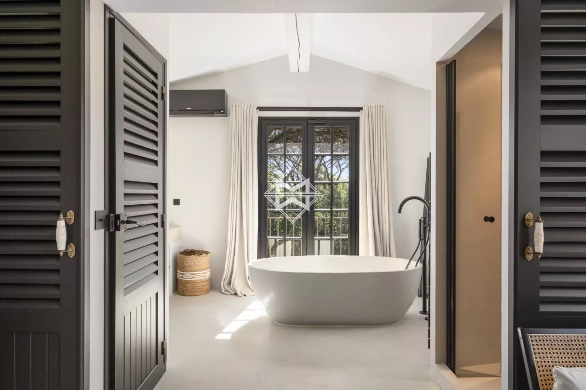 Située à quelques kilomètres seulement des festivités des Plages de Pampelonne et du centre ville de Saint Tropez, une charmante villa provençale d'environs 350 m2 implantée sur un terrain d'environs 5 200m2 au coeur d'une pinède offrant un calme absolu. La villa comprend un spacieux salon/séjour doté d'une cuisine entièrement équipée. Chacun de ces espaces s'ouvre sur les magnifiques aménagements extérieurs, offrant ainsi une continuité harmonieuse entre l'intérieur et l'extérieur. Elle offre également 6 chambres en suite, réparties entre la villa principale (5) et une charmante petite maison totalement indépendante, offrant ainsi une chambre en suite supplémentaire. Cette propriété représente un véritable refuge de sérénité, bénéficiant d'une position privilégiée face aux vignobles de Ramatuelle. Elle est agrémentée d'une piscine en pierre, d'un terrain de pétanque, d'une salle de sport en plein air, et de nombreux espaces aménagés pour se détendre en toute quiétude. 83101 000584 7V