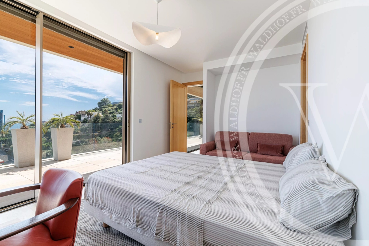 Cette villa contemporaine exceptionnelle de 320 m², nichée dans les collines prestigieuses de Roquebrune-Cap-Martin, offre un luxe méditerranéen. Perchée au-dessus du littoral et située sur un domaine privé de 2 600 m², cette élégante retraite offre des vues panoramiques sur la mer et un accès facile à Monaco, à seulement 5 minutes en voiture. Conçue par un architecte de renom, la villa présente des lignes modernes et épurées, des vitres allant du sol au plafond et des finitions haut de gamme, notamment un chauffage au sol en marbre, un ascenseur privé desservant chaque étage pour une commodité optimale et un système de sécurité ultramoderne. À l'intérieur, l'agencement ouvert passe en toute transparence d'un espace de vie baigné de soleil à une cuisine gastronomique de designer et à quatre chambres luxueuses avec salle de bains - chacune avec de nombreux rangements et des vues sereines. Vous pourrez ainsi profiter du soleil de la Riviera en toute intimité. Les fenêtres à triple vitrage, insonorisées et renforcées pour la sécurité garantissent la paix et la tranquillité, tandis que les volets électriques avec alarmes intégrées offrent un niveau supplémentaire de confort et de sécurité. Avec un garage spacieux pour trois voitures et un grand parking pour les invités, cette villa est le point de départ idéal pour une escapade estivale inoubliable sur la Côte d'Azur. Contact: +33632978526.