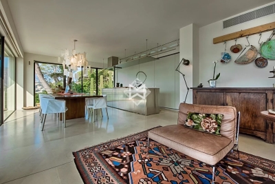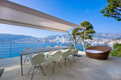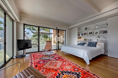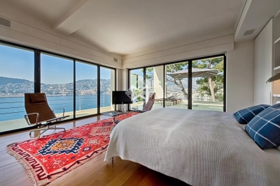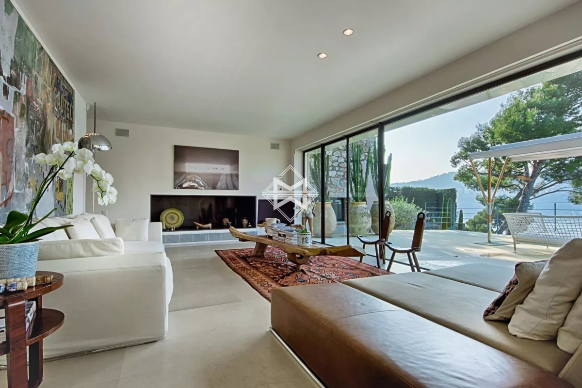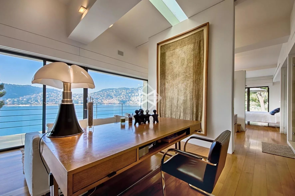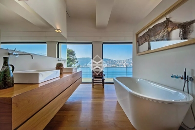 Dans un environnement calme, sur le versant ouest du Cap, superbe maison contemporaine avec prestations haut de gamme profitant d'une vue mer exceptionnelle. Elle comprend au rez-de-chaussée : hall d'entrée, toilettes invités, salon salle à manger, cuisine équipée moderne ouvrant sur une terrasse. Rez-de-jardin : salon donnant sur la piscine, 4 chambres, chacune avec salle de douche ou salle de bain. Lingerie, bureau. À l'étage : chambre de maîtres avec salle de bains complète, dressing et bureau donnant sur une terrasse avec vue mer. Climatisation, alarme, home cinéma, wifi, piscine chauffée à débordement, parking pour 3-4 voitures.