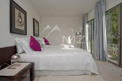 Récente villa contemporaine d'environ 190 m² habitables, au coeur du Cap Ferrat avec vue mer depuis chaque pièce et bénéficiant d'une exposition Sud-Est. Située dans un quartier calme et résidentiel, elle est décorée avec goût, de façon harmonieuse et lumineuse. Terrain de 2 200 m². Séjour avec cheminée et vue mer grâce à des baies vitrées et ouvrant sur une grande terrasse ombragée, spacieuse salle à manger, cuisine ouvrant sur une terrasse, 2 chambres avec lits doubles et salles de bains en suite, 2 chambres chaqune avec 2 lit 1 place et salles de bains en suite. Toutes les chambres sont climatisée. Studio indépendant avec une chambre. N° de télédéclarant : 06121039529WF