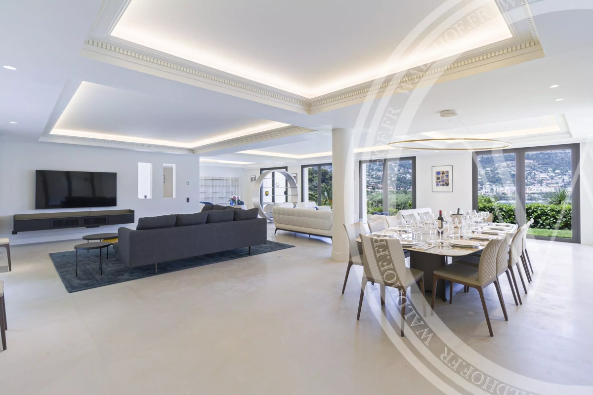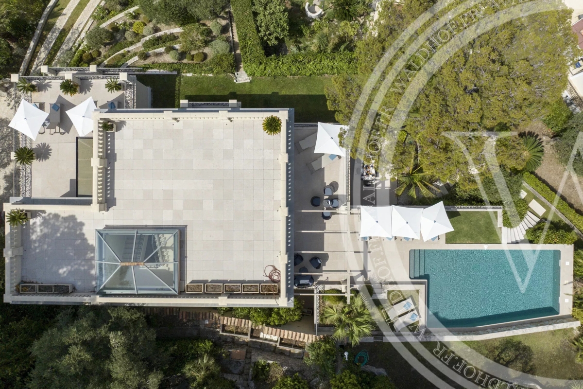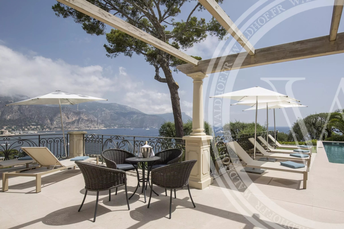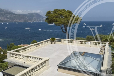 Dans une rue privée de Saint-Jean-Cap-Ferrat, cette villa contemporaine entièrement rénovée de 600 m² habitables s'impose comme une référence en matière de luxe, d'élégance et de confort. La frontière de Monaco est accessible en 21 minutes de route (calcul à minuit, sans circulation). Sur trois niveaux desservis par un ascenseur, la villa principale de 500 m² propose de vastes volumes baignés de lumière : grande salle de réception, salle à manger, cuisine séparée entièrement équipée, suite parentale, cinq chambres d'amis avec salles de bains attenantes, salle de sport et toit-terrasse avec vue panoramique. Les extérieurs, répartis sur un terrain de 3 000 m², abritent un jardin paysager raffiné et une piscine chauffée, idéale pour des moments de détente absolue à quelques pas de la plage (3 min à pied). Un garage de 220 m² permet d'accueillir plusieurs véhicules en toute sécurité. Un logement indépendant pour le personnel complète cette propriété rare. Prestations : domotique, climatisation, sécurité, volumes majestueux, calme total et proximité immédiate du village et de la marina. Une villa d'exception pensée pour une clientèle exigeante en quête de sérénité et de prestige en bord de mer. Contact: +33493170374.
