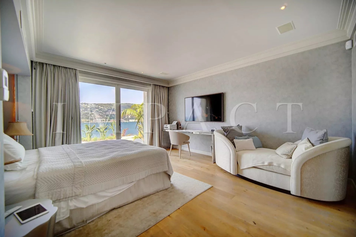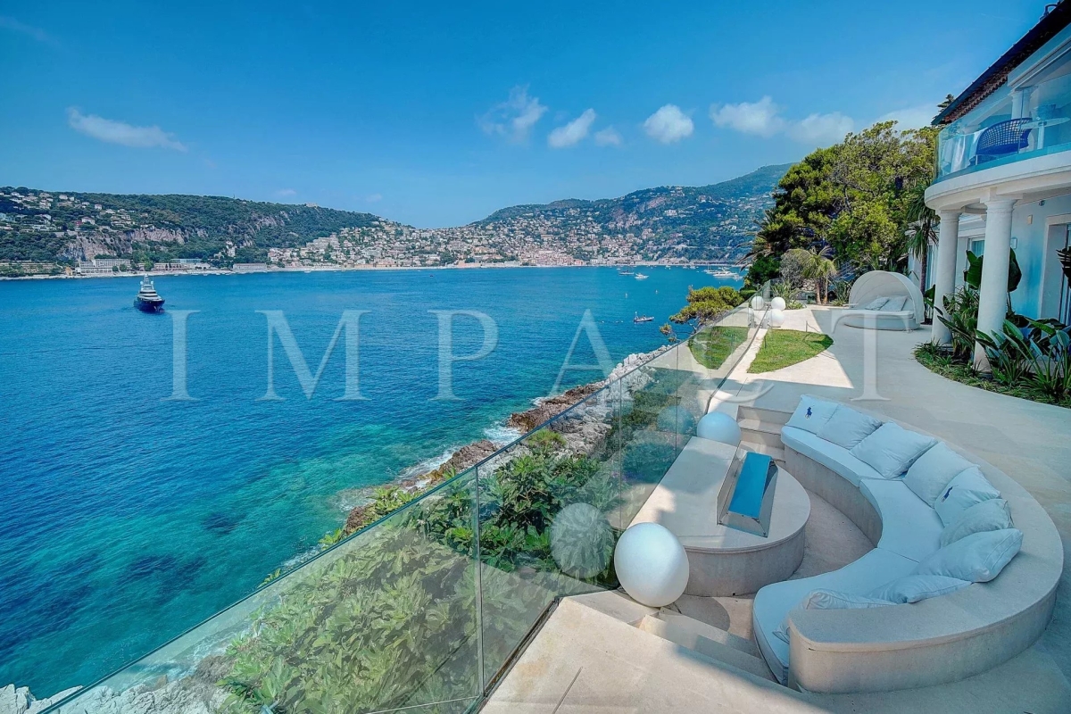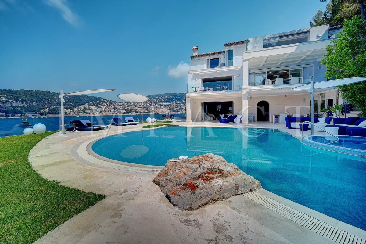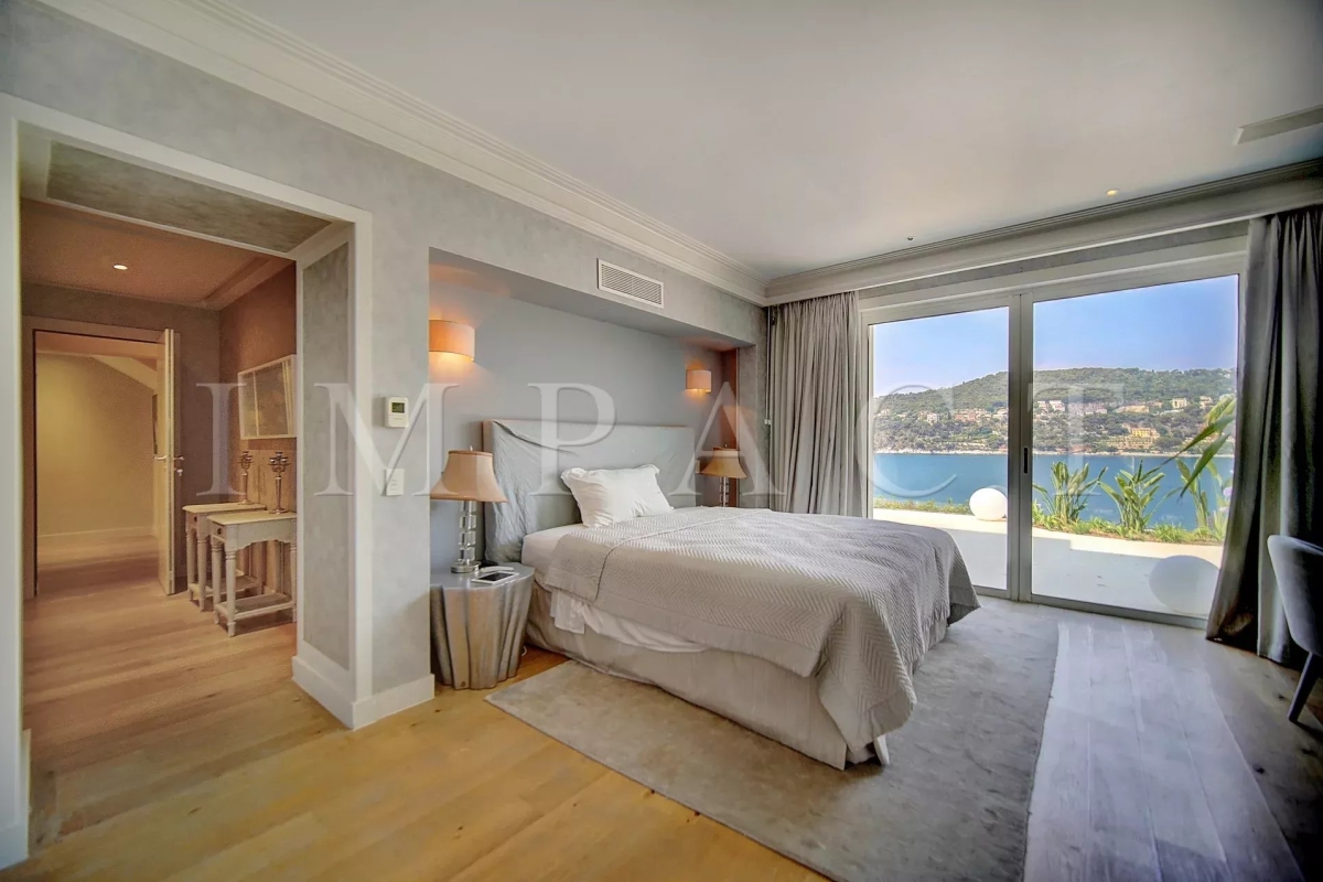 Magnifique Villa front de mer avec un accès direct à la mer et piscine chauffée, jardin japonais avec vue panoramique sur la baie de St Jean Cap Ferrat et Villefranche. Description : Entrée avec pièce d'eau et colonnes. Hall d'entrée avec un piano à queue. Salle à manger avec vue panoramique sur la mer et portes fenêtres donnant accès à la terrasse couverte. Cuisine professionnelle et salle de petit déjeuner: table à manger pour 8 personnes, double four, plaque de cuisson à gaz, micro-ondes, four à vapeur, frigo américain, machine à café Nespresso intégrée professionnel. Salon Ornée de boiseries bibliothèque / bureau avec télévision à écran plat. Chambre 1: lit simple (90cm) Salle de bains. Chambre 2: lit double (2m) avec vue sur mer panoramique de la télévision avec satellite &Plasma. Dressing. Salle de bains avec douche jacuzzi, toilette. Accès direct à la terrasse ensoleillée. Chambre 3 - lit double (160 cm) salle de bains commune avec la chambre 2. Séparez par un dressing. Chambre 4 - (personnel ou les enfants) avec accès indépendant, lit double (140cm) et une petite kitchenette. Salle de douche attenante avec toilette et lavabo. Buanderie - machines à laver et sèche-linge. Premier étage: Chambre à coucher principale 5 - lit double (180cm) avec terrasse privée vue magnifique sur la mer. Dressing, salle de bains avec baignoire, et toilette. Chambre 6: lit double (180cm) petite terrasse avec vue sur la baie. Chambre 7: deux lits jumeaux (2 x 90cm), salle de douche avec toilette. Chambre 8: deux lits jumeaux (2 x 90cm) salle de bains avec baignoire et toilette. Double salon avec accès direct aux terrasses spacieuses, jardin et la piscine. Salle de massage conduisant à la Salle de bains Hammam avec douche. Petite cuisine d'été avec monte-charge reliant la cuisine principale. Bar d'été avec barbecue. Chaises longue, un coin salon avec Home cinéma. Information additionnelle : Parking pour 6 voitures. Chambre pour le personnel à proximité de la piscine avec des lits jumeaux (2 x 80cm) et salle de douche. Accès direct à la mer. Situé sur la côté ouest de St Jean Cap Ferrat très proche de Paloma plage privée. Monaco peut être atteint en 15 minutes et l'aéroport de Nice est à 20 minutes en voiture. Equipée pour: 16 personnes Contact: +33778826164.