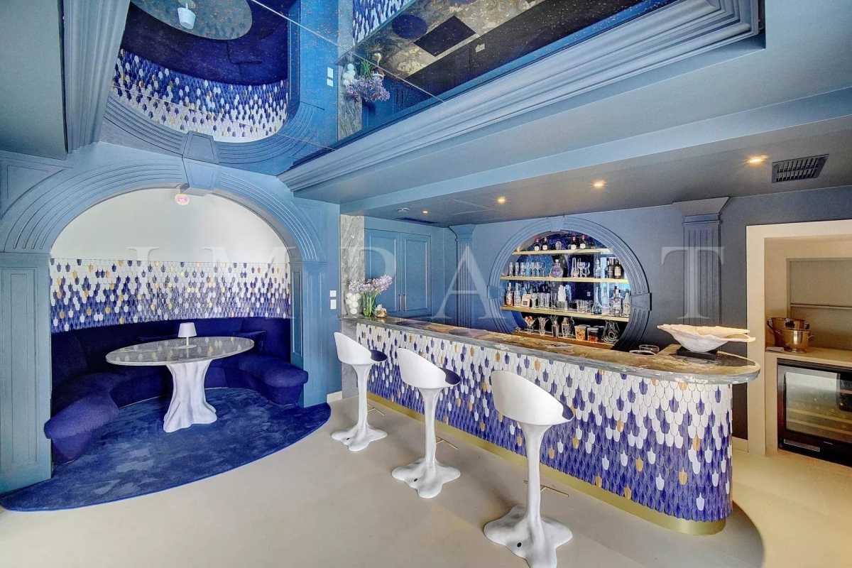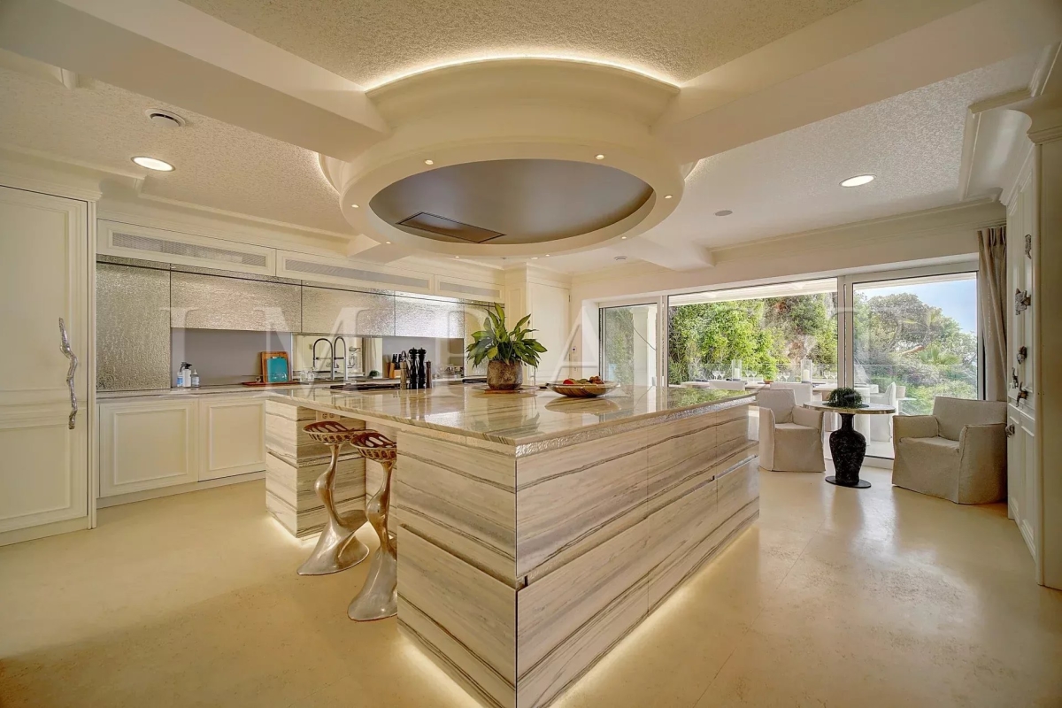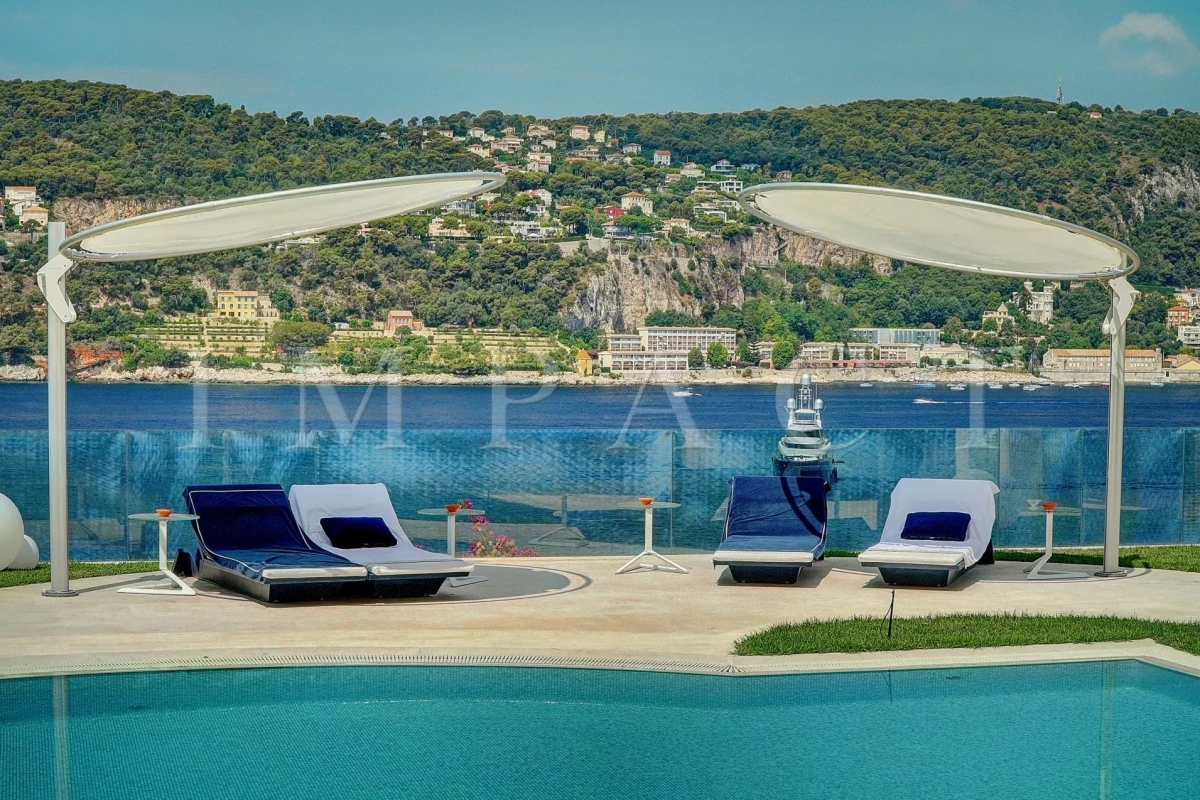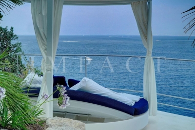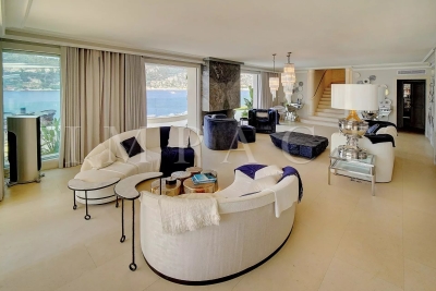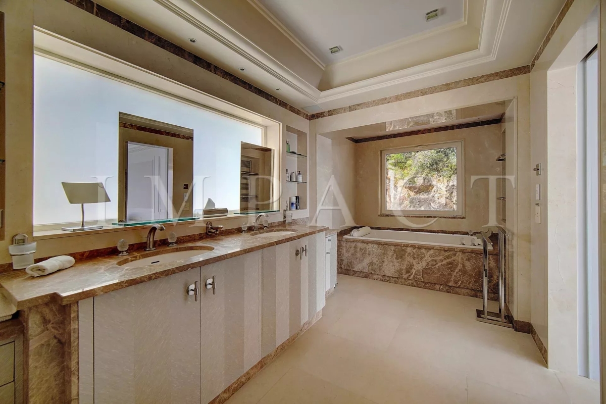 Magnifique Villa front de mer avec un accès direct à la mer et piscine chauffée, jardin japonais avec vue panoramique sur la baie de St Jean Cap Ferrat et Villefranche. Description : Entrée avec pièce d'eau et colonnes. Hall d'entrée avec un piano à queue. Salle à manger avec vue panoramique sur la mer et portes fenêtres donnant accès à la terrasse couverte. Cuisine professionnelle et salle de petit déjeuner: table à manger pour 8 personnes, double four, plaque de cuisson à gaz, micro-ondes, four à vapeur, frigo américain, machine à café Nespresso intégrée professionnel. Salon Ornée de boiseries bibliothèque / bureau avec télévision à écran plat. Chambre 1: lit simple (90cm) Salle de bains. Chambre 2: lit double (2m) avec vue sur mer panoramique de la télévision avec satellite &Plasma. Dressing. Salle de bains avec douche jacuzzi, toilette. Accès direct à la terrasse ensoleillée. Chambre 3 - lit double (160 cm) salle de bains commune avec la chambre 2. Séparez par un dressing. Chambre 4 - (personnel ou les enfants) avec accès indépendant, lit double (140cm) et une petite kitchenette. Salle de douche attenante avec toilette et lavabo. Buanderie - machines à laver et sèche-linge. Premier étage: Chambre à coucher principale 5 - lit double (180cm) avec terrasse privée vue magnifique sur la mer. Dressing, salle de bains avec baignoire, et toilette. Chambre 6: lit double (180cm) petite terrasse avec vue sur la baie. Chambre 7: deux lits jumeaux (2 x 90cm), salle de douche avec toilette. Chambre 8: deux lits jumeaux (2 x 90cm) salle de bains avec baignoire et toilette. Double salon avec accès direct aux terrasses spacieuses, jardin et la piscine. Salle de massage conduisant à la Salle de bains Hammam avec douche. Petite cuisine d'été avec monte-charge reliant la cuisine principale. Bar d'été avec barbecue. Chaises longue, un coin salon avec Home cinéma. Information additionnelle : Parking pour 6 voitures. Chambre pour le personnel à proximité de la piscine avec des lits jumeaux (2 x 80cm) et salle de douche. Accès direct à la mer. Situé sur la côté ouest de St Jean Cap Ferrat très proche de Paloma plage privée. Monaco peut être atteint en 15 minutes et l'aéroport de Nice est à 20 minutes en voiture. Equipée pour: 16 personnes Contact: +33778826164.