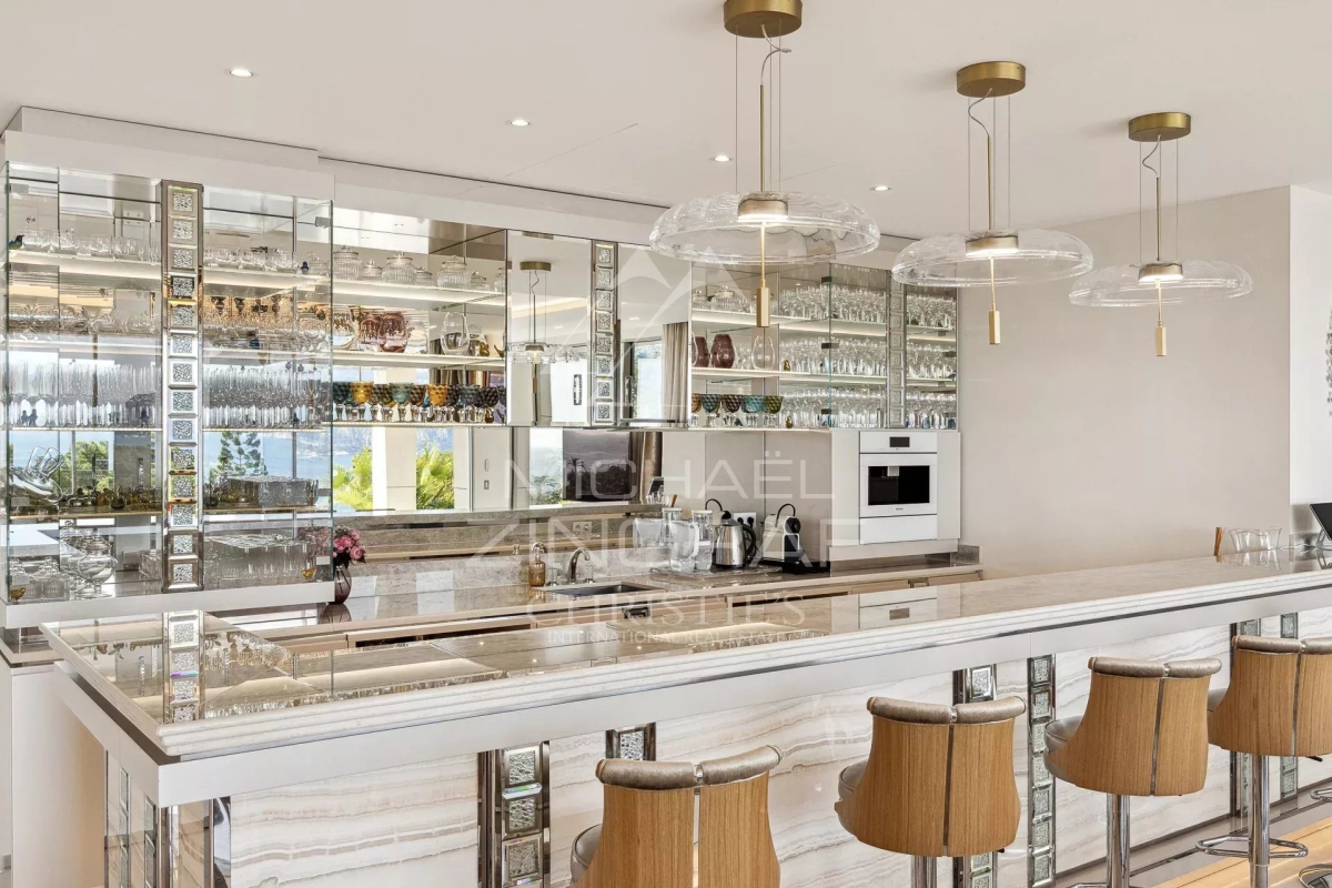 Elle développe une surface habitable d'environ 500 m², répartie sur quatre niveaux, intégralement desservis par un ascenseur intérieur. La propriété se compose notamment : – d'un hall d'entrée, – d'un vaste séjour avec espace de réception, – d'une cuisine professionnelle entièrement équipée, – de cinq chambres, dont deux suites parentales avec salles de bains privatives et terrasses, – d'une salle de cinéma, – d'un espace bar, – d'une salle de jeux, – d'une salle de sport, – d'un local buanderie, – de nombreux rangements, – de locaux techniques. À l'extérieur, la villa dispose de : – terrasses aménagées, – d'une piscine chauffée, – d'un jacuzzi, – d'un jardin paysager, – de places de stationnement privatives devant la propriété, – ainsi que d'un garage souterrain d'une capacité de quatre véhicules. L'ensemble de la propriété est équipé d'un système de domotique complet, ainsi que d'un dispositif de sécurité renforcé, comprenant notamment vidéosurveillance, alarmes, et un poste de sécurité indépendant. N° de télédéclarant : 06121039293MX