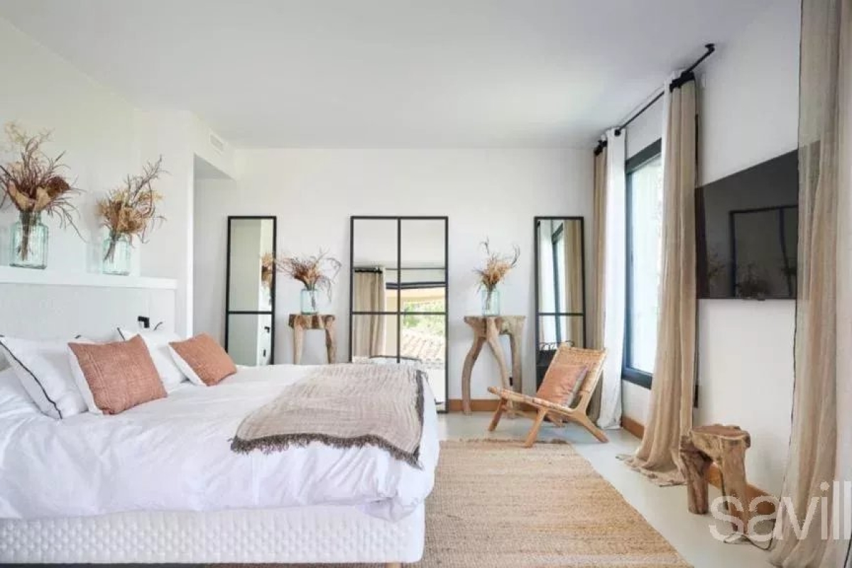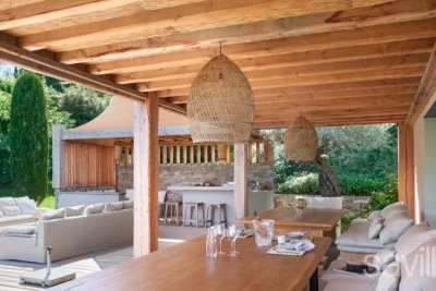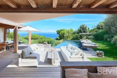 Superbe villa avec vue mer située à Saint-Tropez dans un domaine privé. Surface habitable d'environ 520 m², sur un terrain 4402 m², la maison se compose comme suit: Au rez-de-chaussée : hall d'entrée, toilettes invités, cuisine ouverte avec accès direct par entrée de service, un cellier avec chambre froide, salon avec espace salle à manger (110 m²) ouvrant sur terrasses aménagées face à la mer et à la piscine. Une chambre principale de 45 m² avec vue mer – lit 2m, dressing, coffre salle de bains complète avec toilettes séparées. Une chambre (lit 180cm) avec vue mer, dressing, salle de douches et toilettes indépendantes. Deux chambres (lit 180 cm) en suite avec vue mer, placards dressing, salle de douches et toilettes. Au premier étage : un bureau sur palier avec vue mer, une chambre principale de 60 m² ouvrant sur terrasse : lit 2m avec dressing, coffre, salle de bains complète douche et baignoire, toilettes séparées. Niveau -1 : deux chambres (une avec lit 180 cm et une avec deux lits 90 cm) – placards dressing – salle de bains : un vasque douche / toilettes séparées, une entrée de service, une cuisine de service, une buanderie (un lave-linge et un sèche-linge), deux chambres avec puits de lumière La propriété possède également la climatisation, vidéo surveillance et alarme périmétrique, piscine chauffée 16m/5.5m, pool house avec cuisine d'été et barbecue, terrain de pétanque, abris voitures, TV IP cody player dans toutes les chambres), système hifi intérieur/extérieur. Minimum de location en été : deux semaines Tarifs régressifs au mois. Les prix varient en fonction de la période de location - seuls les tarifs minimums sont renseignés en annonces : nous vous invitons à nous consulter pour toute demande de tarification. Veuillez noter que des frais de location supplémentaires s'appliquent. Honoraires d'agence à la charge du locataire. Barème des honoraires de location disponible en ligne et sur demande. Veuillez noter que le plan n'indique pas l'emplacement précis du bien et que toutes les mesures sont approximatives, les informations sont fournies à titre indicatif uniquement. Contact: +33602735306.