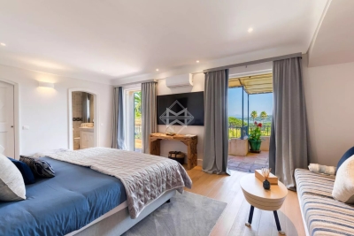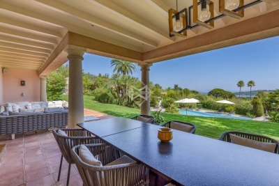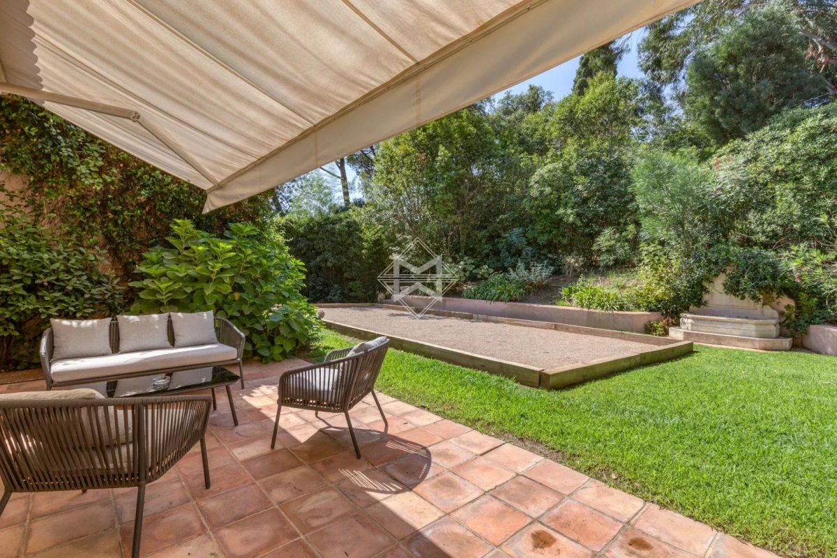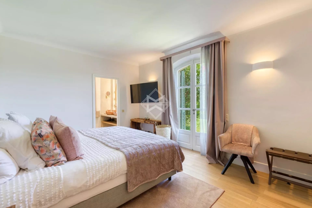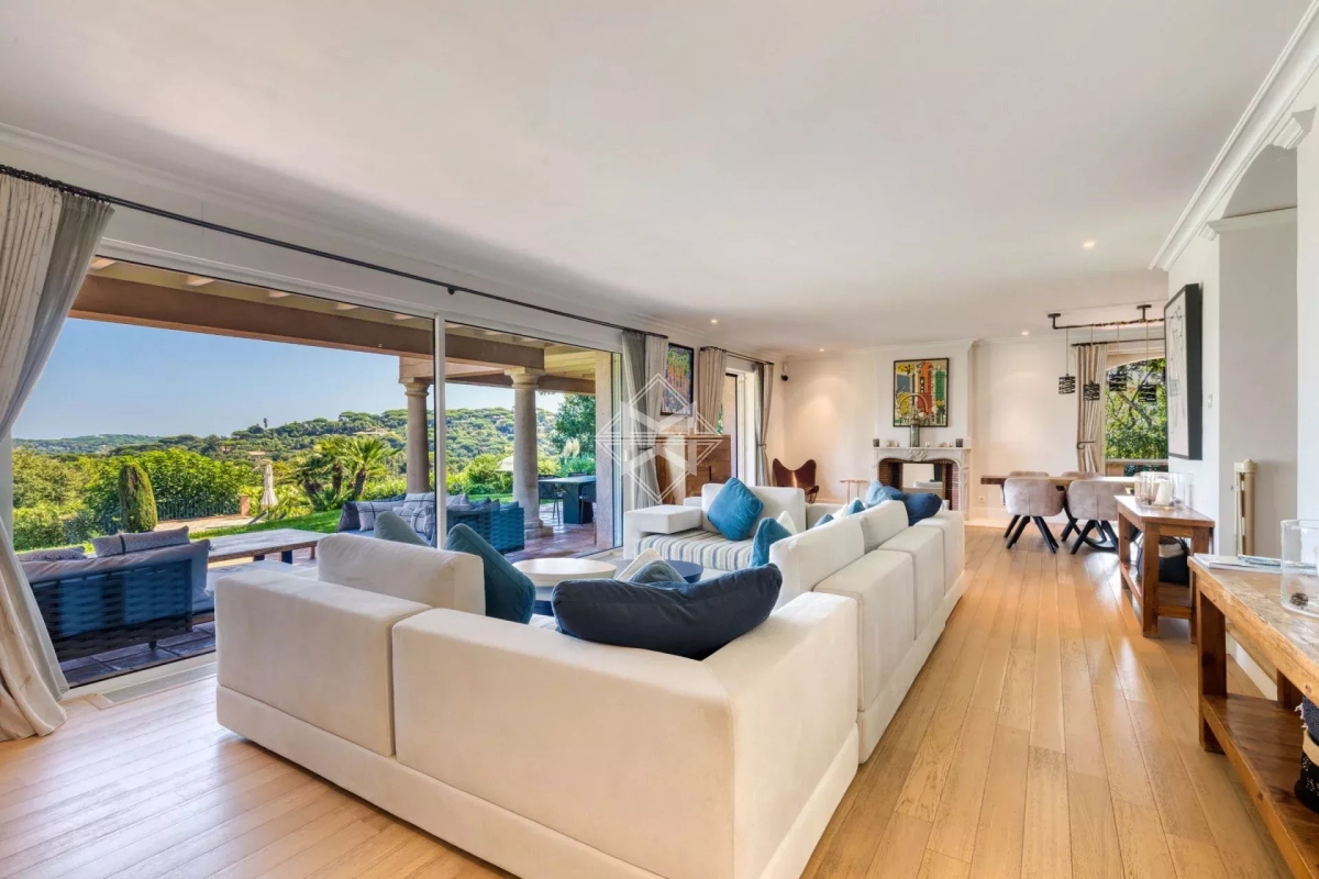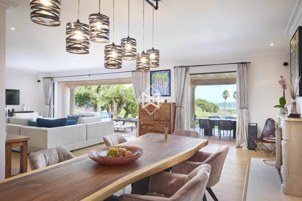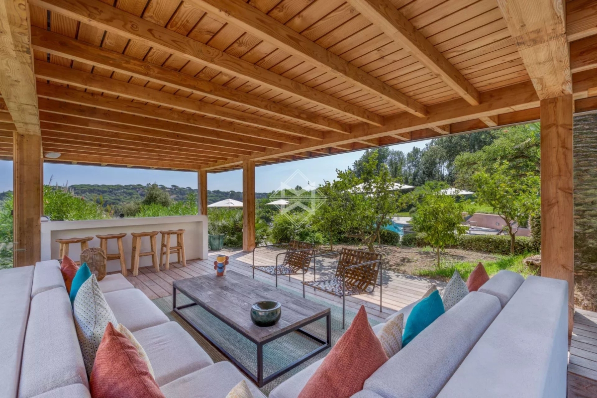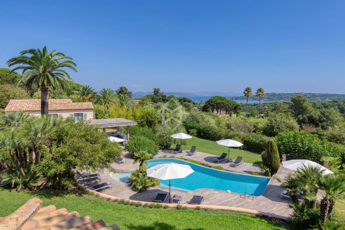 A mi-chemin entre la place des Lices et la plage de Tahiti dans le secteur prisé de la Belle Isnarde, une charmante propriété provençale rénovée avec modernité, composé d'une villa principale de 4 chambres en suite, d'une maison d'invités disposant de 2 suites invités et d'une maison de gardien (2 couchages) sur 4 800 m2 de terrain arborés et paysagés d'essences méditerranéennes, donnant sur les vignes, la baie des Canoubiers et le Château Borelli. C'est le designer allemand Hans Peter Proff qui est en charge de la décoration, proposant un style fusion mêlant inspiration Bohême chic, mobilier de créateurs Italiens, une touche ethnique sans oublier d'intégrer le tout dans un environnement provençal. Cette propriété saura vous séduire grâce à ces grands volumes et son cachet. Équipements: Emplacements voitures, terrain de pétanque, piscine chauffé, salle de sport Tehcnogym, système son SONOS, barbecue Weber, bar extérieur...