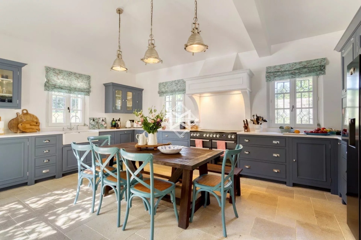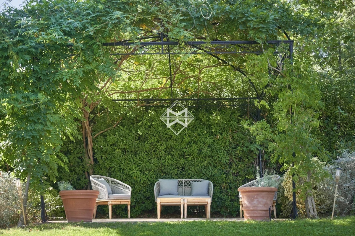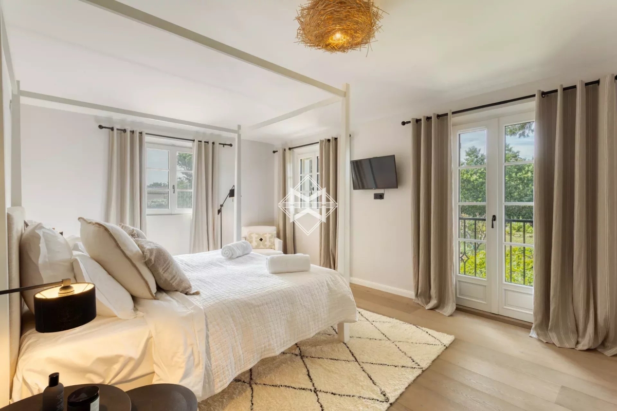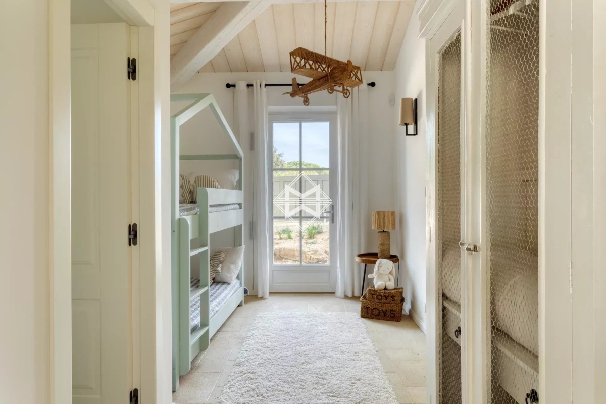 Belle propriété de charme située dans le très exclusif et recherché Domaine prisé des « Parcs de Saint-Tropez », sécurisé et gardienné, à proximité du centre et des plages de Saint-Tropez. A l'abri des regards, et exposée sud/ouest, cette élégante bastide à l'architecture tropézienne avec sa grande terrasse de toit totalise environ 300 m² de surface habitable, comprenant notamment un grand espace de vie lumineux (séjour avec cheminée, salon tv, cuisine) et 4 suites dont 1 suite pour enfants. Indépendamment, un pool house décoré avec goût et totalement équipé d'une kitchenette, d'une chambre en suite et une chambre en suite pour enfant. La propriété jouit d'un beau terrain paysager plat aux essences méditerranéennes de 3508 m², agrémentée d'une piscine chauffée. Grand abri voiture, fontaine, alarme, climatisation, sono Bose. Beaucoup de charme pour cette propriété située à l'une des adresses les plus prestigieuses de Saint-Tropez.