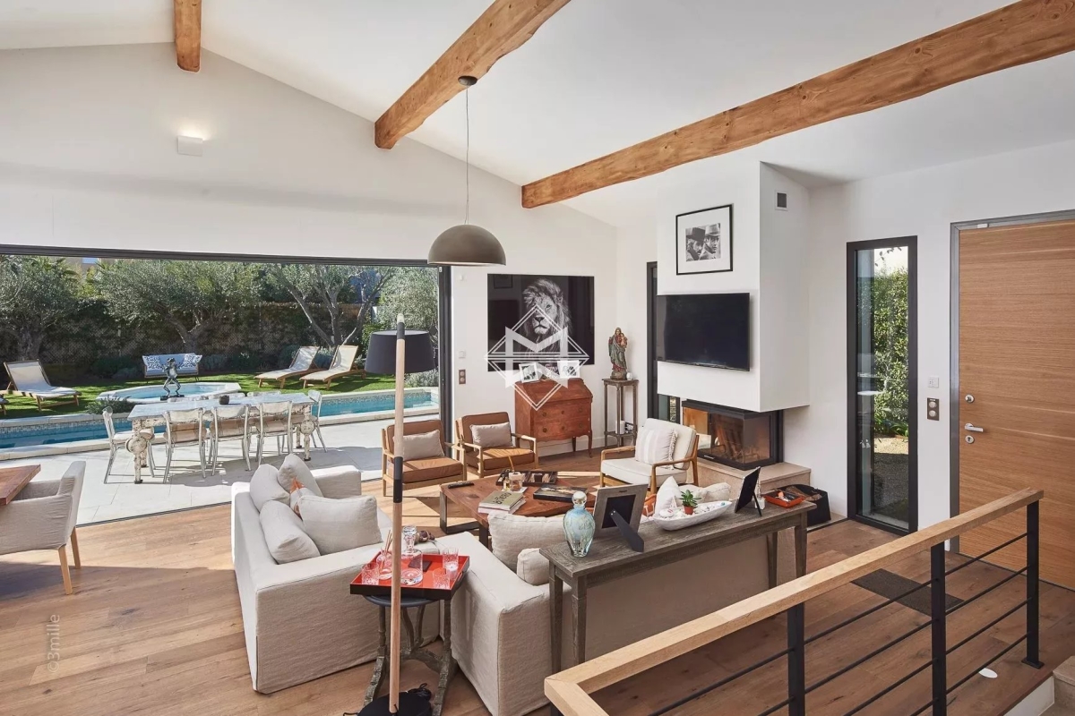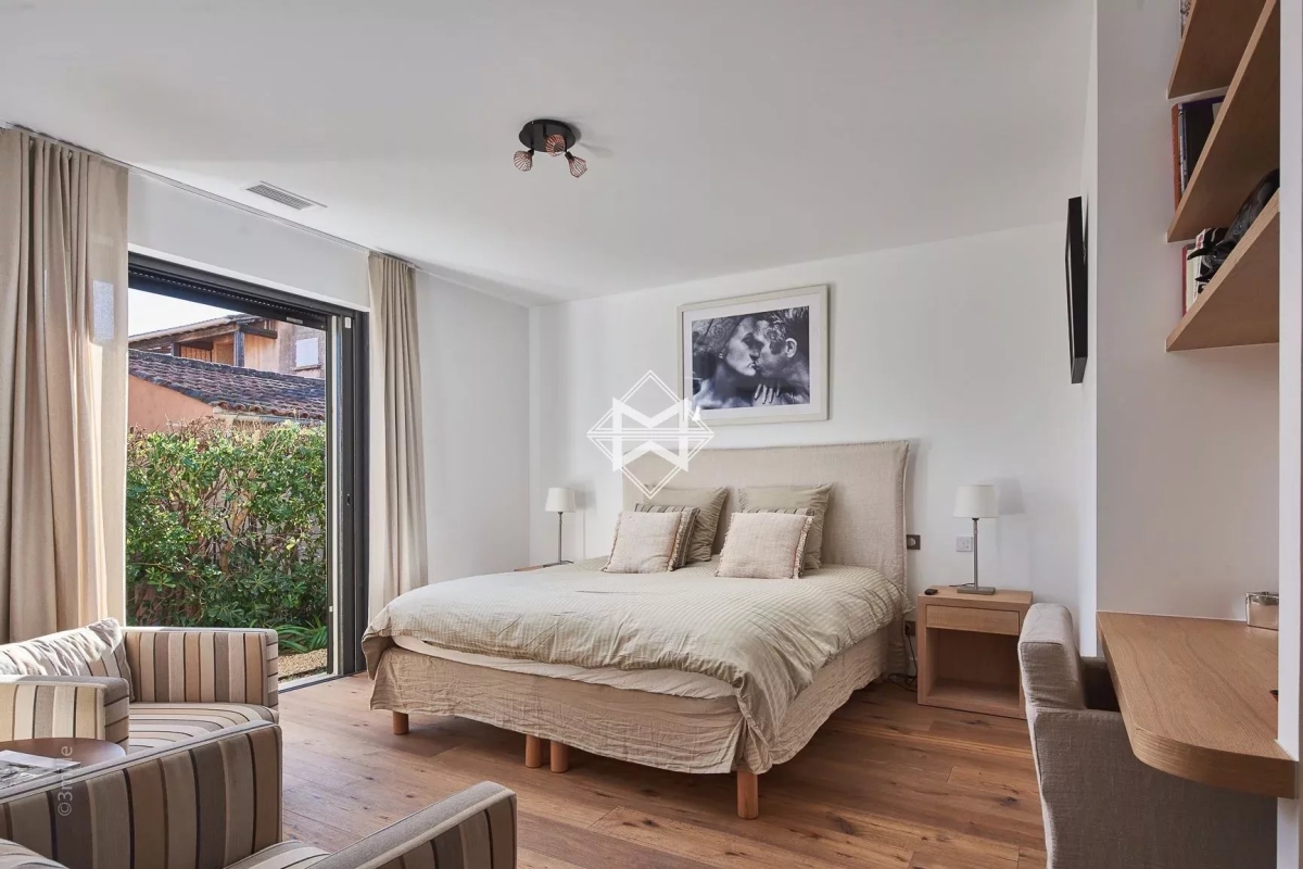 Au sein d'un petit domaine fermé dans le centre de Saint-Tropez, à deux pas du port, sur environ 800 m² de terrain plat, une villa entièrement rénovée d'un peu plus de 200 m². Exposée Sud et très bien équipée, elle se compose d'une large pièce à vivre avec cuisine équipée/salle à manger/lounge et cheminée, puis 4 chambres à coucher et salles d'eau/ou bain. La propriété bénéficie d'une salle de sport/home cinéma, d'une piscine/jacuzzi et de parking. Climatisation, portail électrique, éclairage du jardin, arrosage automatique... Numéro d'agrément : 83119003602AK