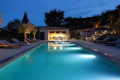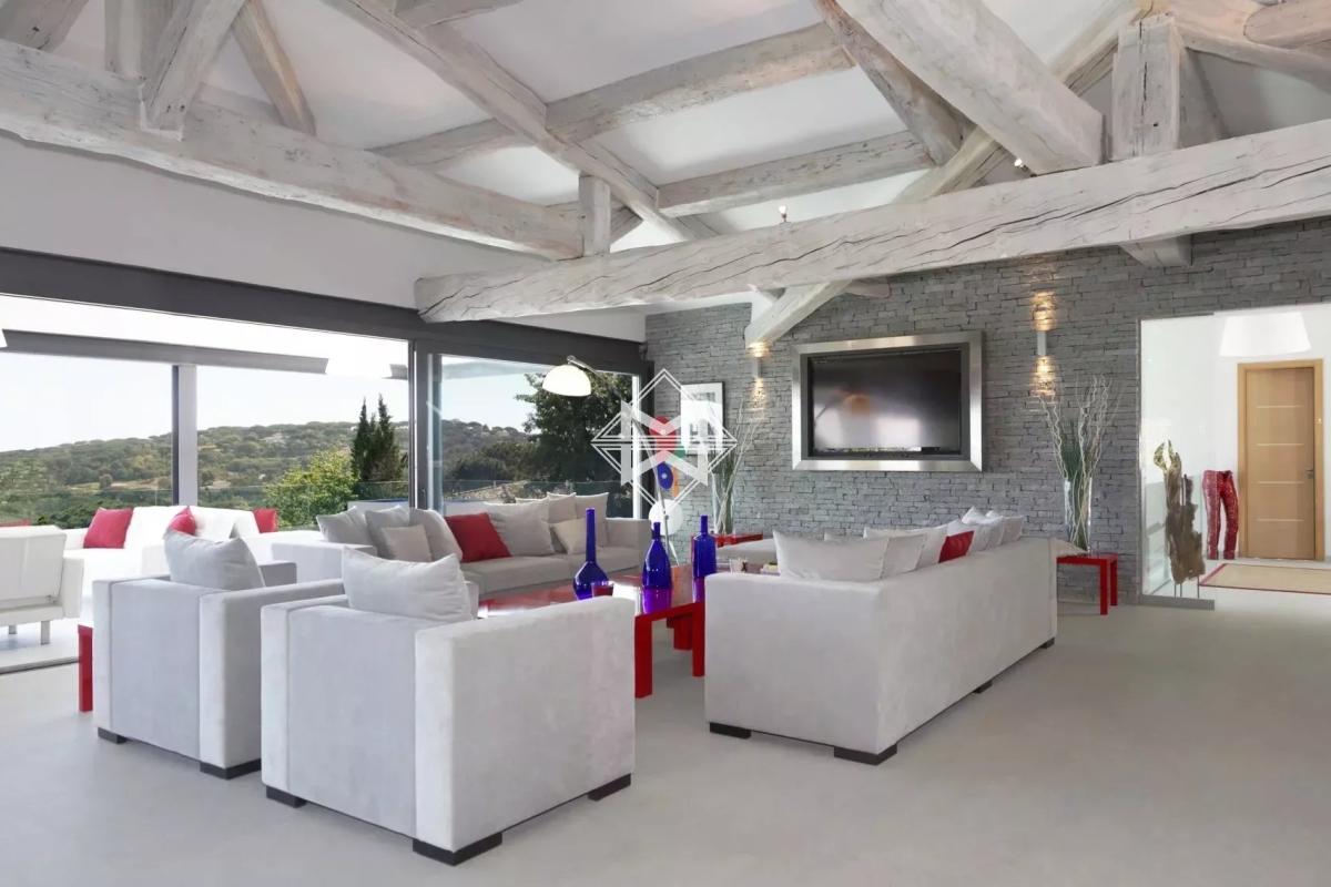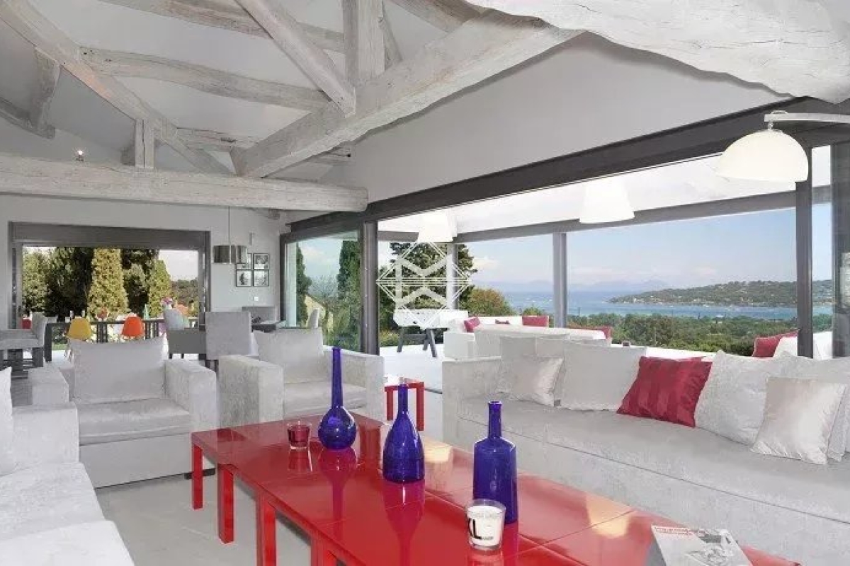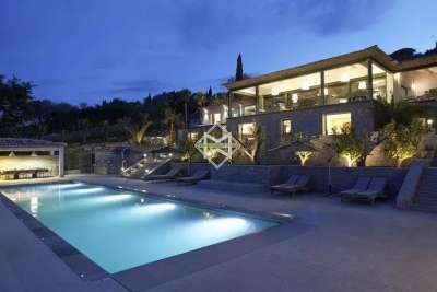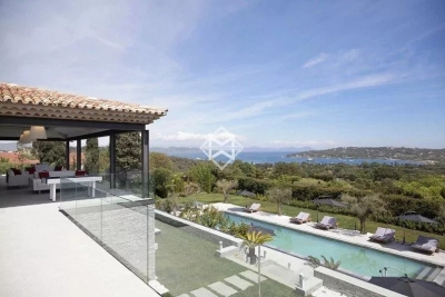 Luxueuse villa contemporaine d'environ 800 m² à quelques minutes du centre de Saint-Tropez, en position dominante, offrant une splendide vue mer sur la baie des Canebiers et les parcs de Saint-Tropez. Pensée et décorée avec goût, cette propriété surprend par son incroyable espace de vie avec cuisine moderne ouvert sur l'extérieur. La demeure propose 8 belles chambres, auxquelles s'ajoute un studio de gardien. Avec 3665 m² de jardin paysager, ses nombreuses terrasses, son pool house et sa piscine chauffée de 20 mètres de long, les espaces extérieurs font de la villa un véritable havre de paix. Salle de fitness, hammam, espace cinéma. Garage et nombreuses places de parking. Propriété entièrement sécurisée. Un cadre idyllique et des prestations très haut de gamme qui sauront satisfaire les plus exigeants.