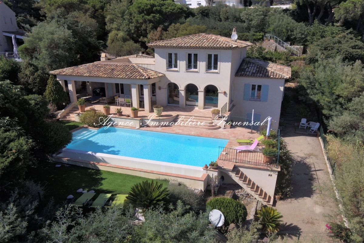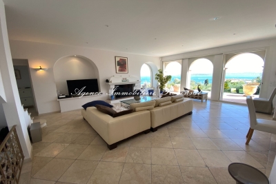 Location saisonnière de villas avec vue sur mer et piscine à Sainte Maxime. Jolie villa avec piscine et magnifique vue sur la mer à louer pour les vacances pour 8 personnes dans le secteur résidentiel du Sémaphore à Sainte-Maxime. Proche du centre-ville, la villa se compose au niveau principal d'un beau séjour avec coin repas et salon ouvrant sur terrasse face à la mer, d'une cuisine ouverte, de 2 chambres avec salle d'eau et WC . La chambre de l'étage dispose d'une salle de bains complète et d'une grande terrasse privative - La chambre du rez de jardin a également une salle d'eau privative avec toilettes - Climatisation dans toutes les chambres. Piscine à débordement 10 X 5 m face au Golfe de St-Tropez. Boulodrome. Plancha. La situation de cette maison est idéale. Linge de maison en option. Chiens non admis. Prix de juin et septembre : 5.622€/semaine. Prix de la 1ere quinzaine juillet : 5.611€/semaine. Prix de la 2ème quinzaine juillet : 6.287€/semaine. Prix d'août : 6.287€ / semaine. Prix de la dernière semaine d'août : 5.611€. Renseignements, disponibilités et périodes : nous contacter par mail à Contact: +33(0)494960018.