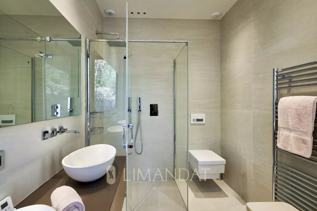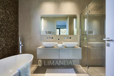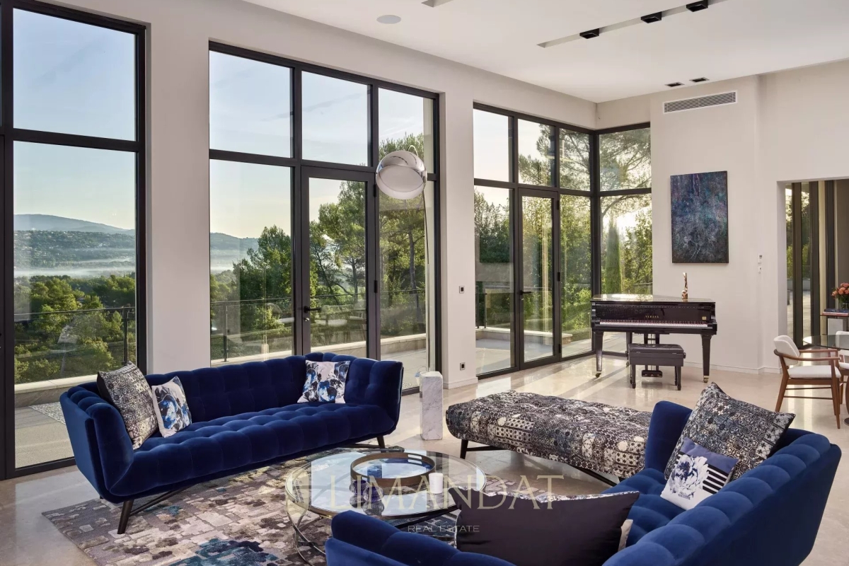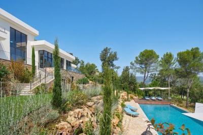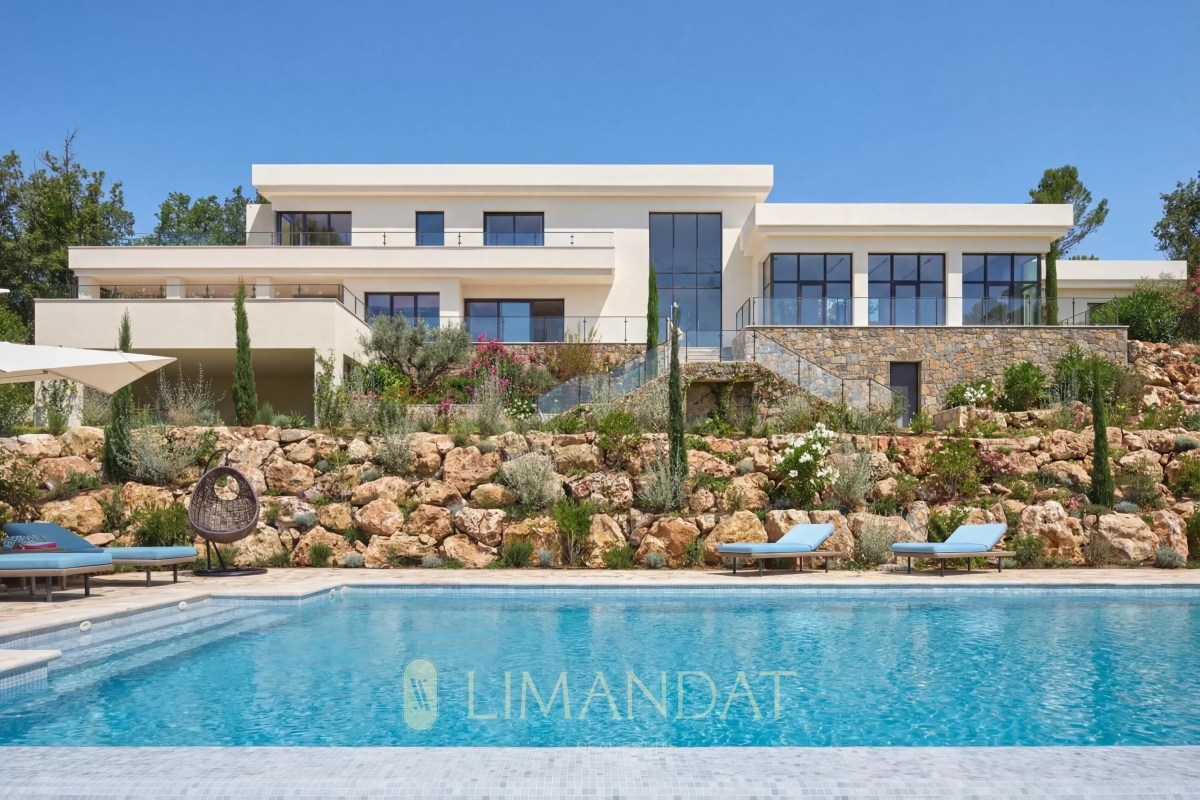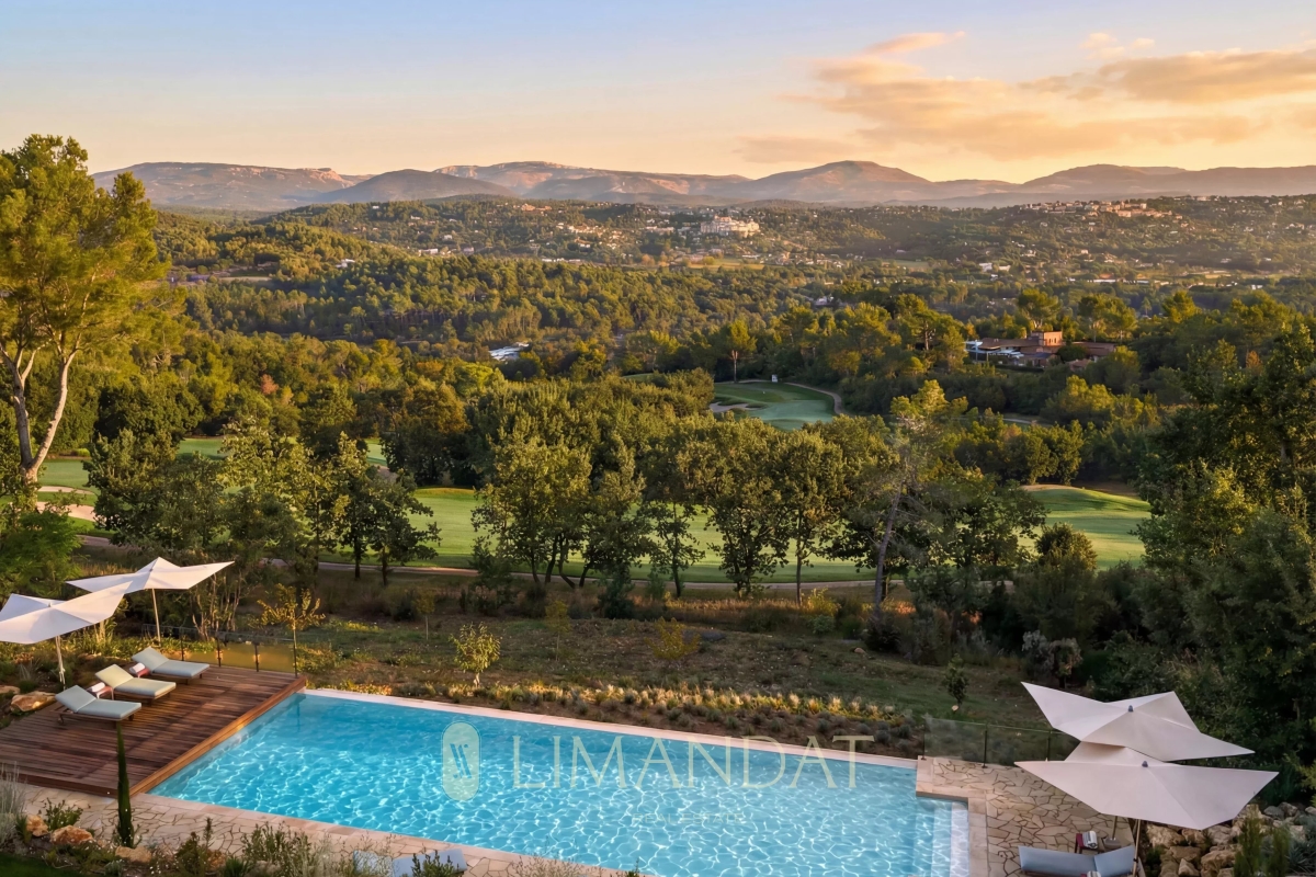 Baignée de lumière naturelle et sublimée par de magnifiques hauteurs sous plafond, cette villa contemporaine d'environ 450 m² est située au cœur du prestigieux domaine privé de Terre Blanche, l'un des resorts golfiques et bien-être les plus exclusifs d'Europe. Entourée par les collines verdoyantes de Provence et bénéficiant d'un accès direct au parcours de golf du Riou, la propriété offre une sensation immédiate d'espace, de calme et de sérénité. Les larges baies vitrées toute hauteur ouvrent la maison sur des vues panoramiques spectaculaires sur le golf et la nature environnante, tout en laissant entrer une lumière omniprésente tout au long de la journée. La villa a été pensée pour offrir un art de vivre fluide et élégant, mêlant volumes généreux, lignes contemporaines et une parfaite continuité entre intérieur et extérieur. Rez-de-chaussée : -Spacieuse entrée avec vestiaire -Vaste salon avec cheminée, piano à queue et espace TV, ouvert sur les terrasses -Salle à manger -Cuisine contemporaine entièrement équipée avec électroménager haut de gamme -Terrasse extérieure avec coin lounge, grande table à manger et barbecue à gaz -Arrière-cuisine et buanderie -Chambre 1 : Lit queen-size, salle de bain avec douche à l'italienne et baignoire, double vasque, climatisation, sols chauffants, TV, coffre-fort et accès terrasse -Chambre 2 : Lit queen-size, salle de bain avec douche à l'italienne, double vasque, climatisation, sols chauffants, TV, coffre-fort, espace bureau et accès terrasse -Chambre 3 : Lit double, salle de bain avec douche à effet pluie, climatisation Étage Supérieur : -Chambre 4 : Lit king-size, salle de bain attenante avec douche à l'italienne effet pluie et baignoire, dressing, climatisation, sols chauffants, TV, coffre-fort et accès direct à la terrasse avec vue sur la piscine et le golf -Chambre 5 : Lit queen-size, salle de bain avec douche à l'italienne et baignoire, climatisation, sols chauffants, TV, coffre-fort et accès balcon -Chambre 6 : Canapé-lit, salle de bain avec douche à effet pluie, climatisation, espace salon, TV et accès direct à la terrasse Espaces extérieurs : -Jardin paysager aménagé en restanques -Grande terrasse exposée plein sud offrant une vue dégagée et apaisante sur le golf et la campagne provençale -Piscine à débordement chauffée, parfaitement intégrée dans son environnement -Garage fermé pour 3 véhicules + plusieurs places de stationnement extérieures Équipements & prestations : -Climatisation intégrale -Sols chauffants -Salle de jeux intérieure -Système audio Sonos -Connexion Wi-Fi haut débit -Table de ping-pong -Barbecue à gaz -Coffre-fort et télévision dans chaque chambre -Domaine sécurisé avec gardiennage 24h/24 et 7j/7 Cette villa n'est pas simplement un lieu de séjour, mais une véritable expérience de vie à Terre Blanche, idéale pour les amateurs de golf, les familles ou les voyageurs en quête de luxe discret, d'espace et de nature, dans un cadre confidentiel et raffiné. Disponible à la location longue durée. Contact: +33617128879.