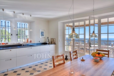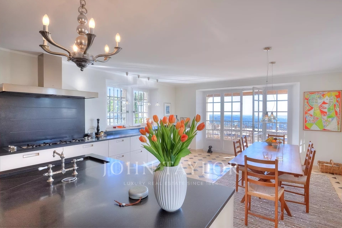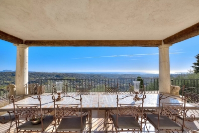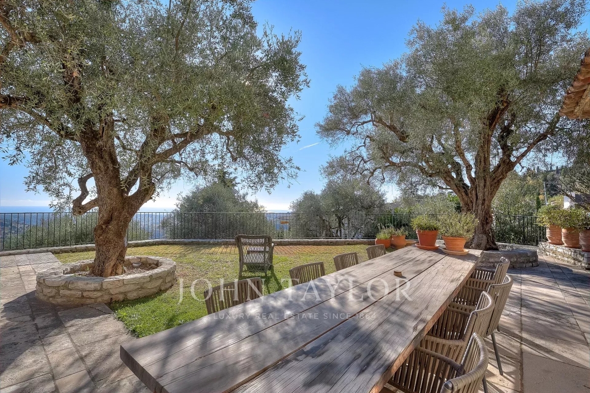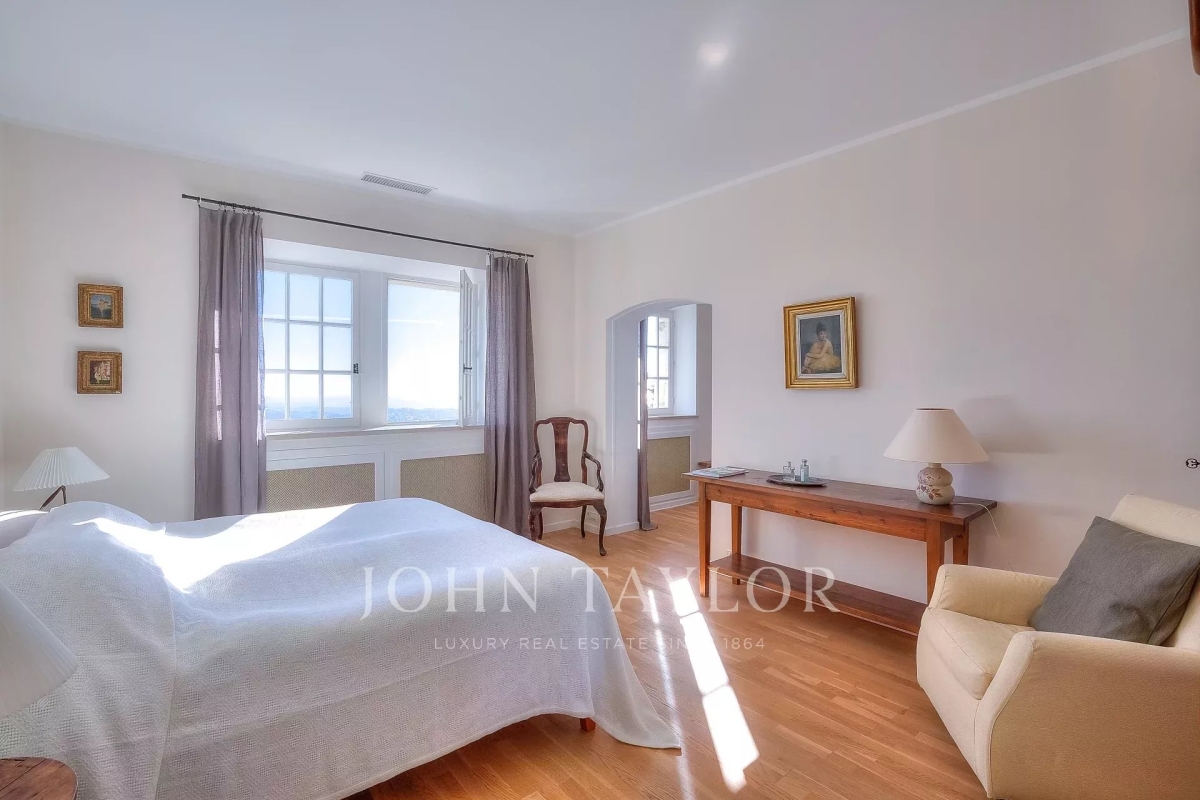 Profitant d'un panorama spectaculaire sur la Méditerranée, cette magnifique propriété de 600m² entièrement rénovée avec beaucoup de charme possède une belle tour en pierres et bénéficie d'une position dominante dans les hauteurs non loin de Vence. Au rez-de-chaussée : - Hall - Vestiaires invités - Grande réception (90 m²) avec cheminée, quatre portes-fenêtres donnant sur le jardin et un bureau - Salle à manger avec portes-fenêtres s'ouvrant sur deux terrasses - Grande cuisine luxueusement équipée et aménagée, avec accès vers le barbecue - Arrière-cuisine - Buanderie 1er étage : - Entrée / bureau - Chambre I (36 m²), boudoir avec sa salle de bains - Chambre II (27 m²) avec sa salle de bains - Chambre III (26 m²) avec sa salle de douches - Chambre de maître comprenant un dressing, cheminée dans la tour, salle de bains en marbre rose, ouvrant sur la terrasse - Chambre V avec salle de douches Toutes les chambres bénéficient de la vue mer ! À l'extérieur : - Jardin paysagé de 3800m² avec de nombreux arbres fruitiers, oliviers et senteurs méditerranéennes - Piscine miroir avec son pool house - Belles terrasses avec de grandes tables, pouvant héberger jusqu'à 12 personnes - Terrain de tennis à disposition Les informations sur les risques auxquels ce bien est exposé sont disponibles sur le site Géorisques : www.georisques.gouv.fr Contact: 0603211912.