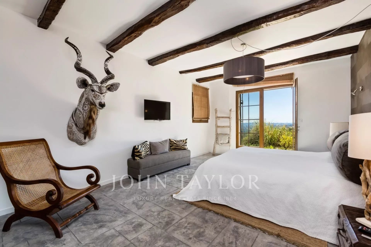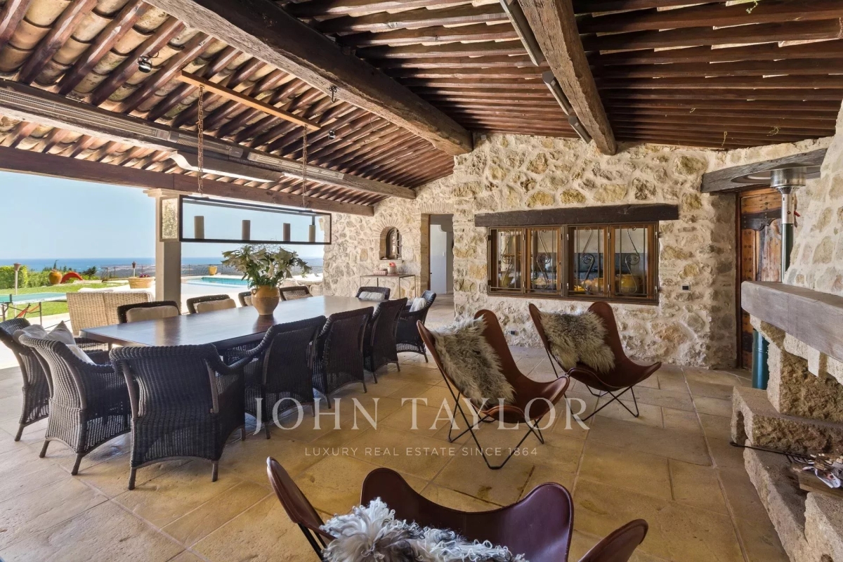 Un des plus beaux panoramas sur la Côte d'Azur! On ne peut que tomber sous le charme de cette sublime propriété en pierres, qui grâce sa position dominante dans les hauteurs de Vence, bénéficie d'une vue exceptionnelle sur toute la Côte d'Azur. Vence est un célèbre village où de nombreux artistes tels que Chagall et Matisse sont venus chercher la lumière et l'inspiration et se situe entre les célèbres cités balnéaires de Nice et de Cannes, à seulement 15 km de l'aéroport international de Nice Côte d'Azur. Entièrement rénovée avec des matériaux nobles et des prestations haut de gamme,elle marie avec le plus grand goût, le charme authentique provençal et le design moderne. Cette demeure d'environ 600m² sur un terrain d'environ 5500 m² offre de grands espaces de vie à l'extérieur comme à l'intérieur qui garantissent un confort de qualité et de prestige pour un séjour de détente en toute sérénité. A l'intérieur, un vaste salon cosy avec Apple TV, home cinéma et cheminée ouvre sur une magnifique salle à manger et une grande cuisine aux prestations haut de gamme. La propriété offre 7 superbes chambres, toutes avec salles de bains en-suite dont celle de maître avec vue mer. De plus, il y a un studio indépendant avec cuisine, salle de bain et chambre. A l'extérieur, le pool house tout en pierre avec son four à pizza, sa cheminée et sa grande table en bois massif ouvre sur la piscine à débordement et sa vue mer féerique que l'on peut admirer tout en se baignant. Non loin de là,se trouvent un splendide salon marocain pour se détendre et une salle de gym. L'endroit parfait pour un moment d'exception! Les informations sur les risques auxquels ce bien est exposé sont disponibles sur le site Géorisques : www.georisques.gouv.fr Contact: 0603211912.