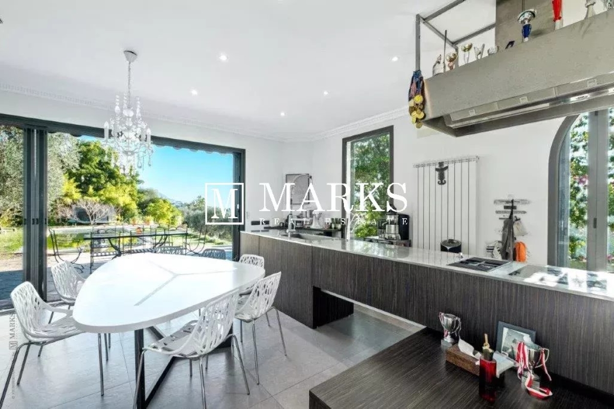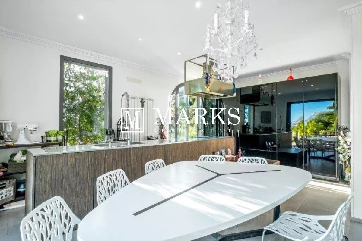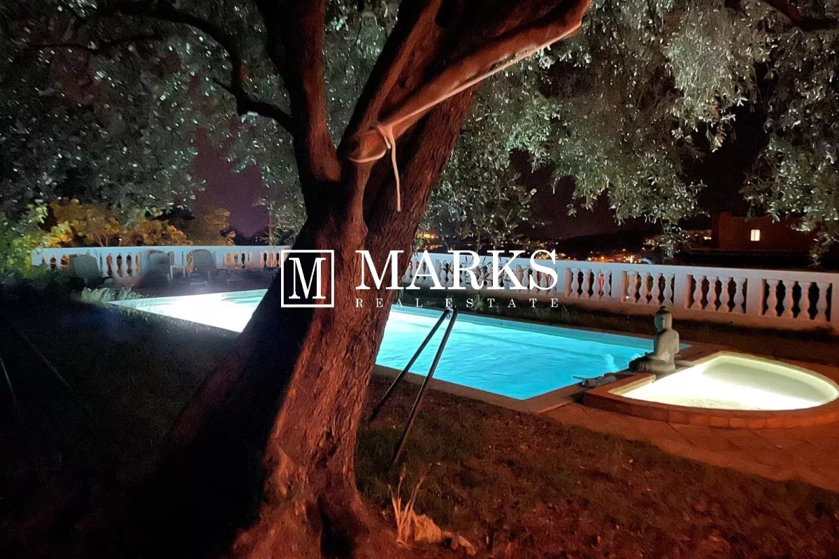 Emplacement exceptionnel pour cette propriété située dans une résidence fermée à proximité de centre ville et de la mer. Une maison d'une superficie de 150 m². avec 4 chambres et 3 salles de bain. Un appartement 2 pièces indentent. Terrain de 2946 m² avec une piscine et parkings. Contact: +33612116233.