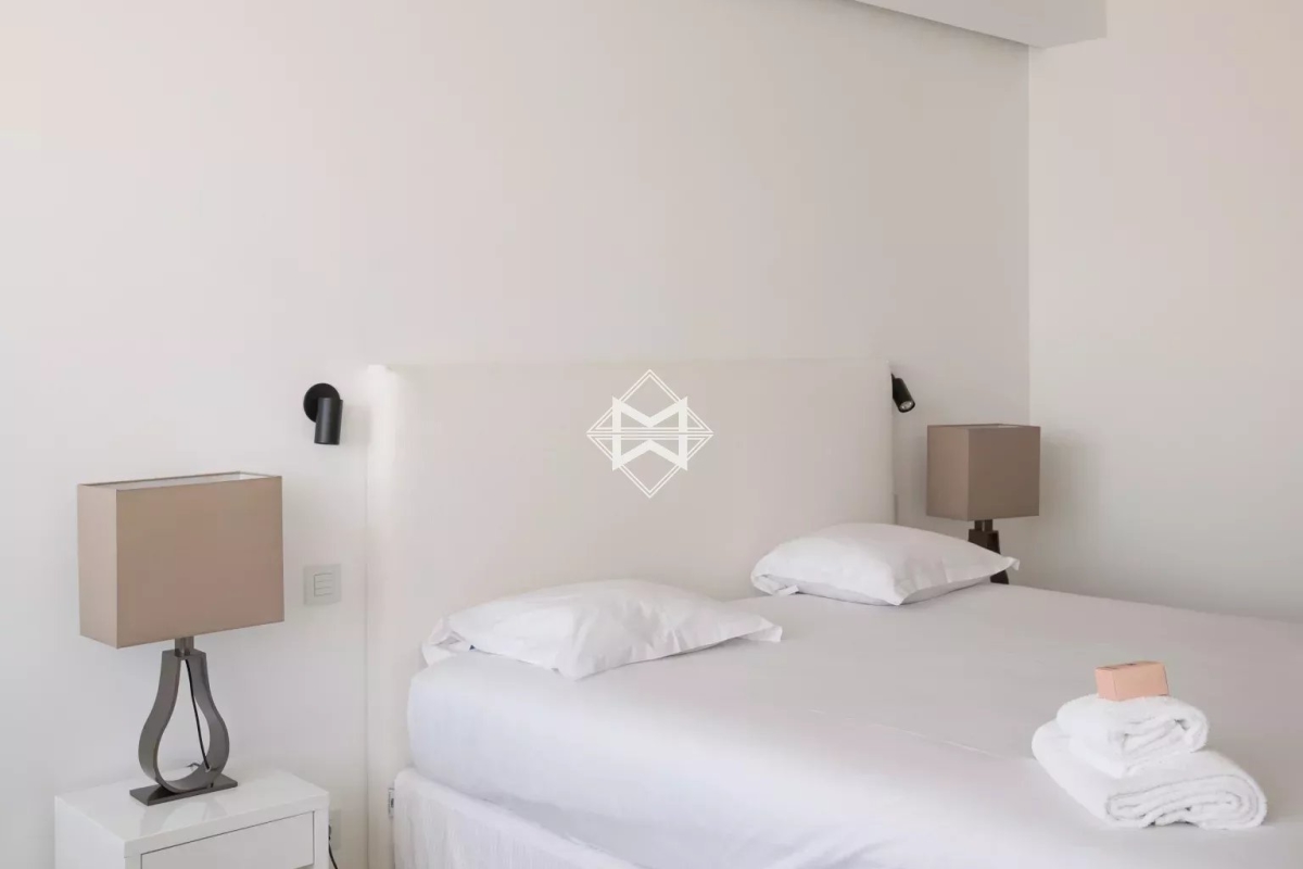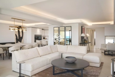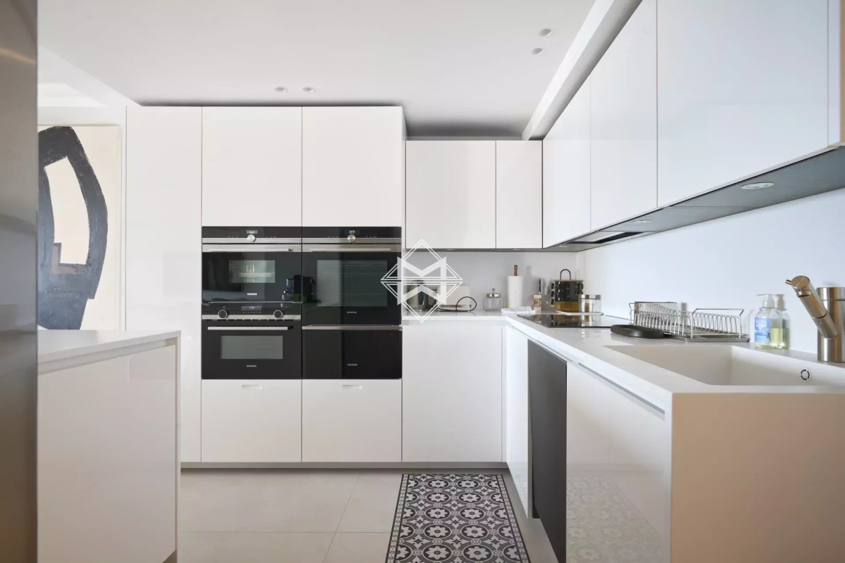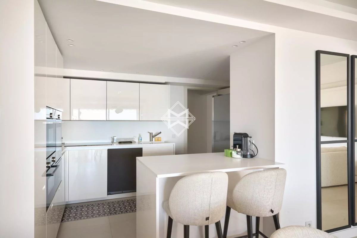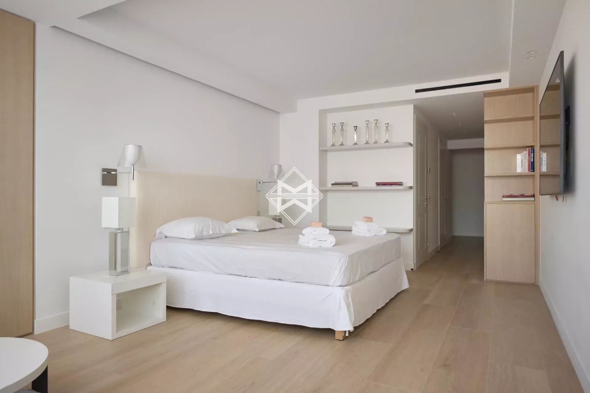 In the heart of the Croisette, in a luxury residence, this magnificent 230sqm flat on a high floor stands out for its elegance and modern finishes. Fully renovated, it offers a refined living environment with superb panoramic views of the sea and surrounding gardens. Ideally located on the Croisette, it is within easy reach of the beaches, shops and restaurants of Cannes. This rare property combines the comfort of a modern interior with the charm and exceptional views of a prestigious location. It comprises - Entrance hall - Guest toilet - A large living and dining room opening onto a double terrace - Fully-equipped open-plan kitchen - Bedroom 1: Master suite with 180cm bed, TV, relaxation area, dressing room with large wardrobes, bathroom and shower, double washbasins and separate WC with shower head. - Bedroom 2: guest suite with 160cm bed and wardrobes, shower room, WC - Bedroom 3: guest suite with 160cm bed, TV, wardrobes, shower room, WC - Bedroom 4: master suite with 180cm bed, TV, built-in wardrobes, dressing room, double washbasin shower room, WC and hand-held shower. An enclosed garage completes the property. Reversible air conditioning, electric shutters with central control. Estelle FACCHINETTI - Agent commercial - EI - RSAC 87862822