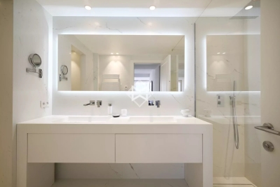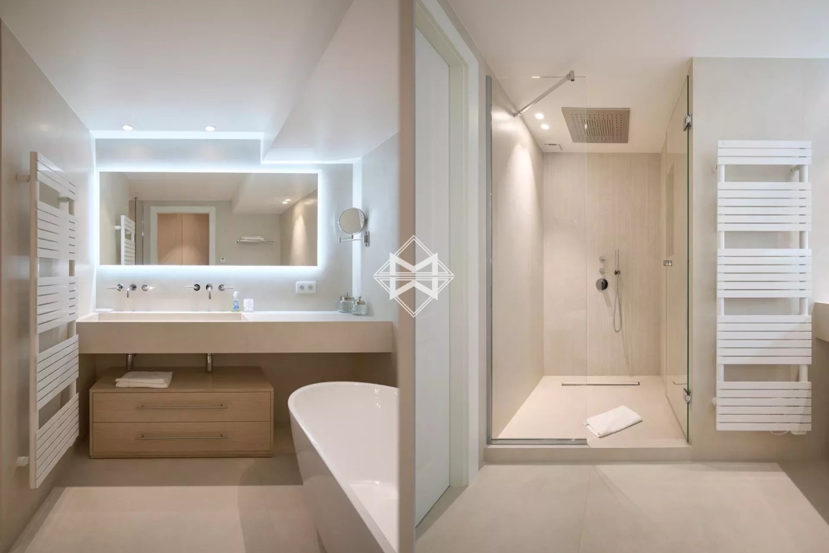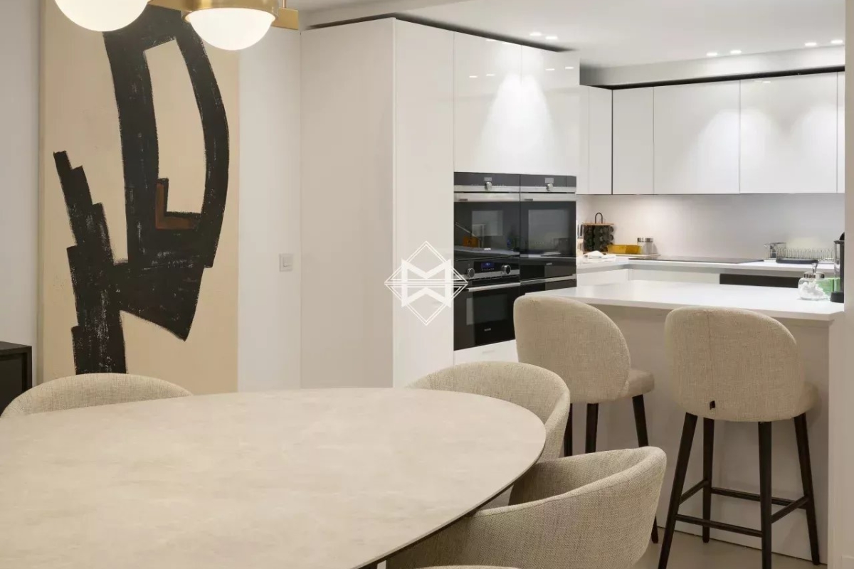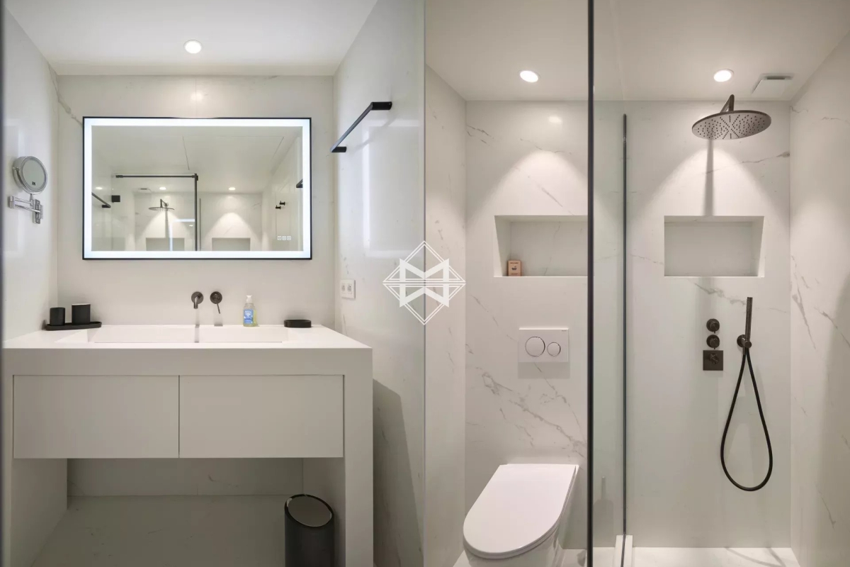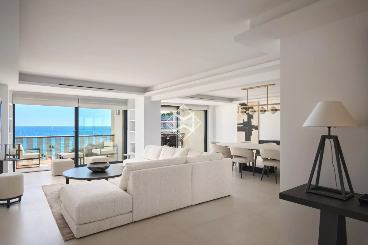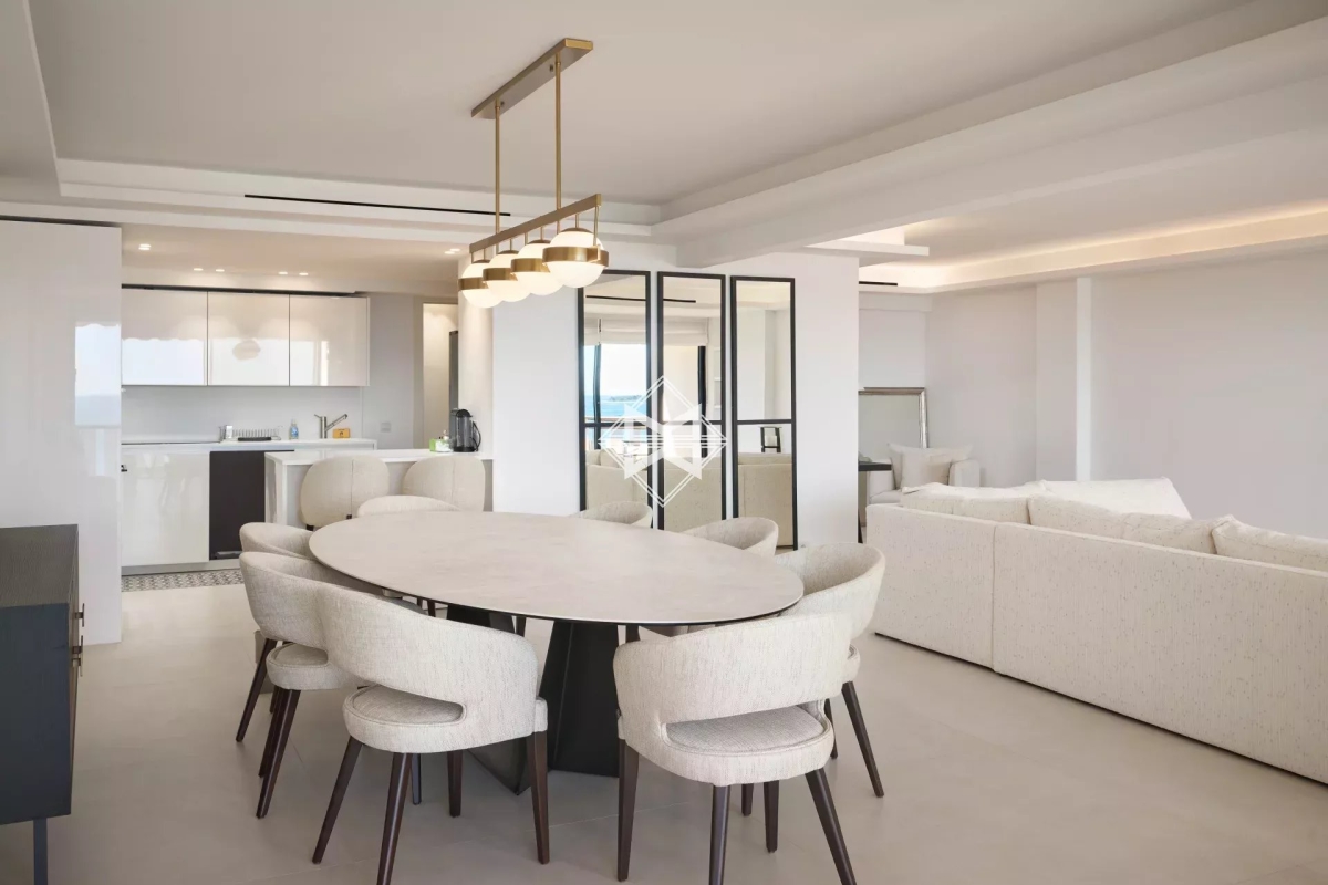 In the heart of the Croisette, in a luxury residence, this magnificent 230sqm flat on a high floor stands out for its elegance and modern finishes. Fully renovated, it offers a refined living environment with superb panoramic views of the sea and surrounding gardens. Ideally located on the Croisette, it is within easy reach of the beaches, shops and restaurants of Cannes. This rare property combines the comfort of a modern interior with the charm and exceptional views of a prestigious location. It comprises - Entrance hall - Guest toilet - A large living and dining room opening onto a double terrace - Fully-equipped open-plan kitchen - Bedroom 1: Master suite with 180cm bed, TV, relaxation area, dressing room with large wardrobes, bathroom and shower, double washbasins and separate WC with shower head. - Bedroom 2: guest suite with 160cm bed and wardrobes, shower room, WC - Bedroom 3: guest suite with 160cm bed, TV, wardrobes, shower room, WC - Bedroom 4: master suite with 180cm bed, TV, built-in wardrobes, dressing room, double washbasin shower room, WC and hand-held shower. An enclosed garage completes the property. Reversible air conditioning, electric shutters with central control. Estelle FACCHINETTI - Agent commercial - EI - RSAC 87862822