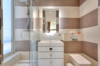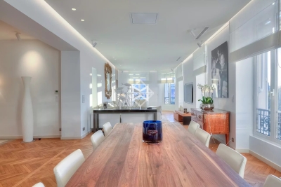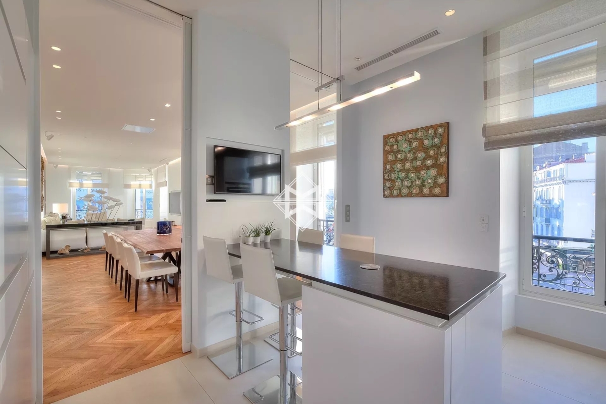 Located on the 2nd floor of a prestigious residence opposite the Palais des Festivals, this exceptional 160sqm flat has been completely renovated using quality materials. Every detail of the decoration has been carefully thought out, creating a chic, contemporary setting that combines refinement and elegance. Its privileged location, just a stone's throw from the Croisette and the beaches, makes it an ideal address for enjoying Cannes to the full, whether for leisure breaks or major events at the Palais des Festivals. It is composed as follows - An entrance hall leading to the 4 en suite bedrooms - A guest toilet - A large reception room comprising of a lounge and dining area - A modern fully equipped kitchen with sliding doors - A laundry room - Bedroom 1: guest suite with shower room and WC - Bedroom 2: guest suite with shower room and WC - Bedroom 3: guest suite with bathroom and WC - Bedroom 4: Master suite with bathroom and WC Reversible air conditioning, BOSE audio system, WIFI internet connection complete this property. Number of declaration : 06029023012SB Estelle FACCHINETTI - Agent commercial - EI - RSAC 87862822