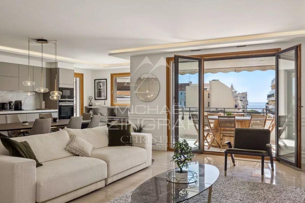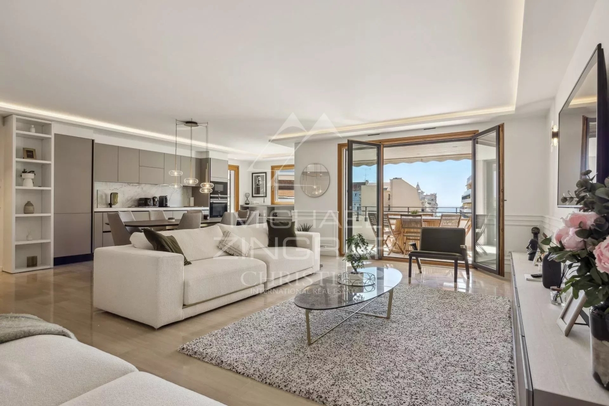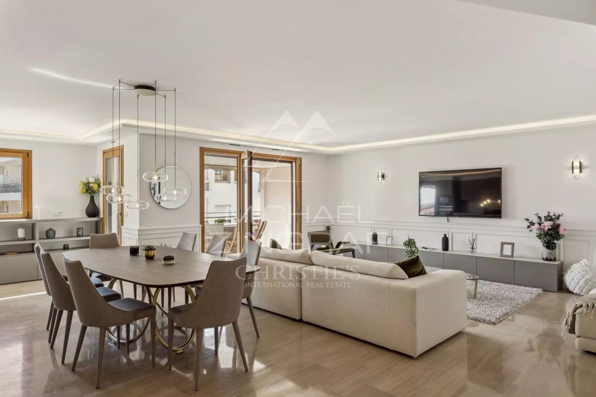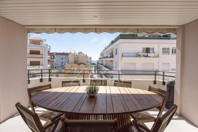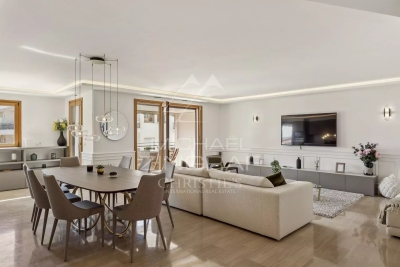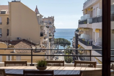 Ideally located near the Croisette, very beautiful apartment of approximately 134m², comprising: a spacious entrance, living room with fully equipped kitchen, dining room, 4 en-suite bedrooms, two of which are duplex. N° de déclaration: 06029029249DP