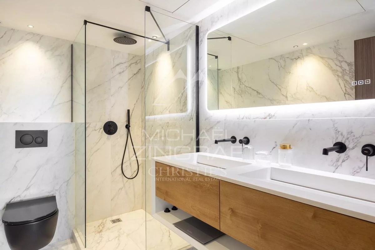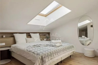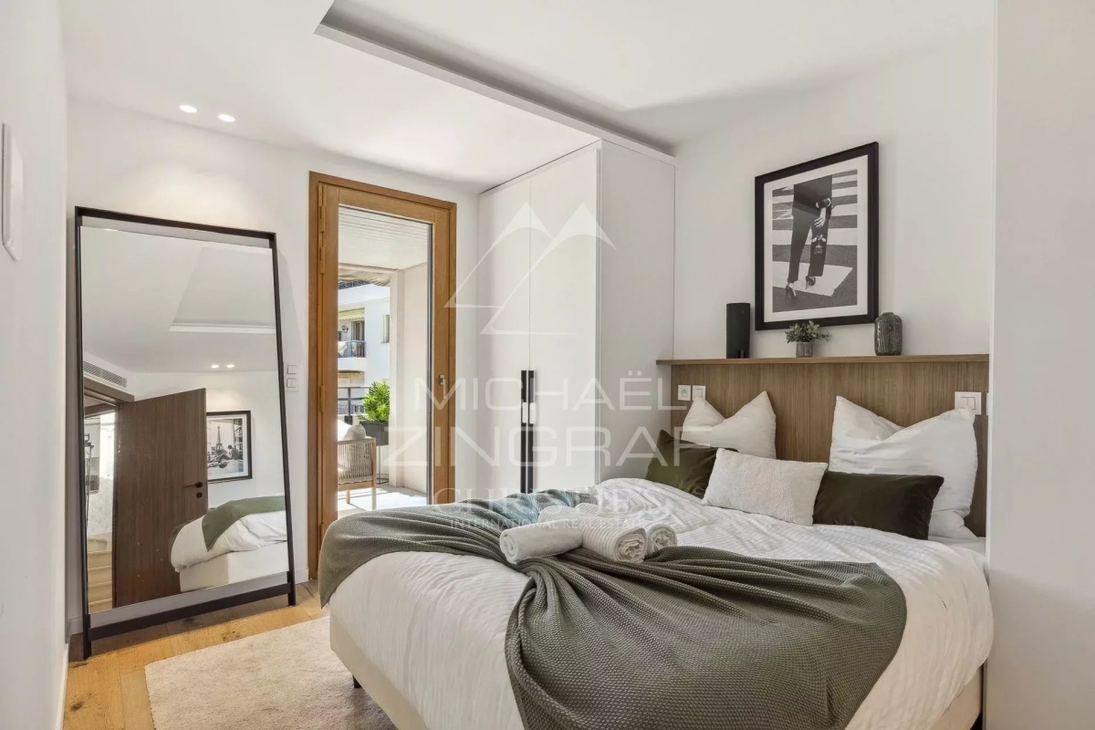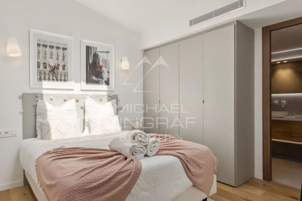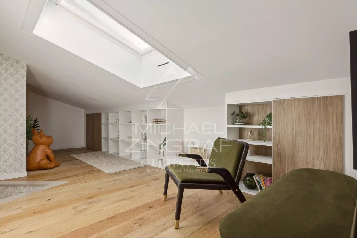 Ideally located near the Croisette, very beautiful apartment of approximately 134m², comprising: a spacious entrance, living room with fully equipped kitchen, dining room, 4 en-suite bedrooms, two of which are duplex. N° de déclaration: 06029029249DP